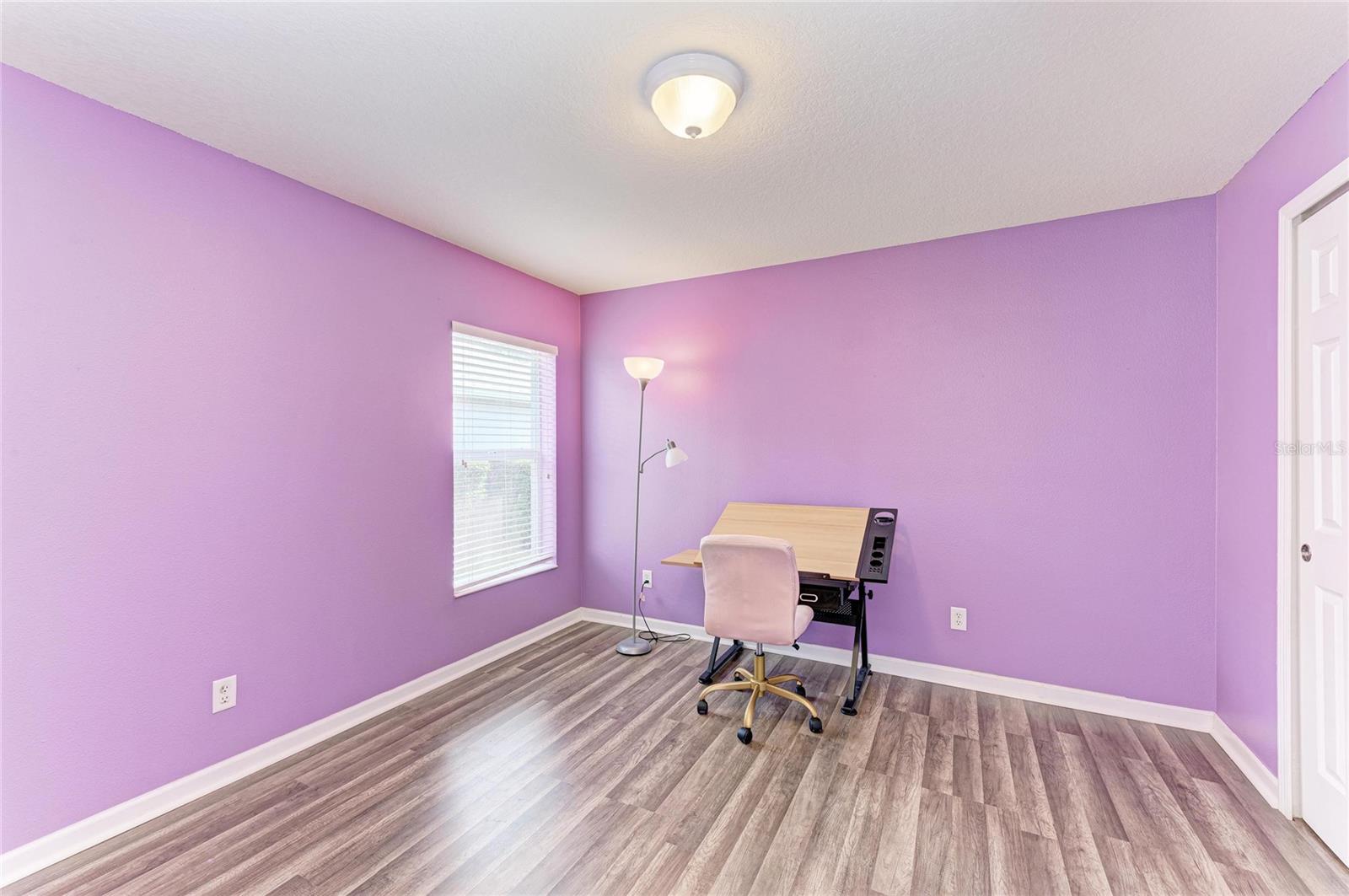 One or more photo(s) has been virtually staged. Beautiful and affordable 4 bedroom home in the gorgeous community of Harrison Ranch. Don't miss out on this 4 bed /2 bath home on a premium lot with pond views. This home is perfect to entertain in, with a dining area that leads into the great room. Enjoy the beautiful Florida weather and wildlife as you take in the water views from your screened lanai. The master bedroom also has pond views and a huge walk-in closet along with a nice master bathroom complete with dual sinks, garden tub and walk-in shower. On the other end of the house are the two bedrooms as well as the 2nd bathroom. At the front of the house is the 4th bedroom and is perfect for a den or home office. The roof was recently replaced in 2022 as well as the water heater in 2021. The home also comes with hurricane shutters and the yard is plumbed for irrigation. Recent school rezoning has Harrison Ranch going to a new High School, which opened in 2019. Harrison Ranch offers a 24 hour gym, heated junior Olympic pool, tennis/pickleball/basketball courts, playgrounds, ball fields, and 5.5 miles of beautiful hiking trails. An activity director is also on-site, putting on fun events for families as well as active adults. Tampa, St. Pete, Sarasota and beautiful beaches are all within 45 minutes, making this a perfect central location. Harrison Ranch offers you a beautiful community and a lifestyle you can truly enjoy.