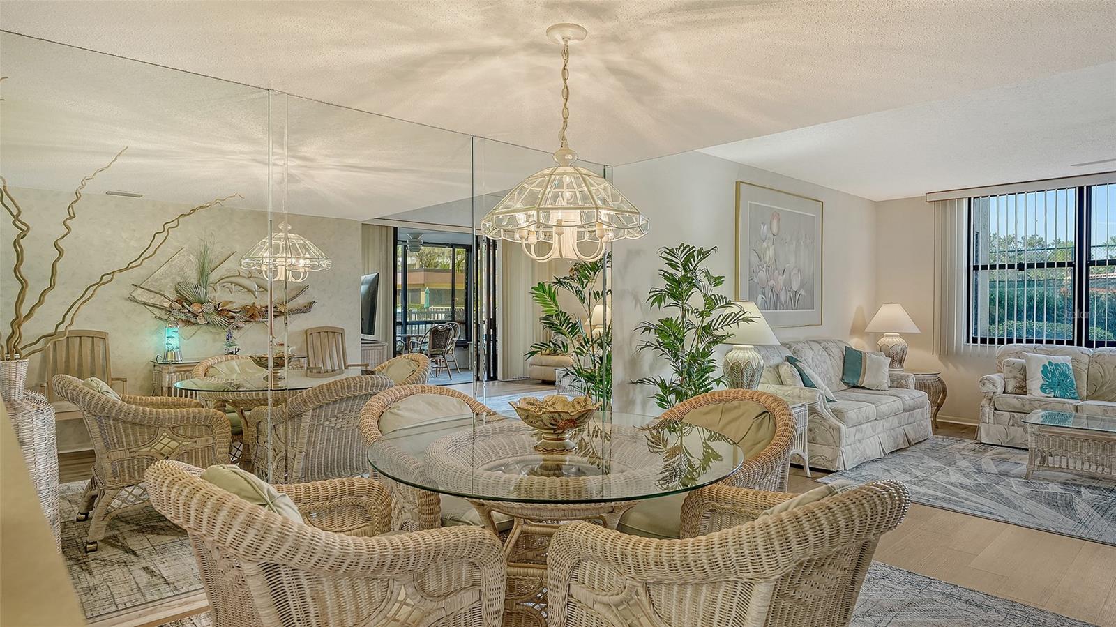 Welcome to Island Reef,a fantastic Beach to Bay Luxury Resort-Style Complex on South Siesta Key. This rarely available first floor condo offers it's owners the ultimate in convenience with easy parking at the front door. Step out your back glassed lanai to the pool and tennis /pickleball courts, and beautiful courtyard. This 2 bedroom/2 bathroom condo is fully furnished and has been used as a vacation home and part-time rental. There is an open floor plan with split bedrooms, a glassed lanai, kitchen dinette, inside laundry, and a pass-through kitchen to the Living and Dining area. Recent updates include luxury vinyl plank through-out, and tile floors in the lanai. New area rugs and coastal furnishings create a comfortable, easy-care setting. There is ample storage with full-wall closets in the guest bedroom, a walk-in closet in the Master Bedroom, and a linen and entry closet and large storage room off the foyer. Amenities at Island Reef are second to none. Enjoy a swim or aerobics class in a choice of 2 heated pools. The updated clubhouse can be reserved for personal use and is the site of the many social events. Other amenities include; a game room, library, fitness room, dock, beach frontage, pickleball and tennis courts, shuffleboard, kayak and bike storage and an active social program. There is an inhouse rental program and on-site manager. If you want to head to the Siesta Key Beach, the SK Village, and beyond, you can pick up the free Trolley from the Island Reef Entrance. Walk to Turtles Restaurant or Turtle Beach Park or rent a boat from the nearby Marina. If you have always wanted to live in Paradise, here is your opportunity at a great price! This unit is SOLD AS-IS. An assessment related to final repairs from the 2024 storms is expected to be $4000.00 in 2026.