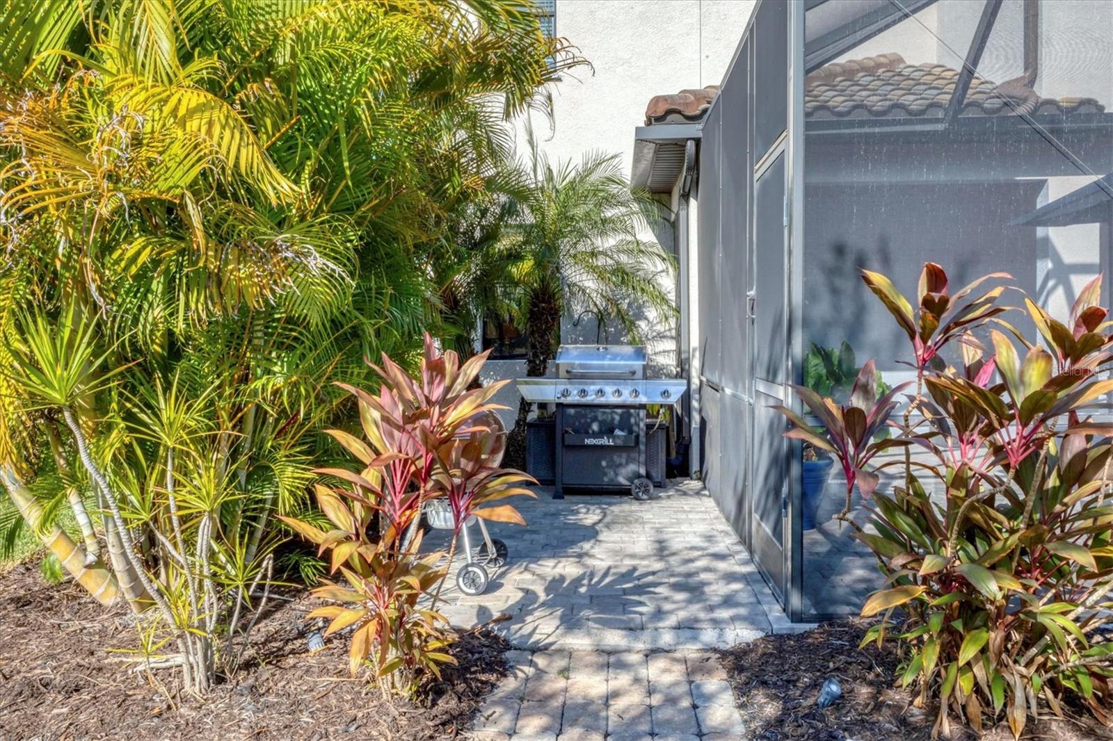 Exterior: Hurricane Shutters, Rain Gutters, Sidewalk, Sliding Doors