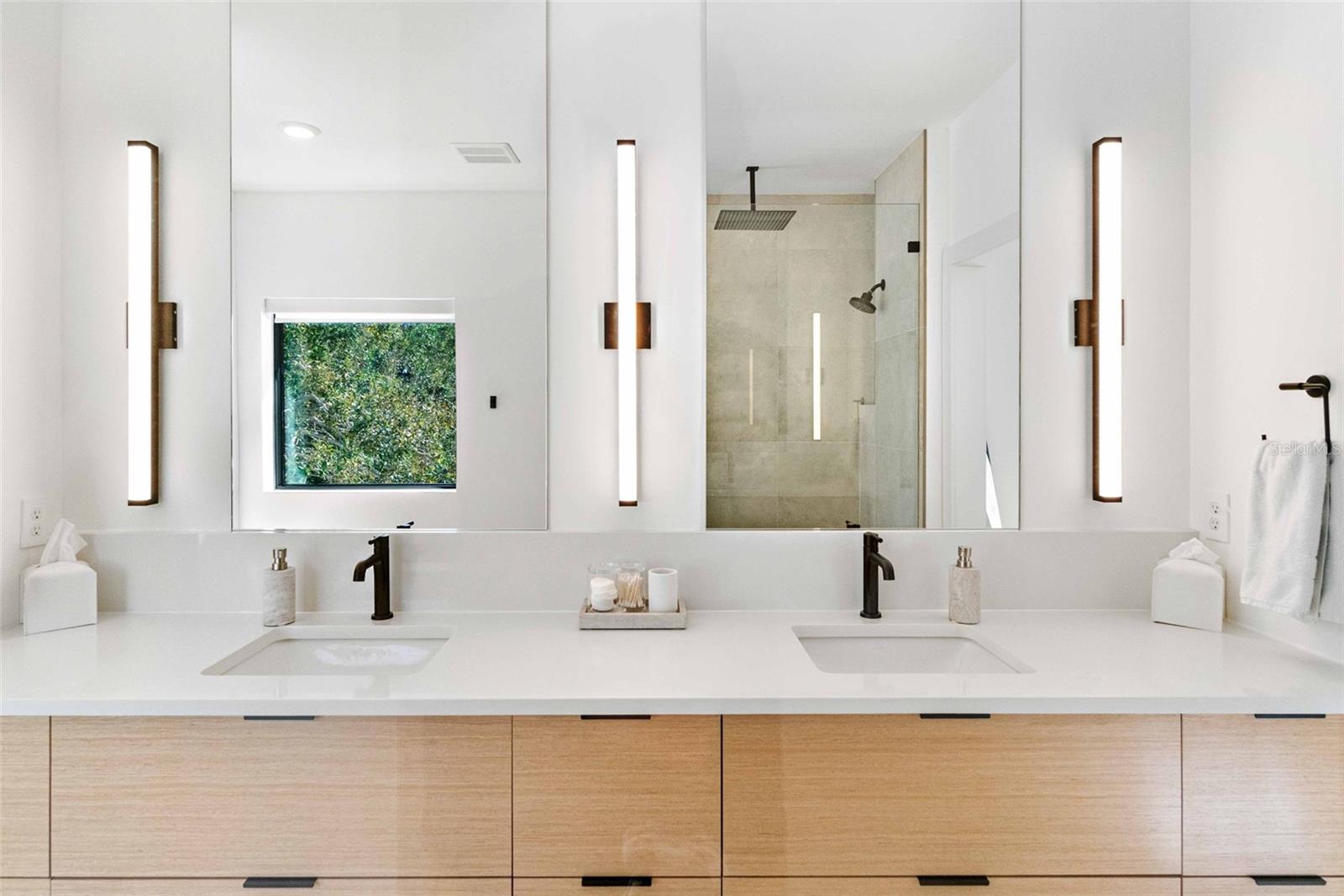 Everything you thought you needed and knew you wanted ~ elevated beyond your wildest expectations. Level up your lifestyle and longevity with these new upgrades: a custom-built professional grade ProTee golf simulator, two person Equinox infrared sauna, and a Renu Therapy outdoor cold plunge tank. This newer construction luxury home in Sarasota is nestled perfectly between Southgate, Arlington Park and Cherokee Park and is walking distance to Southside Elementary school. The entirety of the 5,461 square feet of total living area is a contemporary masterpiece offering expansive and seamless indoor/outdoor living spaces flooded with natural light and subtle sophistication. The exterior boasts a sleek, minimalist design, featuring a blend of clean lines, large glass windows and natural stone. An attractive, welcoming front door opens to a breathtaking, soaring entryway where the striking natural wood floors draw the eye further toward the dramatic, floating staircase flanked by modern metal railings. The state-of-the-art kitchen is equipped with top-tier finishes, including Thermador appliances, a climate controlled 300-bottle wine cellar, custom cabinetry and a massive island draped in quartz countertops. Staying organized and tidy while cooking for you or a crew is simple in the oversized pantry with appliance storage and prep countertops. Entertaining is a breeze with conversation flowing throughout the spacious yet cozy living area. Gaze through the oversized glass windows with views of the tropical courtyard, the invitation to step through the glass sliders to the expansive outdoor patio and backyard oasis. Serve your coastal cuisine indoors or outdoors as the patio offers an additional al fresco cooking space overlooking the spa and pool boasting crystal blue water sprawling between the dual covered patios. Refresh from your dip in the pool in the outdoor shower and cabana bath. After a day of outdoor adventure and relaxation, the nightly feature can take place in the dedicated home theater with a 4k projector and 10 surround sound speakers. This home offers first and second floor primary suites and two additional, generously sized bedrooms. The primary suites offer luxurious, spa-inspired baths while the additional bedrooms each access a full bath. The two-car side load garage is convenient, the professional landscaping and accent lighting in and around the home create an opulent ambiance, while the 20-seer, 4-Zone Infinity HVAC system will keep your cool in the Florida summers. Custom comforts and peace of mind are integrated throughout with a 21-foot elevation above sea level, hurricane-rated impact windows and doors, mosquito misting system, luxury fixtures and finishes, smart home technology and level 5 drywall finish. With ideal proximity to shopping, dining, premier beaches and the best of Florida's golf courses and outdoor recreation, this dream home offers the perfect blend of modern amenities, casual comfort and the ultimate coastal lifestyle.