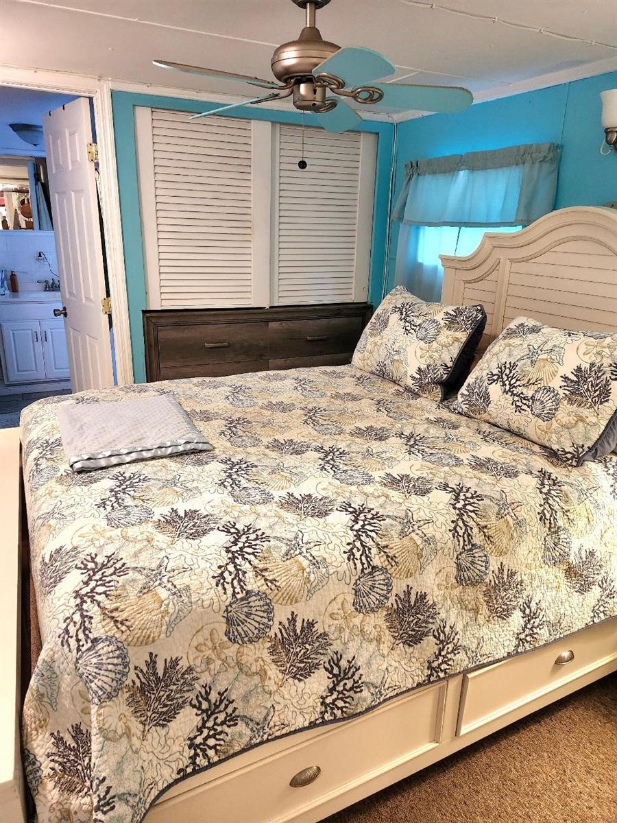 Step inside a world of nostalgic living with the timeless appeal of rustic farmhouse charm. This two Bedroom, two Bath vintage Mobile Home is situated on a pet-friendly street in the highly desired, active 55+ Trailer Estates community. Fresh coastal colors and a distressed wood accent wall add character to cozy living and dining rooms. The kitchen features a vintage-inspired island prep table with hanging pot rack that is practical with a stylish country feel. Motion-detected under cabinet lighting. Both Primary and Guest Bedrooms have ensuite Baths. Inside laundry space. A rear tropical patio deck creates an intimate outdoor oasis. Plenty of shed storage space. You own the land. No lot rent, Park Fees are included into annual real estate taxes. Boaters have direct access to Sarasota Bay from the Marina. Trailer Estates community offers so many options for a great day! Enjoy the large, heated community pool, hot tub, gym and wood shop. The community buzzes with pickleball, shuffleboard, kayaking, horseshoes, bocce, dancing and more. A US Post Office on site. 10 minutes to the SRQ Airport. Convenient to shopping, restaurants, the Arts and everything in Bradenton/Sarasota. Bring offers!