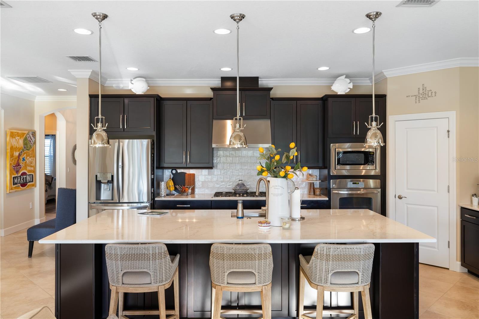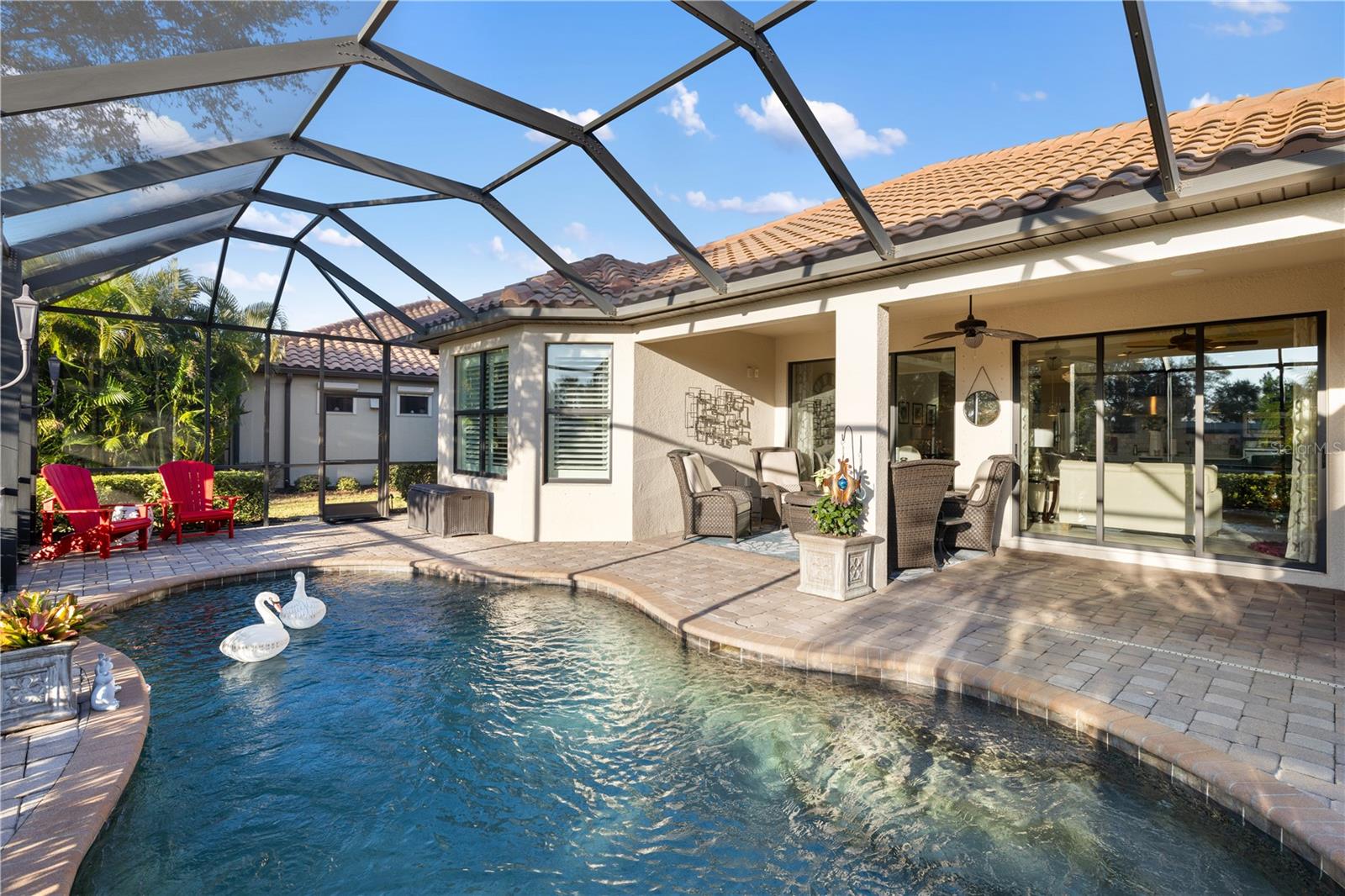 Enjoy Resort-Style Living with this beautifully upgraded Piceno model, nestled within the highly sought-after, community of ESPLANADE GOLF and COUNTRY CLUB at LAKEWOOD RANCH--the nation's #1 best-selling multi-generational master-planned community for six consecutive years. This premier 2-bedroom, 2-bath residence includes a versatile den with pocket doors, perfect as a third bedroom, home office, or flex space and that essential 2-car garage.Step inside this beautiful pool-home to discover uniquely refined living featuring a spacious Open Great Room layout, highlighted by custom lighting and ceiling fans throughout, tray ceilings with crown molding, a stacked stone accent wall, and elegant plantation shutters. The gourmet kitchen boasts solid wood cabinetry, an oversized quartz island with abundant storage, stainless steel appliances, a walk-in pantry, and many designer upgrades throughout.The primary suite serves as a private retreat, featuring a bay window sitting area, dual walk-in closets, and a spa-inspired bathroom with split vanities, a walk-in shower, and a private water closet. Additional convenience comes from a well-appointed laundry room with extra storage and counter space.Enjoy Florida's outdoor lifestyle on the extended screened lanai complete with a heated private saltwater pool, a premium lot, and a fully equipped outdoor kitchen--perfect for entertaining, evening sunsets and simply relaxing in your privacy. Residents enjoy a lock-and-leave lifestyle with full lawn maintenance included, along with a wealth of world-class amenities: two clubhouses, three pools throughout (including a heated lagoon and resistance pool - with private cabanas), two state-of-the-art fitness centers, comprehensive classes, walking trails, two dog parks, bocce ball, tennis and pickleball courts, and a vibrant social calendar. Relax and unwind at the Koquina Salon or enjoy on-site dining in the Barrel House Bistro or the poolside Bahama Bar. Conveniently located near Lakewood Ranch Main Street, University Town Center - UTC, and Waterside Place, you'll have easy access to boutique shops, esteemed restaurants, farmers markets, nature trails, and the pristine beaches of Sarasota, Siesta Key and Anna Maria Island. Major routes such as I-75 and Sarasota-Bradenton International Airport are just minutes away, ensuring effortless travel.Experience the ultimate blend of luxury, security, and vibrant community living. Schedule your private showing today and discover why every day feels like a vacation in this exceptional residence at The ESPLANADE