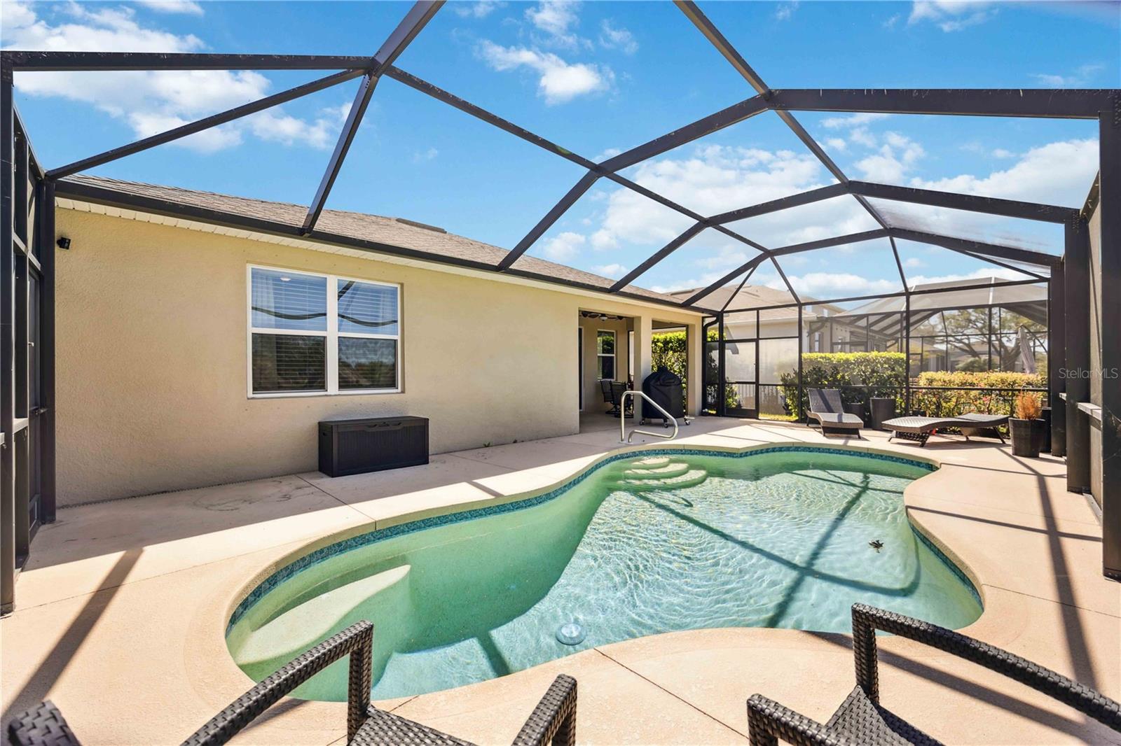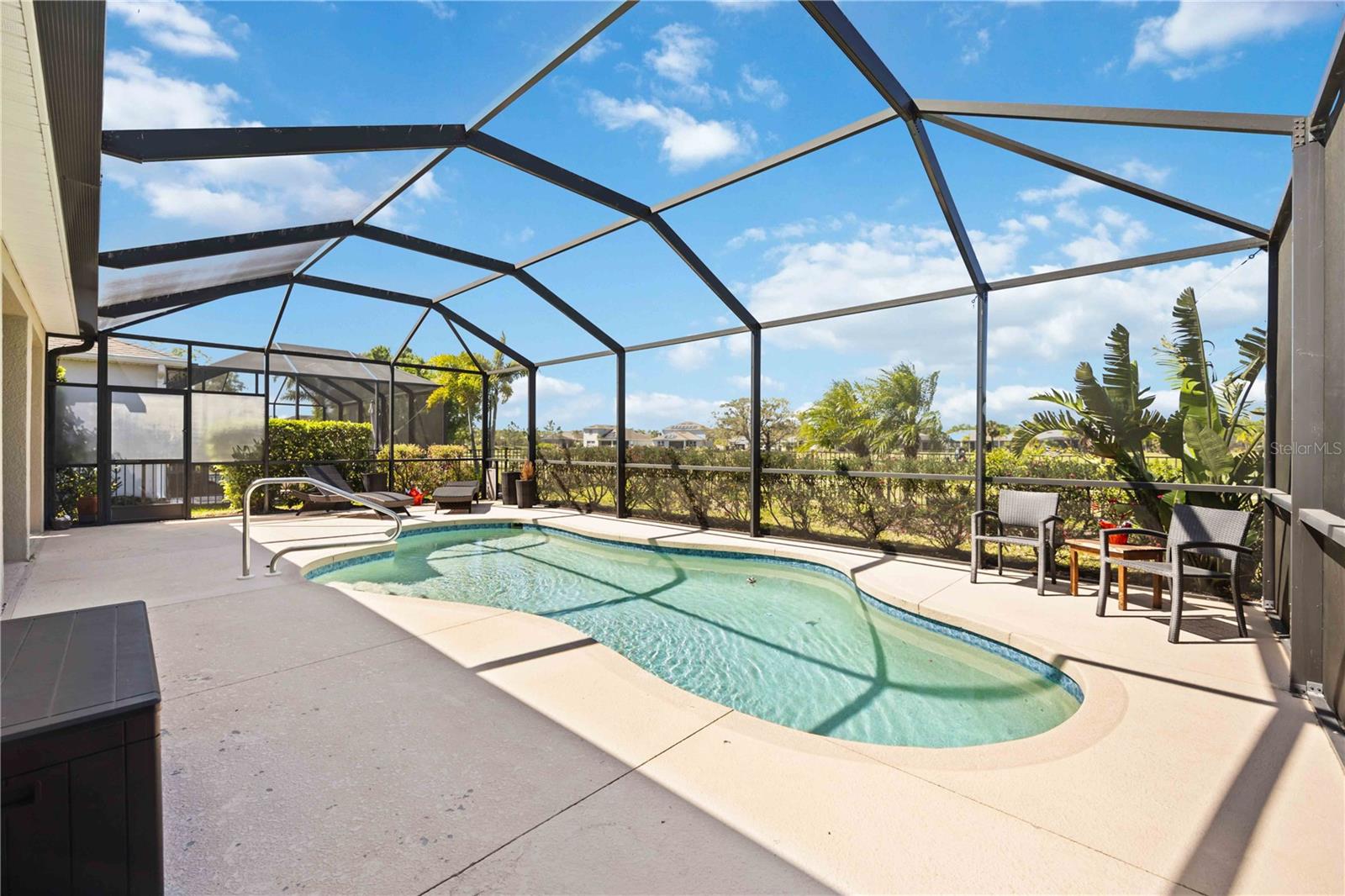 Freshly updated and move-in ready! This immaculate three-bedroom, two-bath pool home in the desirable Bent Tree Fairways community offers comfortable living and modern updates. The interior has just been repainted throughout, and brand-new carpet has been installed in the bedrooms, giving the home a bright, clean feel. The spacious split floor plan features a tiled great room with an electric fireplace and an open kitchen with granite countertops, stainless steel appliances, a convection oven, and rich espresso cabinetry. Step outside to the screened lanai and sparkling saltwater pool overlooking the 18th hole of Bent Tree Golf Club -- perfect for entertaining or relaxing at sunset. The fenced yard offers privacy, landscaping, and a pull-down sunshade for added comfort. Additional highlights include an indoor laundry room, generous storage, and a two-car garage. Ideally located near I-75, top-rated schools, and Sarasota's best shopping, dining, and beaches, this home is ready for immediate occupancy!