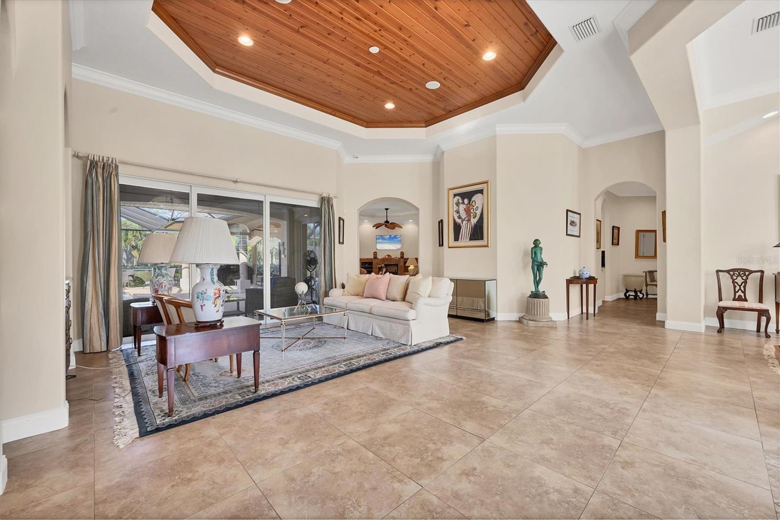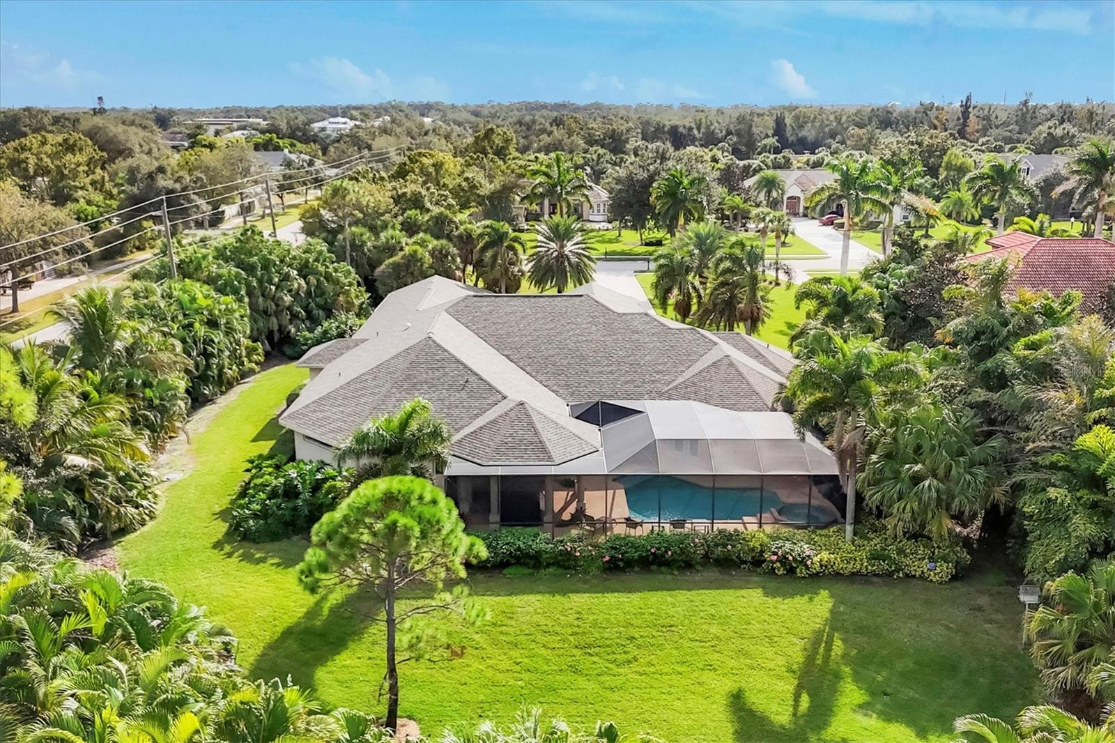 Set within the quiet, enclave of the Preserve at Mission Valley, 793 Vanderbilt Drive offers a rare blend of privacy, scale, and resilience in one of Nokomis' most desirable residential pockets. One of just 17 homes in the community on a quiet cul de sac, the five-bedroom residence, the 5th bedroom is presently being used as a movie room, sits elevated approximately 13 feet above sea level on a one-acre parcel. Spanning 3,954 square feet under air, the home is defined by its generous proportions and soaring 12-foot ceilings, which create an immediate sense of openness and light. Further enhancing its appeal, the property is offered at a compelling value, priced below a recent appraisal. The foyer opens to the living and dining room, which set a sophisticated tone with tray ceilings, crown molding, arched architectural details, and large-format tile flooring, while expansive sliders establish a seamless connection to the covered lanai and tropical backyard beyond. At the center of the home, a well-appointed kitchen anchors everyday living and entertaining, featuring granite countertops, abundant wood cabinetry, a large prep island with bar seating, a walk-in pantry, and a full suite of stainless Whirlpool appliances. The primary suite occupies its own private wing, offering a quiet retreat with Hickory hardwood floors, tray ceiling with wood-plank inlay, and a spacious bath complete with dual vanities, soaking tub, and walk-in shower. Designed with flexibility in mind, the residence also includes a dedicated mother-in-law suite with its own living or bonus room, fireplace, and en-suite bath, ideal for multi-generational living, extended guests, or private quarters. Two additional guest bedrooms share a Jack-and-Jill bath, maintaining both comfort and functionality. A private heated pool and spa are complemented by a covered lanai, protected by a hurricane-rated screen enclosure, direct-access pool bath and outdoor shower. The professionally landscaped grounds feature specimen plantings and individualized irrigation for each tree, while the expansive lot allows room for a tennis or pickleball court. Beyond its aesthetics, the home is distinguished by its infrastructure. A four-car, side-facing garage includes large workshop space and room for storage shelving, climate-controlled storage rooms, and areas easily convertible to additional living or fitness space. Hurricane-impact windows and doors rated to 140 mph winds, a 24kW Generac whole-house generator, industrial central vac system, new roof (2024), new water heater (2025), three new A/C units, solar air purification, advanced security, and dedicated irrigation well underscore a commitment to long-term durability and peace of mind. Located just a few miles from Nokomis Beach and minutes from top-rated schools, Mission Valley Country Club, the new Sarasota Memorial Hospital campus, the Legacy Trail, and everyday conveniences, 793 Vanderbilt Drive offers a refined yet practical expression of Florida living, one that balances privacy, preparedness, and proximity to the Gulf Coast lifestyle.