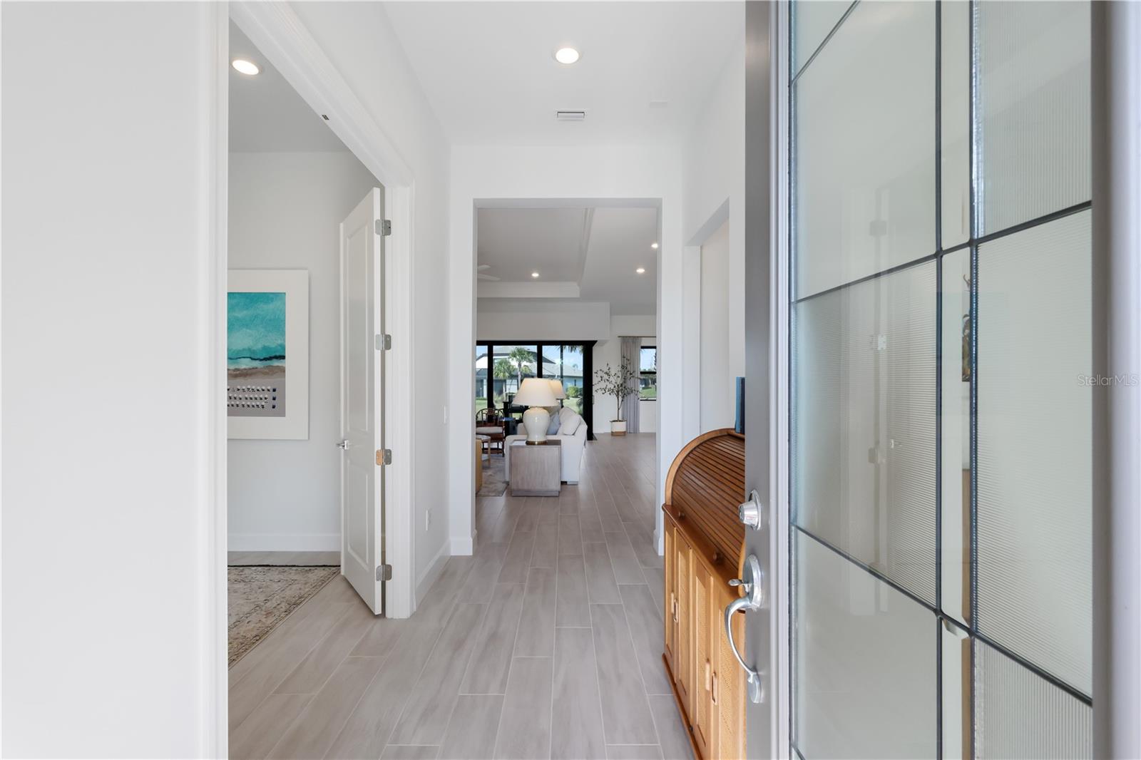 Triple Win Opportunity--Location, View, Floorplan! Welcome to your slice of paradise in the highly sought-after Stellar Model, where exceptionaldesign meets an unbeatable setting in Del Webb Lakewood Ranch, the premier 55+ communitywithin the nation's #1 multi-generational master-planned development. Designed for an active,resort-style lifestyle, this impressive residence delivers the perfect blend of elegance, comfort,and peace of mind. Built in 2022 and meticulously maintained, this Smart Home offers worry-free living for its next owner. Ideally positioned at the end of a quiet cul-de-sac with tranquilwater views, the thoughtfully designed 2,518 sq. ft. floorplan features 3 bedrooms and 3bathrooms plus a den, enhanced by a wealth of premium upgrades. Highlights include lightwood-like ceramic tile in the main living areas, plush carpet in the bedrooms, tray ceilings in thegathering room and owner's retreat, stylish pendant lighting and chandelier, ceiling fansthroughout, hurricane-impact windows, whole-home surge protection, a custom built-in dropzone, an upgraded laundry room with cabinetry and utility sink, epoxy-coated garage floors,and a striking decorative glass front door that sets the tone upon arrival. The gourmet kitchen isa true showpiece for culinary enthusiasts, featuring a five-burner gas cooktop with a sleekstainless-steel hood, quartz countertops, and premium KitchenAid appliances. A spaciouscenter island provides additional cabinetry and serves as the perfect gathering space forentertaining or casual dining. A standout feature is the walk-in Butler's pantry, offeringexceptional storage and functionality. The owner's retreat is a private sanctuary, highlighted bya tray ceiling and a spa-inspired ensuite with dual sinks, a luxurious walk-in shower with benchseating, and a generous custom walk-in closet. Two additional bedrooms and baths providecomfortable, private accommodations for guests. Zero-corner sliding pocket doors open to anoversized lanai with breathtaking views, seamlessly blending indoor and outdoor living. Thehurricane-rated cage with unobstructed full-view screening allows you to fully enjoy the serenesurroundings. Whether relaxing at sunset, entertaining friends, or unwinding in the Hot Spring7-person saltwater hot tub, this outdoor retreat is nothing short of spectacular. With its rarecombination of premium location, stunning views, and a highly desirable floor plan, thisexceptional home is sure to be in high demand. Schedule your private showing today andexperience luxury living at its finest in Del Webb Lakewood Ranch.