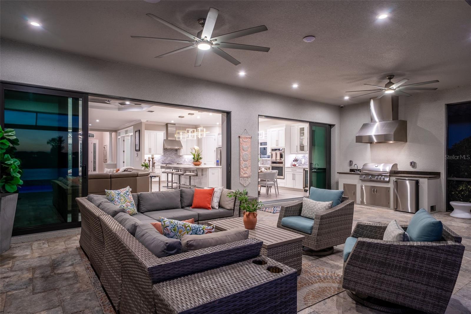 Exterior: Lighting, Other, Outdoor Grill, Outdoor Kitchen, Sidewalk, Sliding Doors