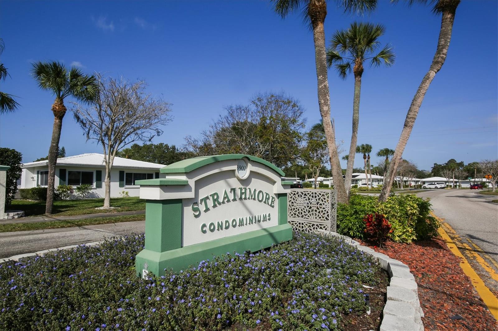 Welcome to a most charming 2 bedroom, 2 bathroom home in Strathmore Villas. This home is located in a 55+ community and has countless beautiful updates making it completely move in ready for you! This cozy community is located close to endless dining options and luxury shopping at University Town Center Mall, endless recreation options at Nathan Benderson Park, golf at the newly reopened and completely refurbished Bobby Jones Golf Course just across the street. Minutes to world-class Gulf of Mexico powder sand beaches and the cultural destination of downtown Sarasota. Community center for parties and meetings, gorgeous heated community pool to meet neighbors and enjoy a happy hour libation in the sun.This villa is free-standing on a private cul-de-sac and has great curb appeal and inviting outdoor gardening and seating areas. Greeted by an oversized carport with a covered outdoor seating area, you enter through a welcoming alcove offering a private entrance. A soothing coastal palate creates a peaceful living space with wood-textured ceramic tile floating throughout for a cohesive foundation. The beautifully renovated kitchen offers white cabinetry, granite counters, and gorgeous sea blue glass subway tile backsplash. Stainless appliances including convection oven and ample counter space to please the home chef. A natural wood ceiling inset detail rounds out the seaside vibe. The kitchen also offers a breakfast bar and an eat-in area for cozy morning coffee or an additional work-from-home office space. The living room is bright and open with loads of natural light. The split bedrooms offer privacy for guests and the primary bedroom has an updated en-suite bathroom with a step-in shower, new vanity with granite top, new lighting and a walk-in closet. The full guest bathroom is also completely updated with new shower/tub combo, vanity, lighting, and fixtures. This home provides peace of mind with new hurricane impact windows throughout. Interior freshly painted, kitchen has new electrical and plumbing to bring it to current code. The full size washer and dryer were replaced in 2022 and are located in the laundry room with storage area across from the front door behind the carport along with the hot water heater. Maintenance-free Florida lifestyle at its best!