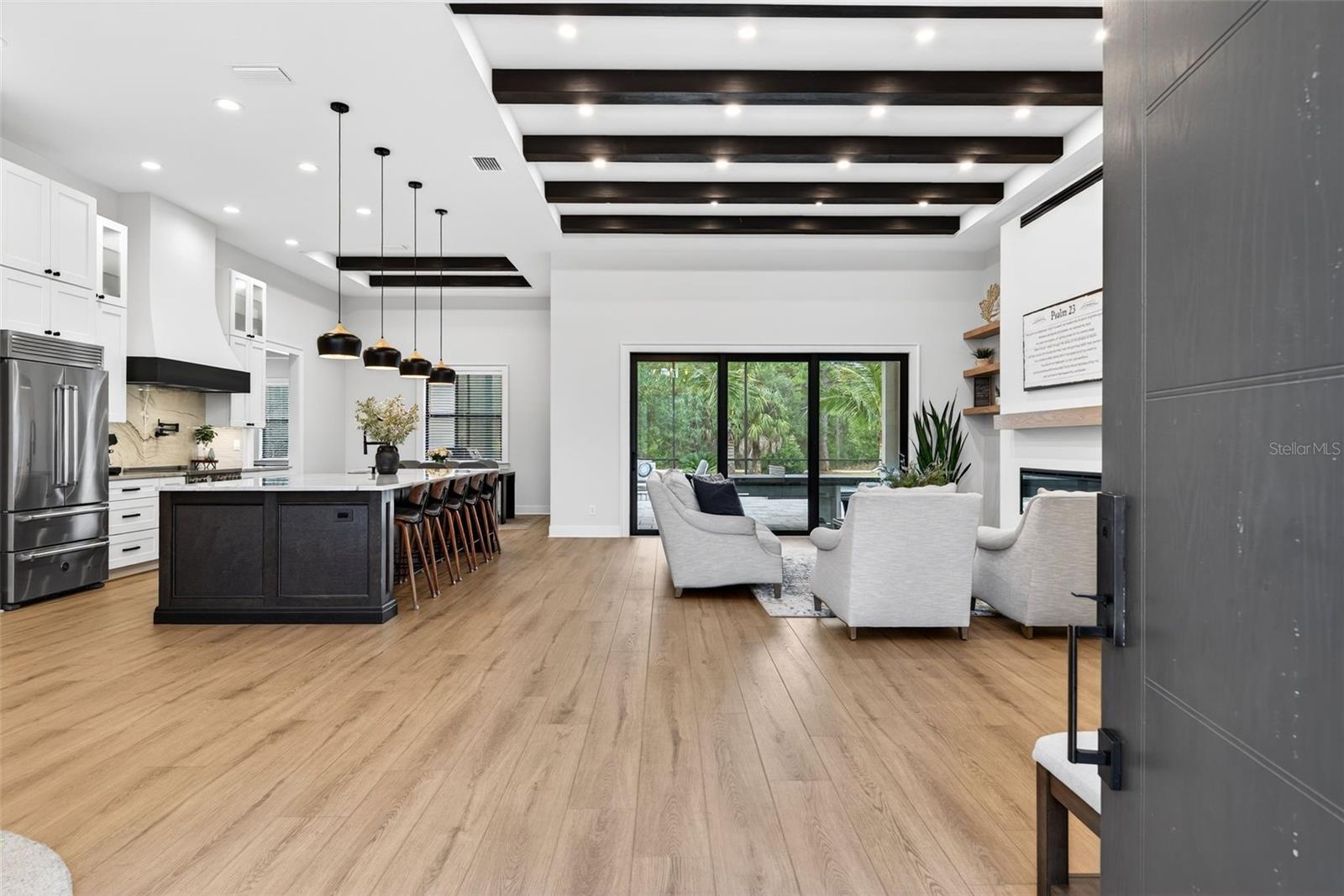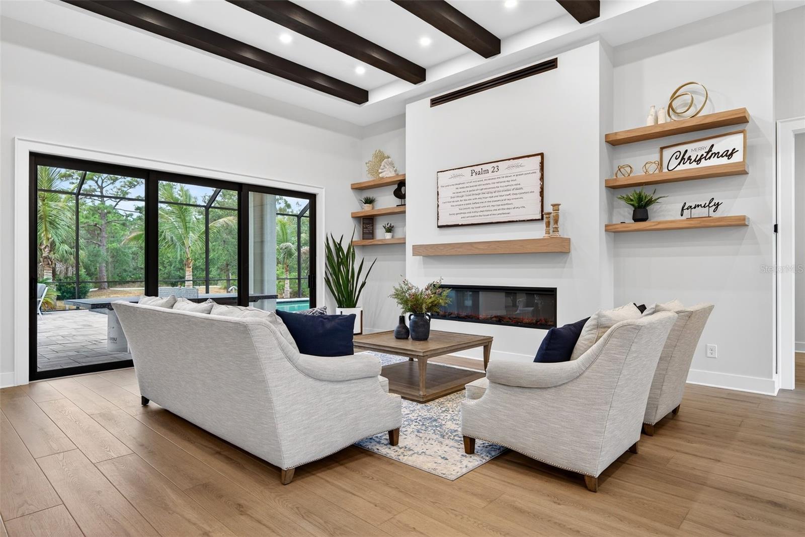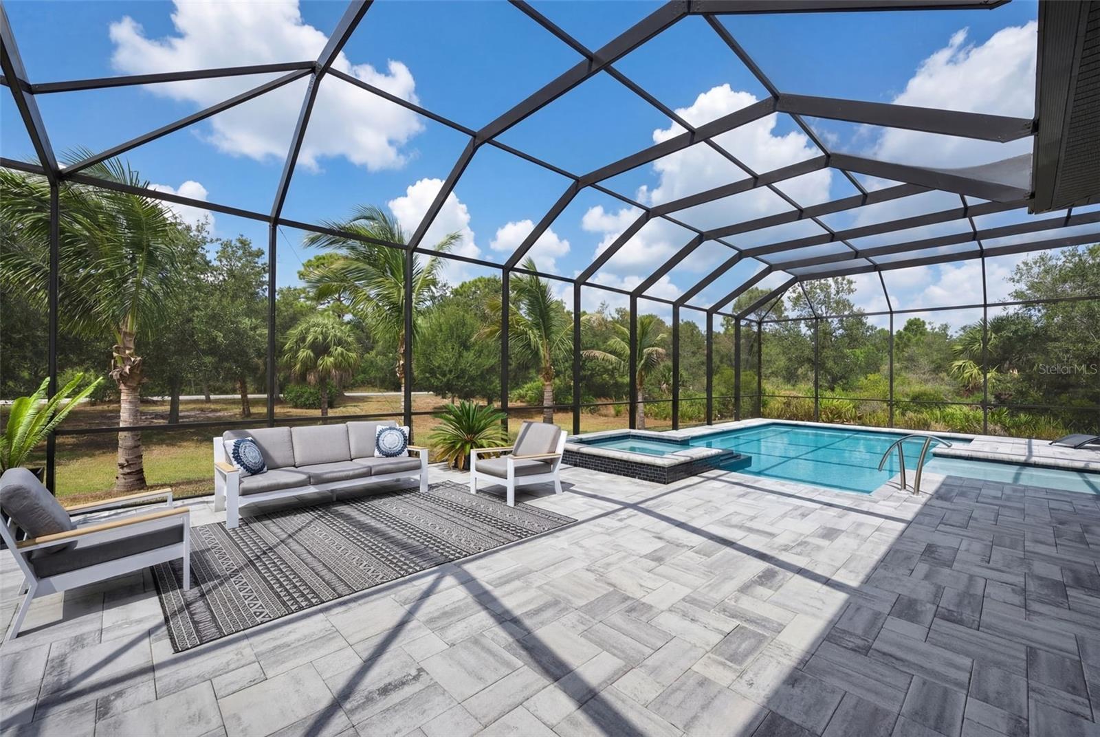 One or more photo(s) has been virtually staged. Tucked away in a quiet Port Charlotte neighborhood, 279 Farber Street is a one-of-a-kind custom home that perfectly blends privacy, space, and upscale living--all just minutes from shopping, dining, and everyday conveniences.Set on approximately one acre of cleared land, this exceptional property features mature fruit trees - banana, coconut, mulberry - and offers room to breathe and room to grow, complete with an oversized barn ideal for storage, hobbies, or toys. A 3-car garage, generator, and a paved sidewalk that wraps around the entire home add both function and peace of mind.Inside, the home showcases impeccable craftsmanship with custom millwork, custom shelving, immaculate finish work, and high-end appliances throughout. The grand, open layout is flooded with natural light from large windows, including a striking wall of 8-foot sliders, creating seamless indoor-outdoor living. An oversized island anchors the living space, making it perfect for entertaining, while a cozy fireplace adds warmth and charm.Step outside to your private oasis featuring a heated saltwater pool and spa, surrounded by an impressive 1,800-square-foot paved and caged lanai--ideal for year-round enjoyment. A fire pit area completes the setting, perfect for relaxing evenings under the stars.Ideally located, this home is close to Gulf beaches, premier shopping, Wellen Park, new North Port hospitals, and the Atlanta Braves Spring Training Stadium, offering the best of Florida lifestyle living without sacrificing tranquility.279 Farber Street is luxury, space, and location--beautifully combined.