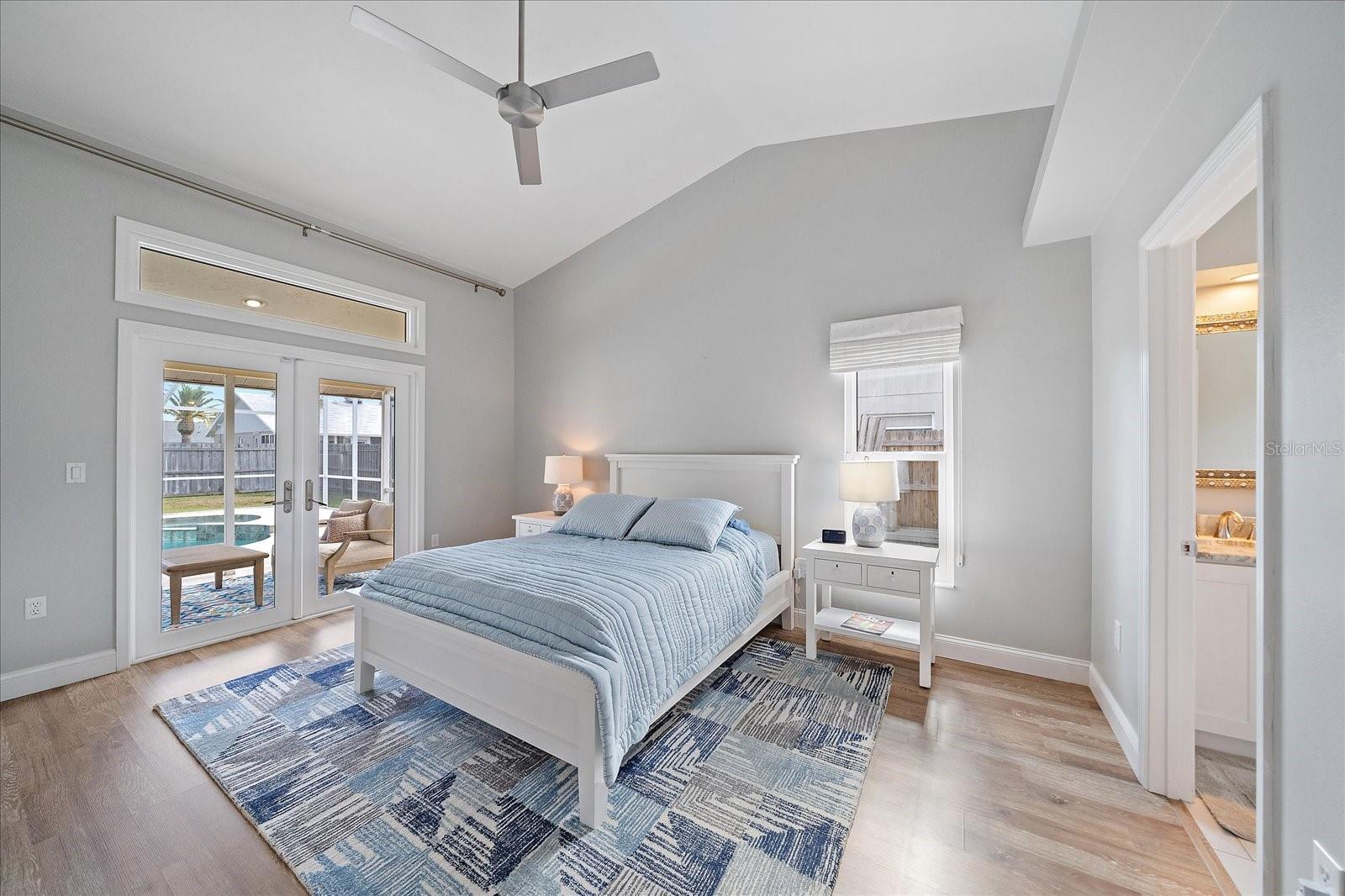 Exterior: French Doors, Hurricane Shutters, Rain Gutters, Sidewalk, Sliding Doors