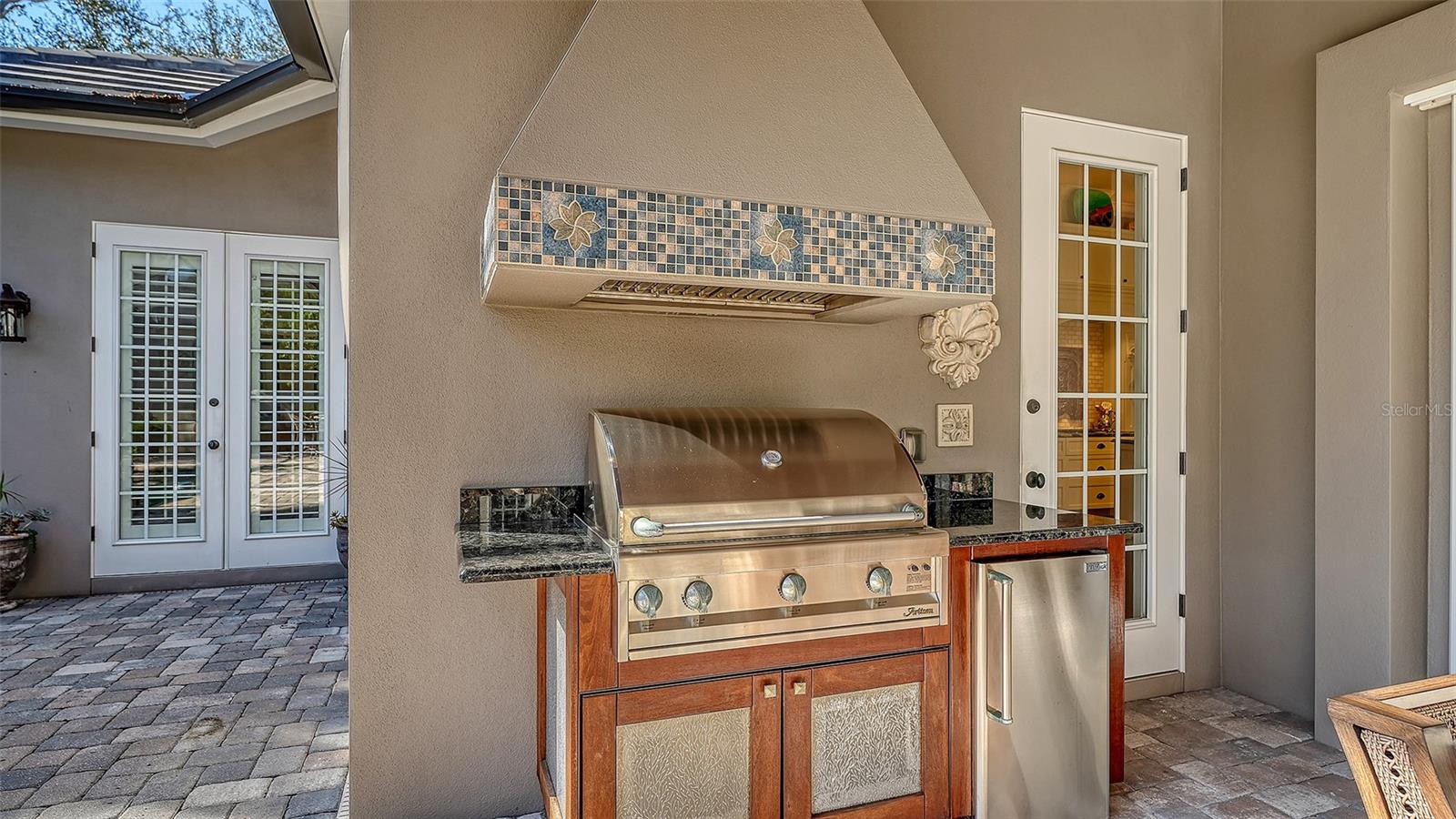 Located West of the Trail and close to downtown, this warm and welcoming home sits on an oversized corner lot along a quiet, tree-lined street just a short walk to Morton's Gourmet Market and the dining and shopping of Southside Village. It's also an easy stroll to Southside Elementary School, making school drop-offs simple and convenient. This custom-built residence showcases exceptional craftsmanship and thoughtful attention to detail throughout, including solid-core doors, soaring 12-foot ceilings, custom closet systems, paneled kitchen appliances, abundant storage, a whole-house water filtration system, and hurricane-impact doors and windows. Designed for effortless single-level living, the home features an open, flowing floor plan with three spacious bedrooms--each with its own en-suite bath--plus a beautifully appointed powder room. A private study just off the living area includes a built-in bar with sink and ice maker, creating the perfect space for work or relaxed entertaining. The gourmet kitchen is a true centerpiece, offering extensive cabinetry, a large center island, gas cooktop, double ovens, a full-size wine refrigerator, and an oversized walk-in pantry. Expansive sliding glass doors open to a screened patio and pool area, seamlessly blending indoor and outdoor living. The outdoor retreat is equally impressive, featuring a built-in gas grill and refrigerator, a cozy gas fireplace, and a heated pool and spa designed for year-round enjoyment. An oversized side-load garage and additional guest parking provide convenience and functionality. With an impressive 26-foot elevation--among the highest in the area--this exceptional property offers both beauty and peace of mind. More than just a house, it is a place to call home and cherish for years to come.