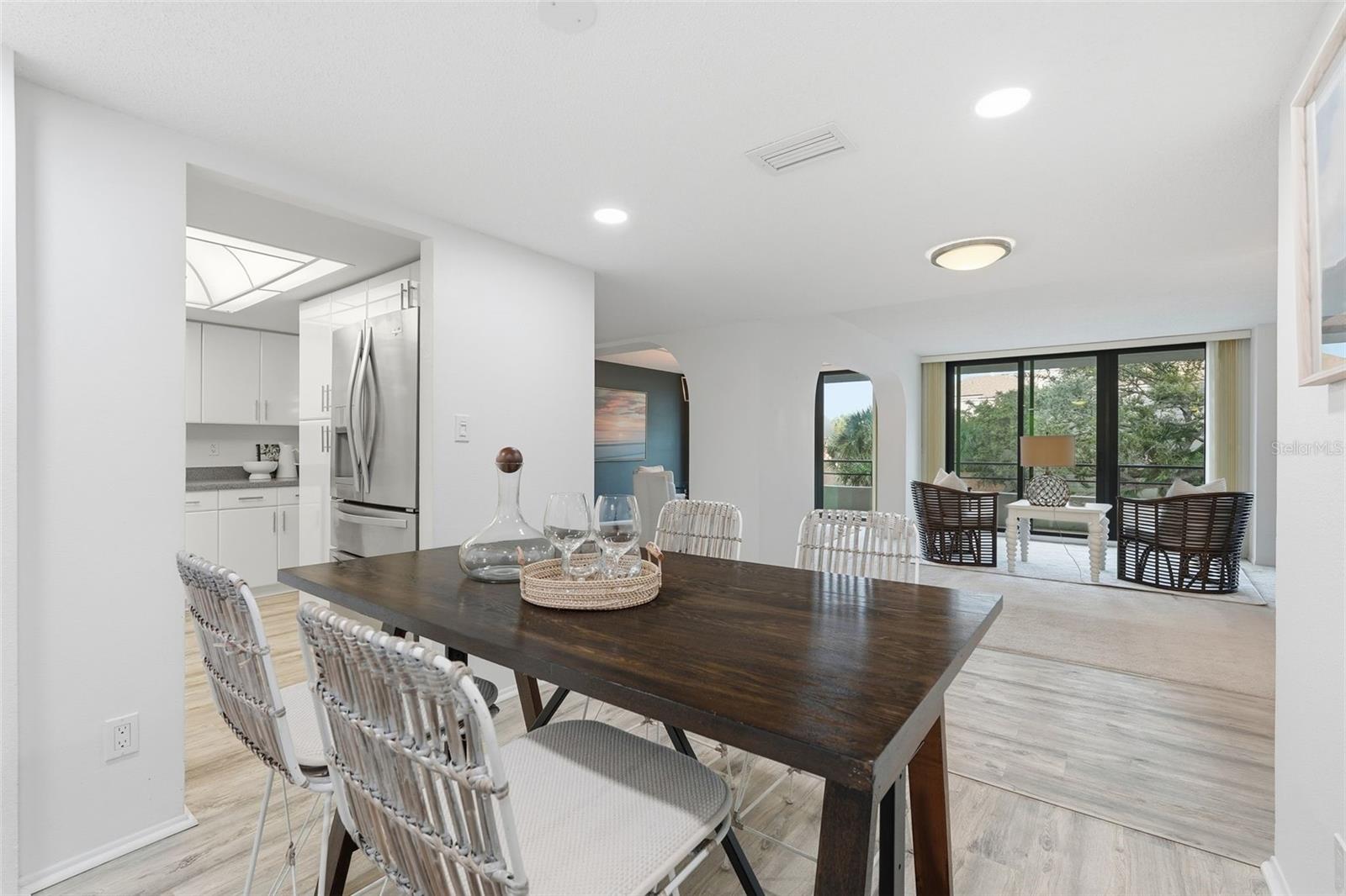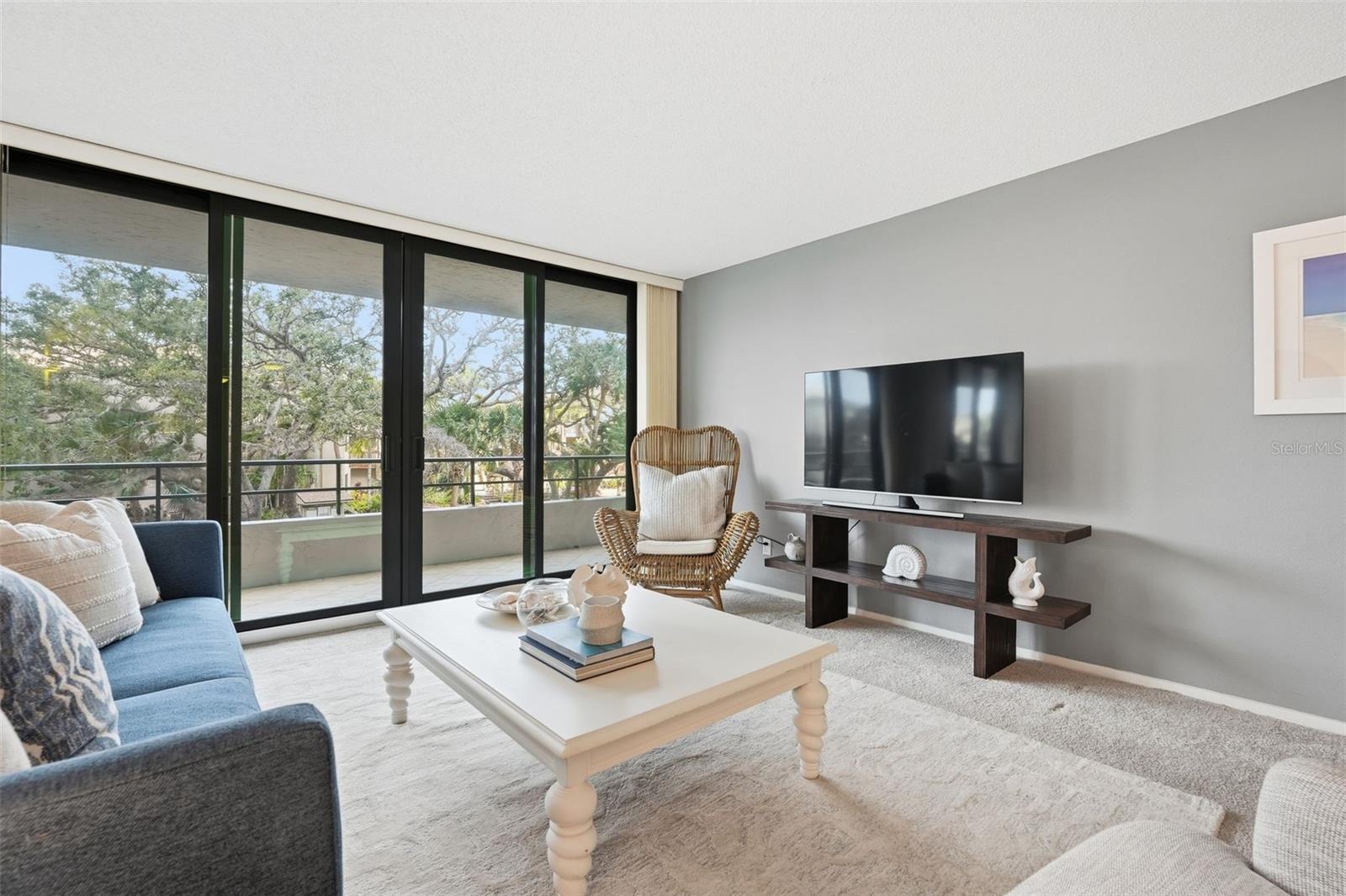 Deeded beach access, Intracoastal waterway frontage with boat dockage AND room for the whole family! Discover the epitome of coastal living in this fabulous three-bedroom, two-and-a-half-bath residence, boasting 2,358 square feet of interior space and an expansive balcony spanning the entire length of the home. Recently upgraded with $80,000 worth of high-impact hurricane sliders, the spacious floor plan offers multiple living and dining areas, with a split layout ensuring privacy. This is a real gem for investors as it is one of only eight 3-bedroom units in the building. At the Anchorage, owners and renters enjoy deeded, gated beach access right across the street, a canal with boat dockage and kayak/paddleboard launch, and beautiful sprawling park-like grounds overlooking the intracoastal waterway. Other amenities include a gated entrance, heated pool, fitness center, clubhouse, tennis and pickleball courts, shuffleboard courts and kayak racks. Onsite rental management and a one-week minimum rental make this community very popular with vacationers and savvy investors alike. Come see why The Anchorage is the place to be year-round on Siesta Key.