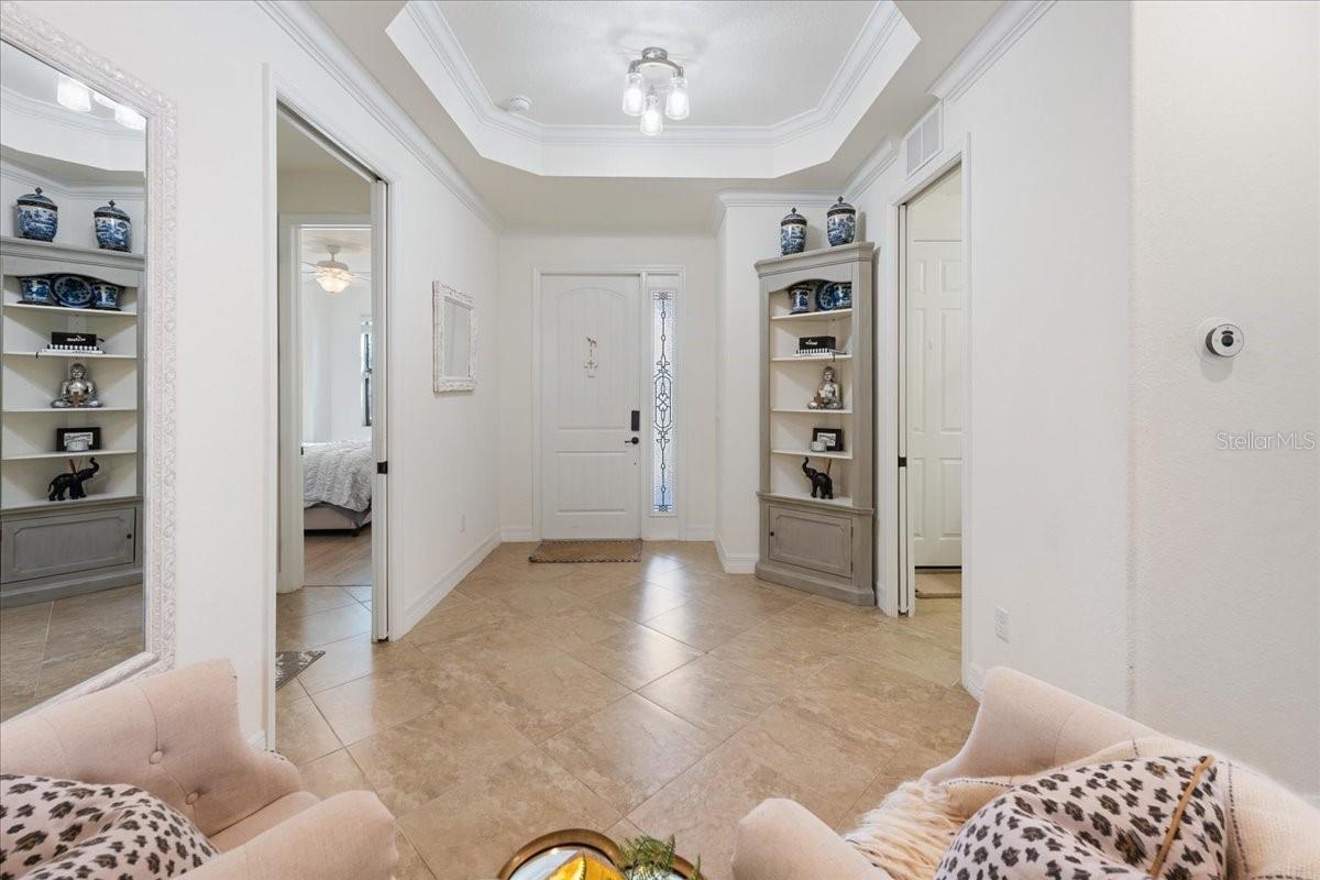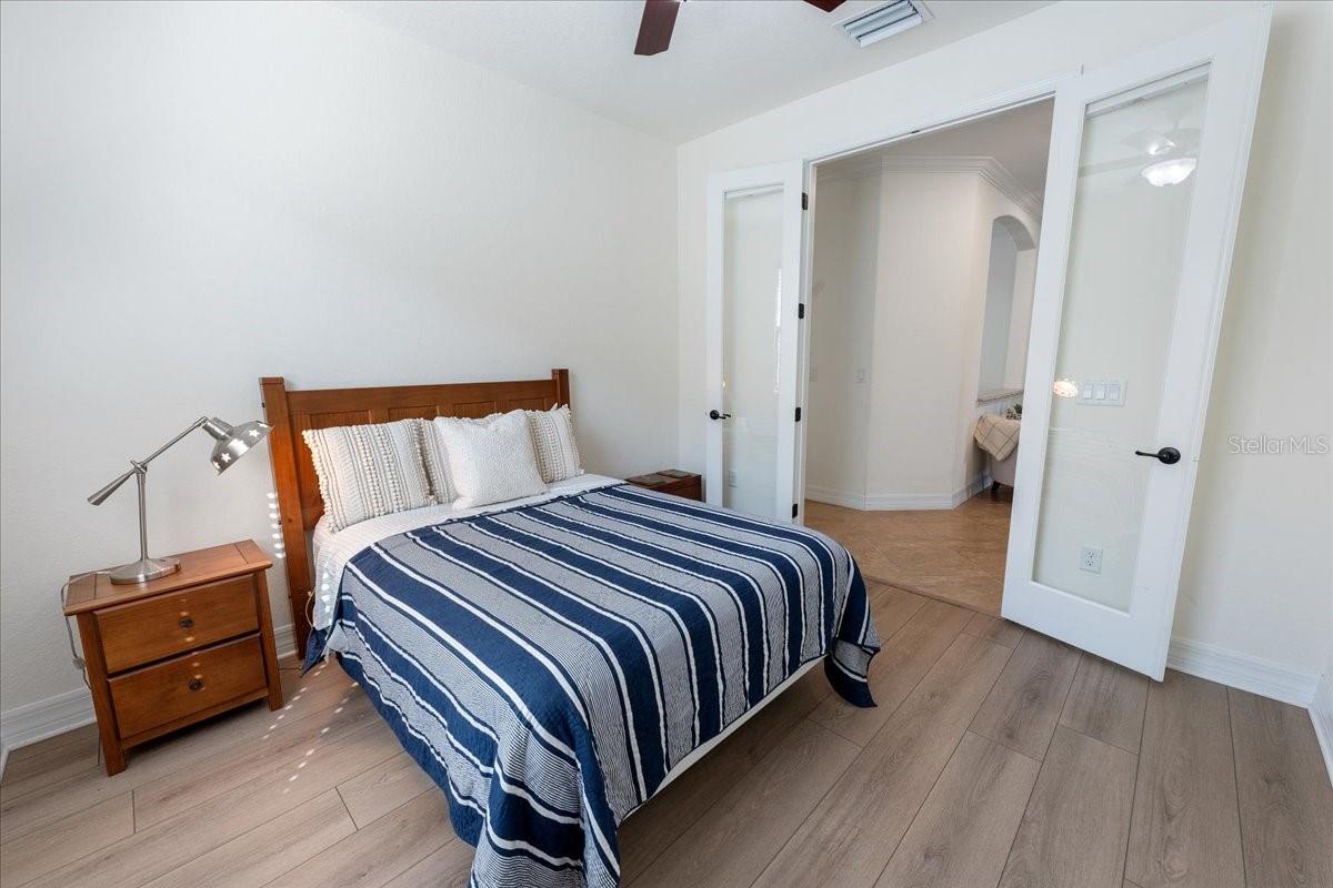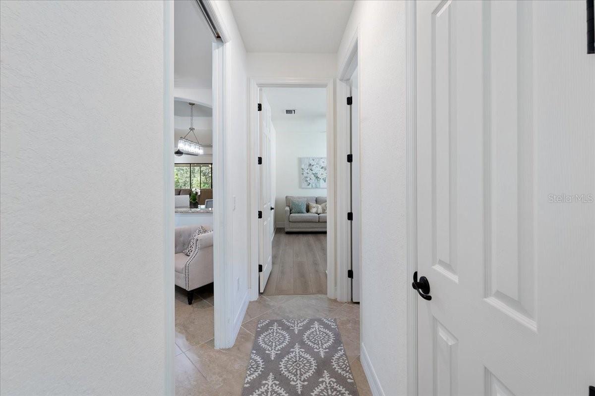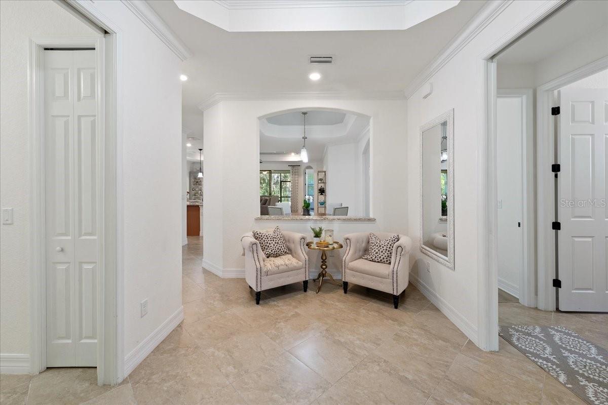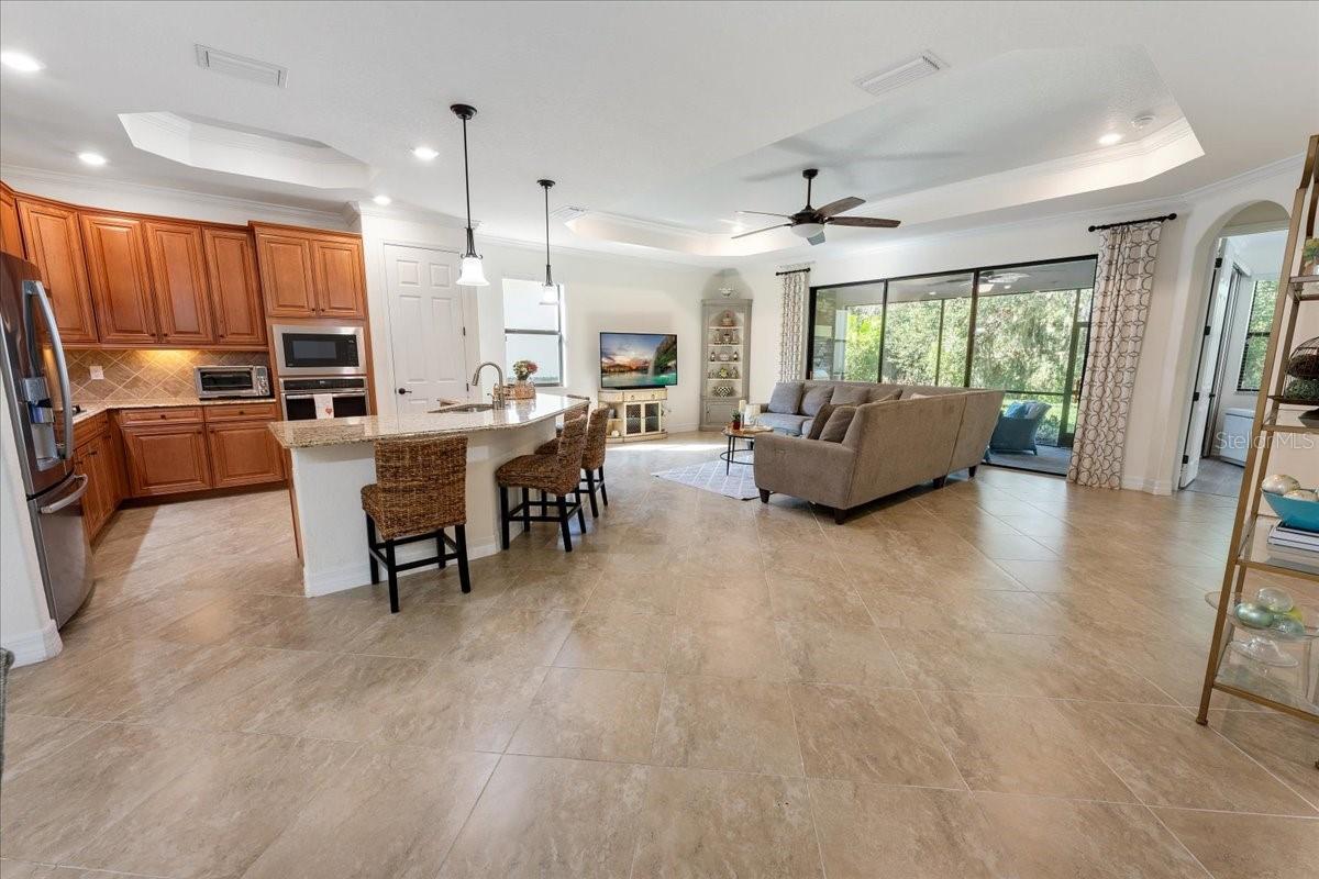 Offered at an exceptional value as the lowest-priced home currently available in Lakewood National Golf Club, this single-family residence is ideally situated on a quiet cul-de-sac and offers a peaceful setting within one of Lakewood Ranch's most sought-after deeded golf communities. This well-appointed 4-bedroom, 2-bath, 2-car garage home welcomes you with a gracious foyer that creates a distinct living space at the front of the home, connecting seamlessly to the guest area and a generously sized laundry room with direct garage access. Two guest bedrooms are well-proportioned to accommodate king, queen, or twin beds and share a full bath with a pocket door that allows the guest wing to be closed off for added privacy. The fourth bedroom, office, or flex room offers versatile use with French doors and a large walk-in closet.The open-concept design then unfolds to the kitchen, dining, and living areas, featuring porcelain tile flooring throughout the main living spaces and highlighted by a large center island with granite countertops, maple cabinetry with under-cabinet lighting, designer backsplash, stainless steel appliances, tray ceilings throughout the primary living spaces, and crown molding.All overlook the lanai with outdoor kitchen, which opens to a wonderful nature preserve setting.The split-bedroom layout places the spacious primary suite at the rear of the home, featuring dual walk-in closets, tray ceiling detail, and a spa-inspired bath with double vanities, soaking tub, separate shower, private water closet, and linen storage. There is no private pool to maintain, with multiple community pools nearby and ample room to add a custom pool if desired. HOA-provided home landscaping includes routine mowing, shrub trimming, mulch, and ongoing maintenance, allowing for low-maintenance living.Impact-rated windows, along with impact-resistant protection for the rear sliding glass doors, provide added peace of mind. Seller upgrades include a Leaf Home Whole House Water Filtration System and the removal of carpet in all bedrooms, replaced with Luxury Vinyl Tile plank flooring by Fairfax Flooring, offering durability, a modern look, and a lifetime warranty. The garage features two ceiling-mounted storage racks for added organization and functionality.Lakewood National Golf Club is the only deeded golf community in Lakewood Ranch, where ownership for all residents includes access to two 18-hole Arnold Palmer-designed championship courses, one of which hosts the annual Korn Ferry Tour event, along with full community amenities. Residents enjoy a beach-entry heated lagoon pool with cascading waterfalls and lap lanes, six satellite pools, tiki bar, pub-style and fine dining in the Grand Clubhouse, a state-of-the-art fitness center with studios and a full-time trainer, spa services, lighted Har-Tru tennis, pickleball, bocce, practice facilities, scenic trails, and a vibrant calendar of community events.Completed in 2022, the community is fully established and professionally managed, offering 24-hour guard-gated and roaming security and a comprehensive, ownership-based lifestyle. A compelling opportunity within Lakewood National Golf Club.