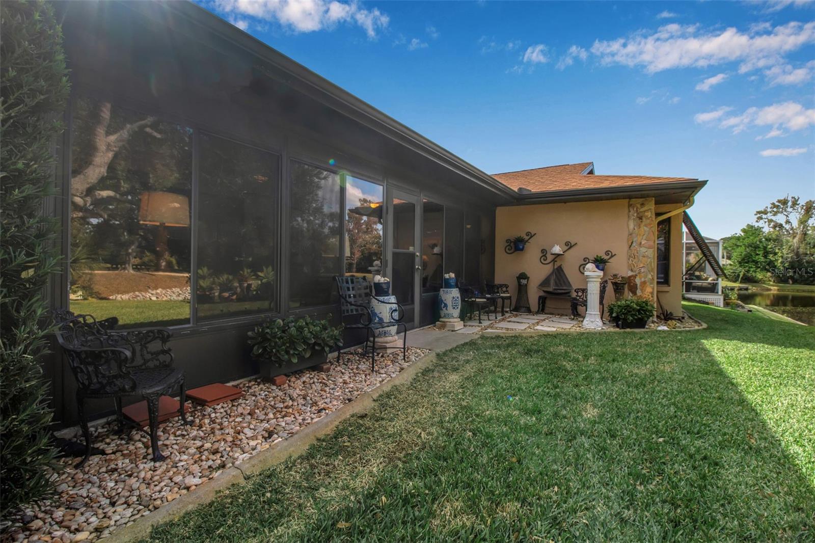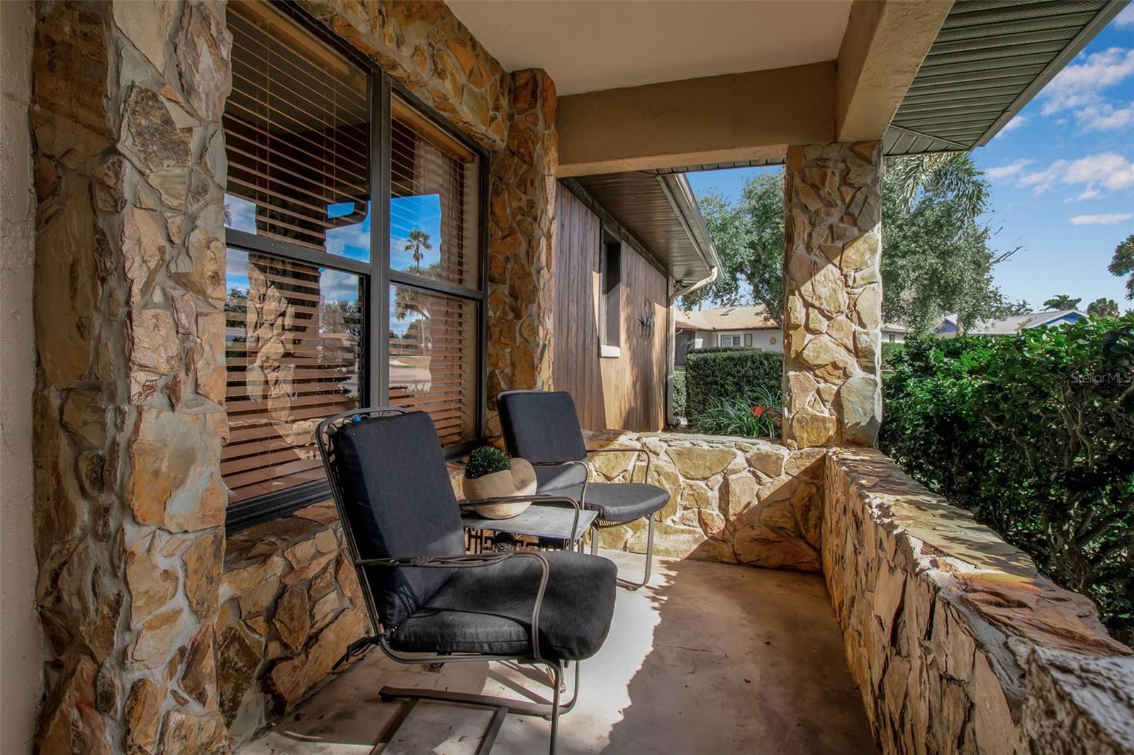 Meticulously maintained 3-bedroom, 2-bath home situated on a pond-front corner lot in the desirable Indian Springs community of NW Bradenton. Originally the model home, this property makes a strong first impression as you enter the neighborhood, featuring a covered front porch and inviting foyer.The split floor plan offers privacy and functionality, with an open-concept living area that includes vaulted ceilings and a fireplace. The kitchen features granite countertops, a serving window to the lanai, and flows seamlessly into the main living space, making it ideal for everyday living and entertaining.The spacious lanai has been enclosed and includes air conditioning, providing additional year-round living space. The primary bedroom offers direct access to the lanai through sliding glass doors, double closets with one walk-in, and an ensuite bath featuring a vanity area and walk-in shower. Secondary bedrooms include built-in storage, and the guest bathroom offers a tub/shower combination with a granite countertop.Additional features include an indoor laundry room with utility sink, Bahama shutters on select windows, and a pond-side retaining wall that was professionally treated with seawall and bulkhead soil stabilization injections in September 2025.Located in NW Bradenton, this home offers convenient access to local beaches, parks, and recreation, including Anna Maria Island, Robinson Preserve, GT Bray Park, and IMG Academy, along with nearby shopping, dining, and everyday conveniences.
