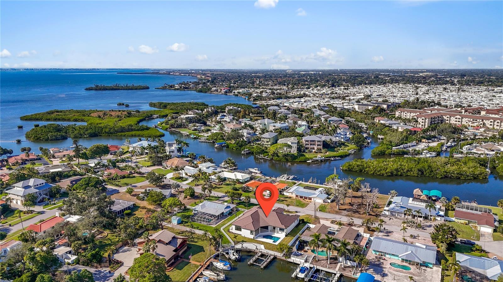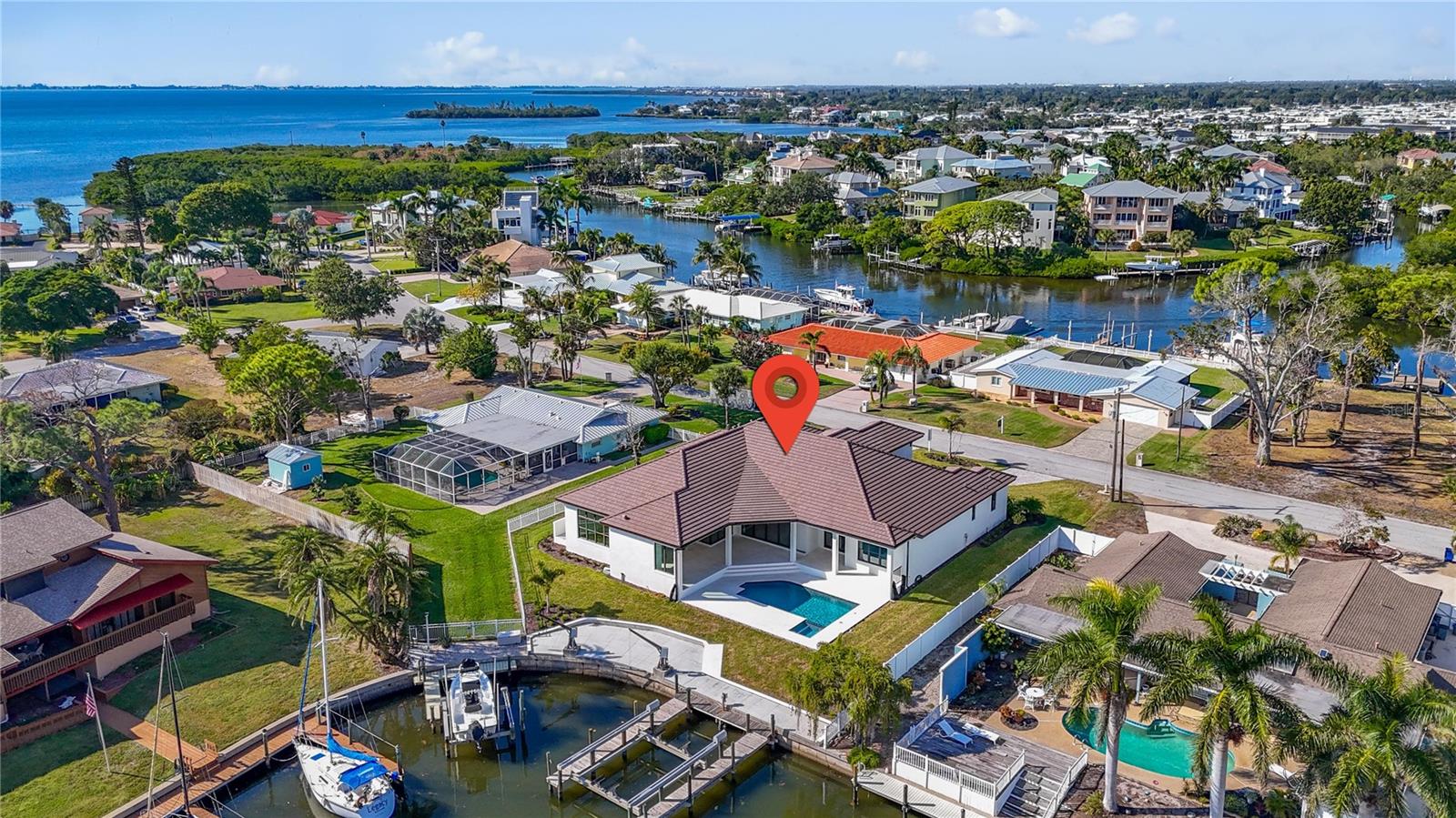 One or more photo(s) has been virtually staged. The Abaco Model is a stunning Sarasota luxury residence offering 4,343 square feet of refined living space and 6,273 square feet under roof, featuring four true bedrooms and six total rooms. This home is Florida Green Home Bronze Certified, reflecting thoughtful construction, energy efficiency, and sustainable building practices. Seller is currently offering a $10,000 credit toward the design and installation of custom closets, allowing the buyer to tailor storage to their personal lifestyle.Upon arrival through dramatic 10-foot iron front doors, the foyer provides a breathtaking sightline through the home to the pool and canal beyond. The oversized great room is ideal for entertaining and showcases stained cypress beams, a gas fireplace with full-height tile surround, and a 16-foot-wide by 10-foot-high pocketing sliding glass door that opens seamlessly to the outdoor living and pool area.The chef's kitchen features an oversized island with gas cooktop, walk-in pantry, and sunlit windows above the sink for abundant natural light. The private owner's wing includes a refined library or office adjacent to the owner's suite, both enjoying water views. Dual oversized walk-in closets and a spa-inspired owner's bath complete the retreat with a freestanding soaking tub, walk-in shower, private water closet, and separate his-and-her vanities.Two additional guest suites accommodate king-sized beds and feature ensuite baths and walk-in closets. A waterfront bonus room at the rear of the home also enjoys water views and is serviced by a nearby full bath that also functions as a powder bath and pool bath. Two additional flexible sleeping rooms bring the total sleeping capacity to six.The expansive outdoor living and dining area overlooks the pool and spa and includes a cozy gas fireplace, creating the perfect waterfront entertaining setting. The three-car garage leads into a walk-in laundry room with a dedicated storage closet.All windows and exterior doors feature Low-E impact glass, all interior doors are 8-foot shaker style, all interior walls include sound batt insulation, walls and ceilings have smooth finishes, and all interior floors are tiled throughout. Cabinetry is by Wood-Mode/Brookhaven.The West Indies-inspired exterior elevation features shutters, corbels, decorative brackets, and a concrete tile roof. The private dock includes a high-capacity 33,000-pound boat lift with water and power and is capable of accommodating 40-50-foot vessels with protected deep-water access and quick entry to Sarasota Bay making this property ideal for the serious boater.