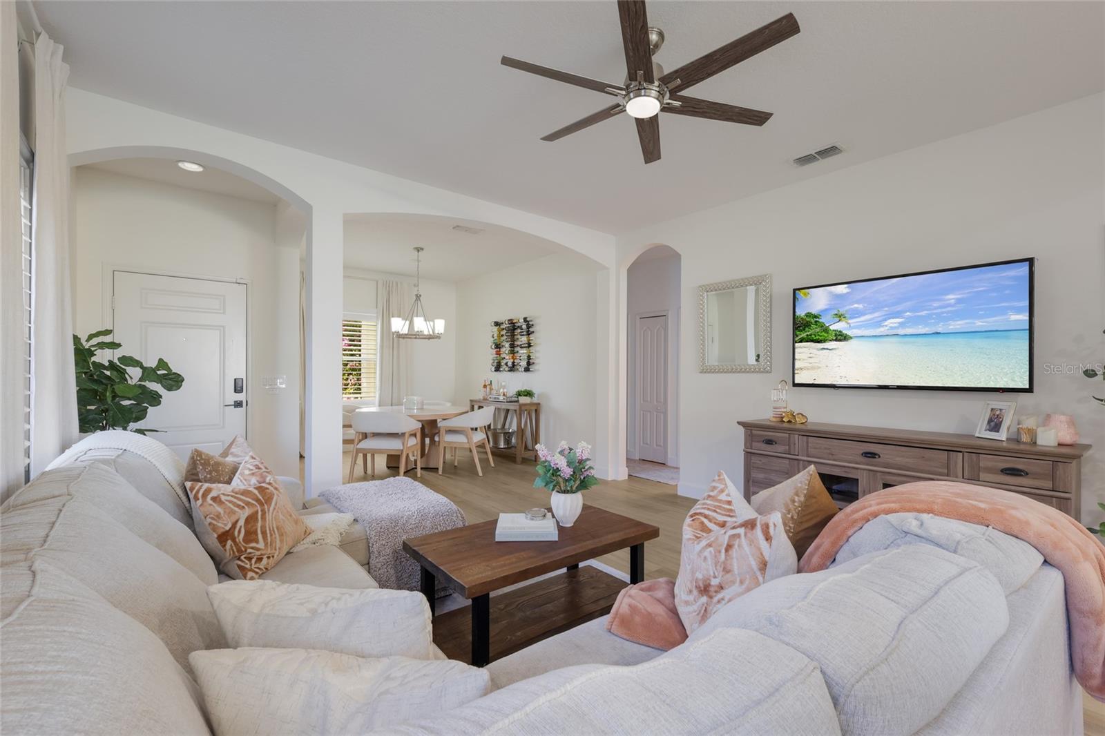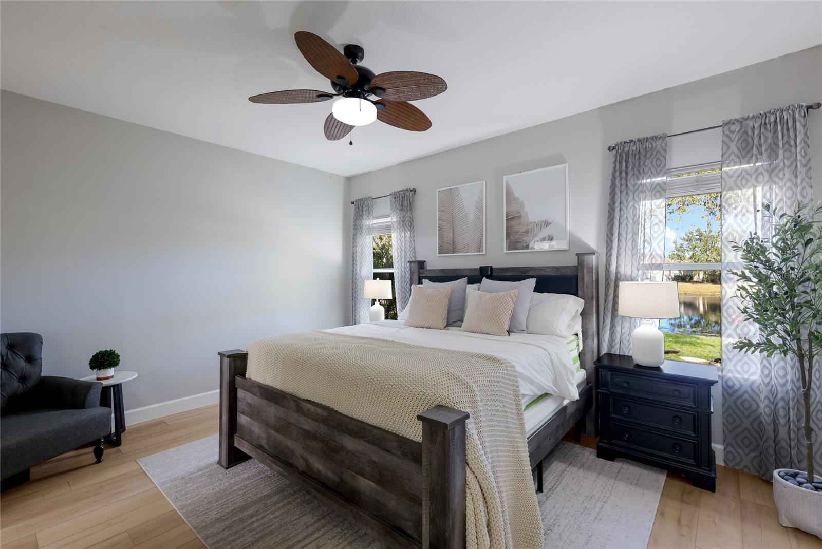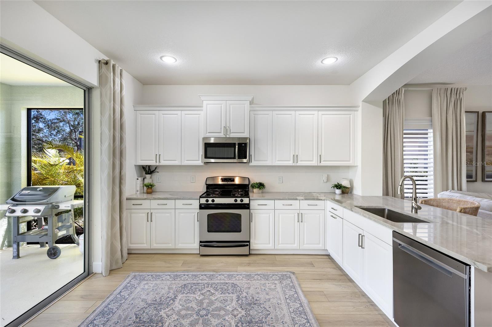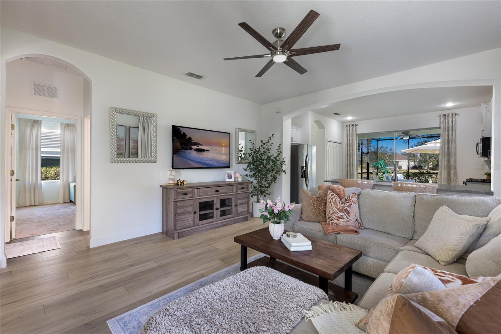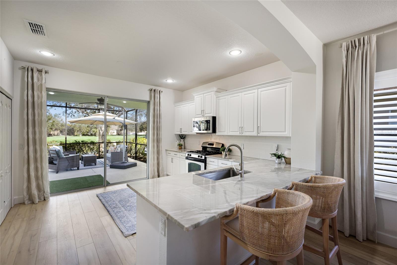 This 3-bedroom, 2-bath home offers a functional layout with an upgraded kitchen, water view, and an extended lanai. Key highlights include the 2024 kitchen renovation a water view. The kitchen was renovated in 2024 and features stainless appliances, including upgraded Whirlpool refrigerator and dishwasher, new level 5 quartzite countertops, a tile backsplash, and refinished cabinets. Interior updates include new luxury vinyl plank flooring installed in 2024, plantation shutters in the living area added in 2025, and upgraded light fixtures. Exterior features include extended lanai, water view, and front porch. The combination of recent renovations, updated finishes, and outdoor space enhancements reflects a property that has been meaningfully improved across multiple areas.***HOA COVERS: Gated Community, Community Manager, Common Grounds Maintenance Trimming & Irrigation, Park & Pavilion, 2 Dog Parks, Playground & Splash Pad, Tennis Courts that sub as Pickleball Courts, and Sports Fields. ***LOCATION: Centrally located. Just outside the gates are A+ schools, Gullett Elementary, Lakewood Ranch High School, and Mona Jain Middle School, LECOM, & Manatee Tech East Campus. Minutes to shopping, restaurants, gyms, salons, bars, etc. Minutes to downtown, Sarasota International Airport, the top rated beaches in the country, UTC Shopping.