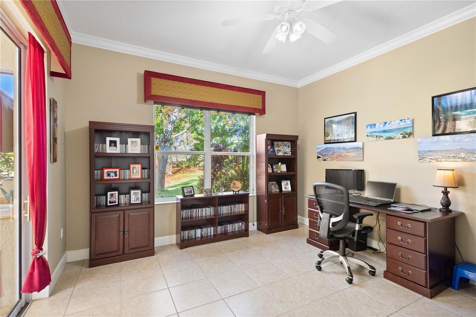 Set in the heart of Greenbrook Village, this beautifully maintained residence showcases an expansive floor plan, elegant architectural details, and a coveted Lakewood Ranch lifestyle near parks and top-rated schools. The double glass front doors create a striking first impression, opening to a welcoming foyer where soaring ceilings, elegant crown molding, and an airy, open ambiance set the tone for the entire home. A thoughtfully positioned office or flex space near the entry provides a private and polished setting for a home office or a quiet retreat. Designed with both everyday comfort and upscale entertaining in mind, the main living areas flow seamlessly between the living room, dining space, and family room. The kitchen serves as a true centerpiece, featuring gas cooking, a double oven, a spacious center island, and generous counter and storage space, ideal for hosting and gathering. Bamboo flooring in the entryway, dining, and living areas adds warmth and sophistication, while updated luxury vinyl plank flooring graces the bedrooms, and tile flows throughout the main living area and kitchen. Privately situated on the main level, the primary suite offers a serene retreat with direct access to the outdoor living area. The spa inspired ensuite bath includes dual vanities, a soaking tub, a spacious walk-in shower, and walk-in closets that create a luxurious escape at the end of the day. As you walk through the home, you'll notice the expansive aquarium windows filling the home with natural light, as well as zero corner sliders for an unobstructed flow to the pool and lanai for elevated indoor-outdoor living. As you step outside to the screened outdoor living area, where the pool and large patio are complemented by the outdoor kitchen and serene pond views, delivering a private and picturesque setting. The upper level extends the home's versatility with a spacious bonus room enhanced by a wet bar, perfect for a movie room, game room, or a private space for overnight guests. This level also includes an additional bedroom, a full bathroom, and access to a large balcony overlooking the pool, offering a rare elevated outdoor space for relaxing or entertaining. Additional features include a three-car garage with a newer belt-driven garage door, upstairs AC replaced in 2025 (transferrable 10 year parts and labor warranty), downstairs AC replaced in 2019, a newer gas water heater, and a newer variable-speed pool pump. With nearly 4,000 square feet of well-designed living space, upscale finishes, multiple indoor and outdoor living spaces, and the best of Lakewood Ranch living, this exceptional residence offers a lifestyle defined by comfort, elegance, and convenience.