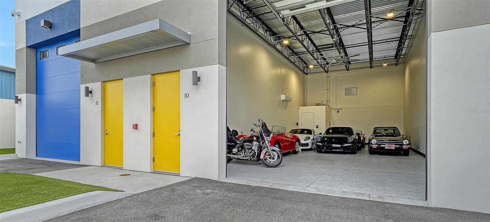 Car Collective is a gated community of luxury garage condominiums offering deeded ownership and provides a true real estate asset rather than leased vehicle storage. Located just off Fruitville Road with easy access to downtown Sarasota and Lakewood Ranch, Unit 10 is available now. This private, climate-controlled garage features HVAC and a large ceiling fan to support air circulation and year-round protection from heat and humidity, along with advanced security systems designed to safeguard high-value vehicles. The building is constructed with hurricane-rated materials, engineered for Category 4 wind resistance, and elevated at 38.2 feet above sea level within a controlled-access community offering front-of-unit parking and a shared detail bay. Inside, soaring ceilings and flexible infrastructure allow for multiple vehicle configurations, accommodating approximately 10+ vehicles depending on size and layout, with potential for additional capacity through lifts or alternative designs. In-unit amenities include a half bath, utility sink, WiFi, dedicated power, and fire sprinkler system, making Unit 10 a secure, customizable, and purpose-built solution for collectors seeking climate-controlled storage with long-term ownership value.