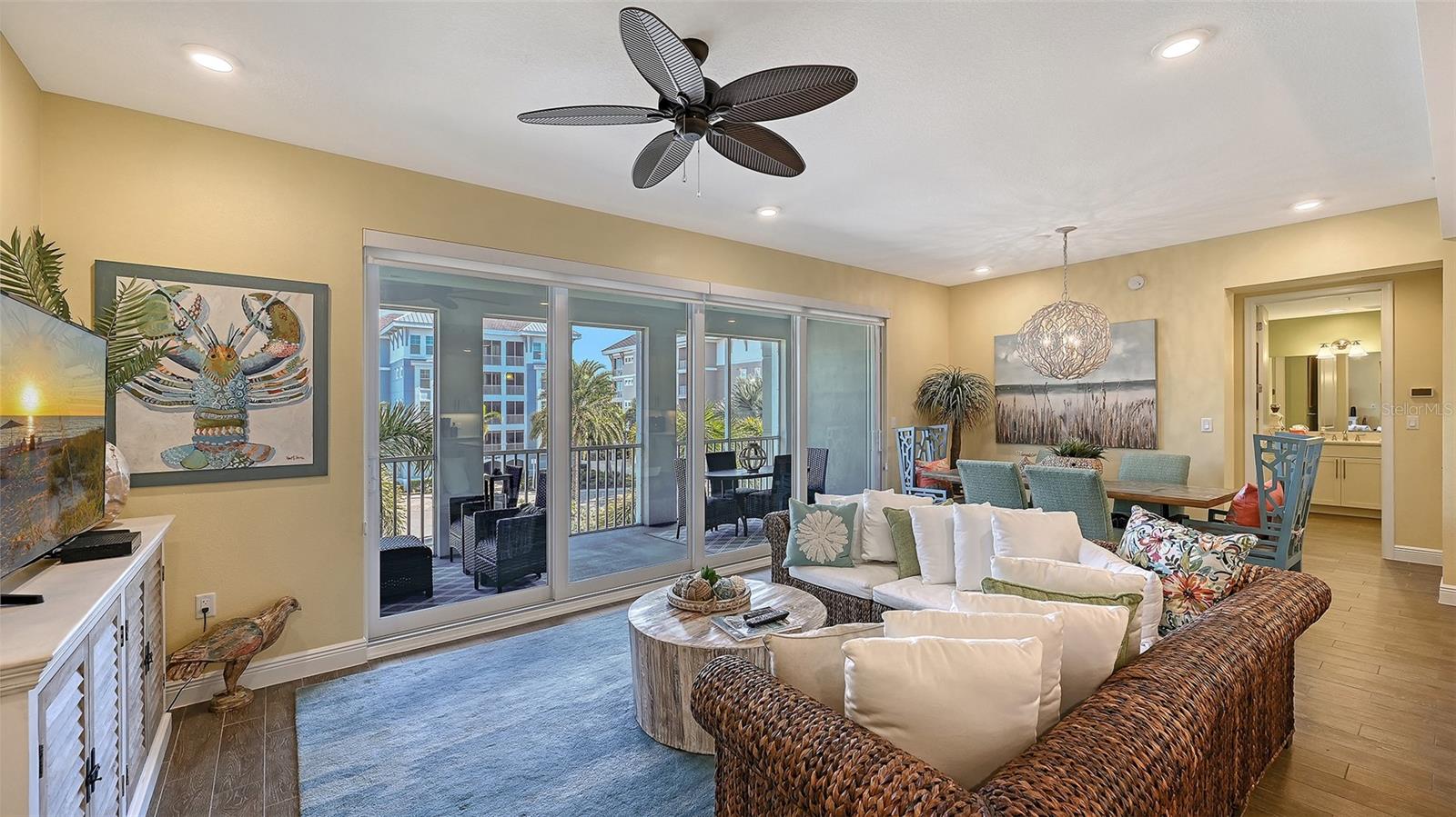 Welcome to Marina Walk at Harbour Isle, where coastal style meets everyday convenience just minutes from Anna Maria Island's award-winning beaches. This newer 2-bedroom, 2-bath condo was professionally decorated and furnished by the original owner in 2020, lightly used, and offered turnkey furnished with over $50,000 in designer furniture and artwork included. The open floor plan is filled with natural light and features tile flooring throughout, a modern kitchen with quartz countertops, stainless-steel appliances, and soft-close cabinetry, plus plantation shutters and custom slider blinds. The split-bedroom layout provides privacy for guests, and recent updates include a new HVAC system (January 2025). Additional highlights include generous closet space, a private storage unit for beach gear, and covered under-building parking.Marina Walk residents enjoy a heated pool, splash pad, and playground, along with full access to the Harbour Isle Beach Club--featuring a resort-style heated pool, cabanas, fire pits, kayak launches, fitness center, walking trails, and the popular Sky Bar & Restaurant overlooking Anna Maria Sound. Located just one mile from Anna Maria Island, with boating next door at the full-service marina, this condo offers an exceptional coastal lifestyle. While never rented, 5-day minimum rentals are allowed, making it ideal for personal use, investment, or both.Move-in ready and perfectly positioned--schedule your private showing today.