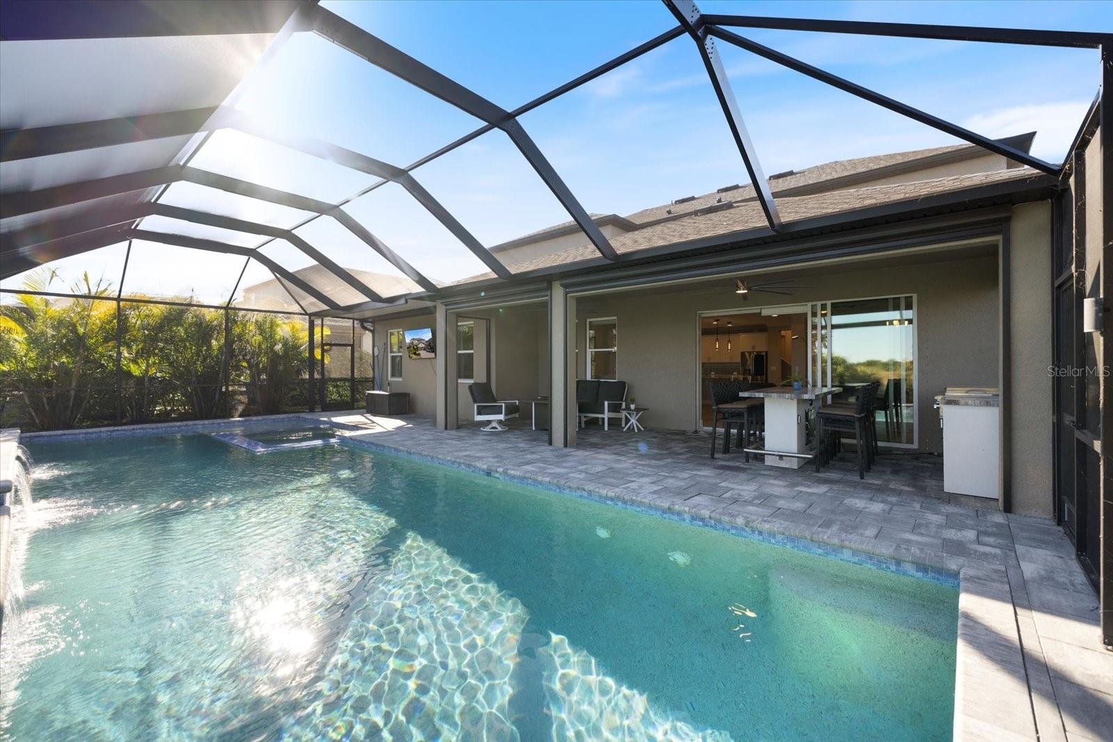 One or more photo(s) has been virtually staged. Welcome to a lifestyle of comfort, space, and resort inspired living in this stunning newer construction home located in the highly desirable Palmer Ranch area of Sarasota. Set within a gated community offering resort style amenities, this expansive 3,651 square foot residence is designed for those who value both everyday ease and elevated entertaining. From the moment you arrive, the three car garage, manicured surroundings, and modern coastal architecture set the tone for what awaits inside.The heart of the home is a bright, open living space anchored by a chef inspired kitchen with an oversized island, generous pantry storage, that flows into the dining and family areas, making it ideal for gatherings large or small. Sliding doors open to a private backyard retreat where days are spent enjoying the large pool and spa, relaxing under the covered lanai, or hosting friends in the outdoor kitchen while taking in peaceful water views. This indoor outdoor connection defines the Florida lifestyle and makes everyday living feel like a vacation.With five true bedrooms and a large loft, the home offers flexibility for multi generational living, remote work, fitness space, or a dedicated media room. The luxurious primary suite is a private sanctuary featuring a custom walk in closet and a spa like bath with a soaking jacuzzi tub, walk in shower, and elegant finishes that invite relaxation at the end of the day. Thoughtful upgrades throughout include a RainSoft water softener system, Ring security system, and custom storage solutions that enhance both comfort and functionality.Living in Palmer Ranch means you are surrounded by some of Sarasota's most sought after attractions and conveniences. Siesta Key Beach, consistently ranked among the top beaches in the country, is approximately 7 miles away and offers powdery white sand and breathtaking Gulf sunsets. The Legacy Trail, a favorite for walking, running, and biking, is about 2 miles from the home and provides miles of scenic, car free recreation. Downtown Sarasota is roughly 9 miles away, where you can enjoy arts, culture, waterfront dining, and events year round. Nokomis beach and its famous sunsets are 7.2 miles and a 12 minute drive. When it comes to dining, some of the most searched and loved restaurants in the Sarasota area are just a short drive away. Owens Fish Camp, known for its laid back Old Florida charm and fresh seafood, is approximately 9 miles away. Ophelia's on the Bay, a waterfront dining destination on Siesta Key offering elevated coastal cuisine, is about 8 miles from the home. Selva Grill, a downtown favorite for Latin inspired fine dining, is also around 9 miles away. This home offers the rare combination of newer construction, generous living space, luxury finishes, and an unbeatable location within one of Sarasota's most desirable master planned communities. Here, life is defined by comfort, connection, and the freedom to enjoy everything Sarasota has to offer, from beach days and bike rides to elegant evenings out and quiet nights at home by the pool.