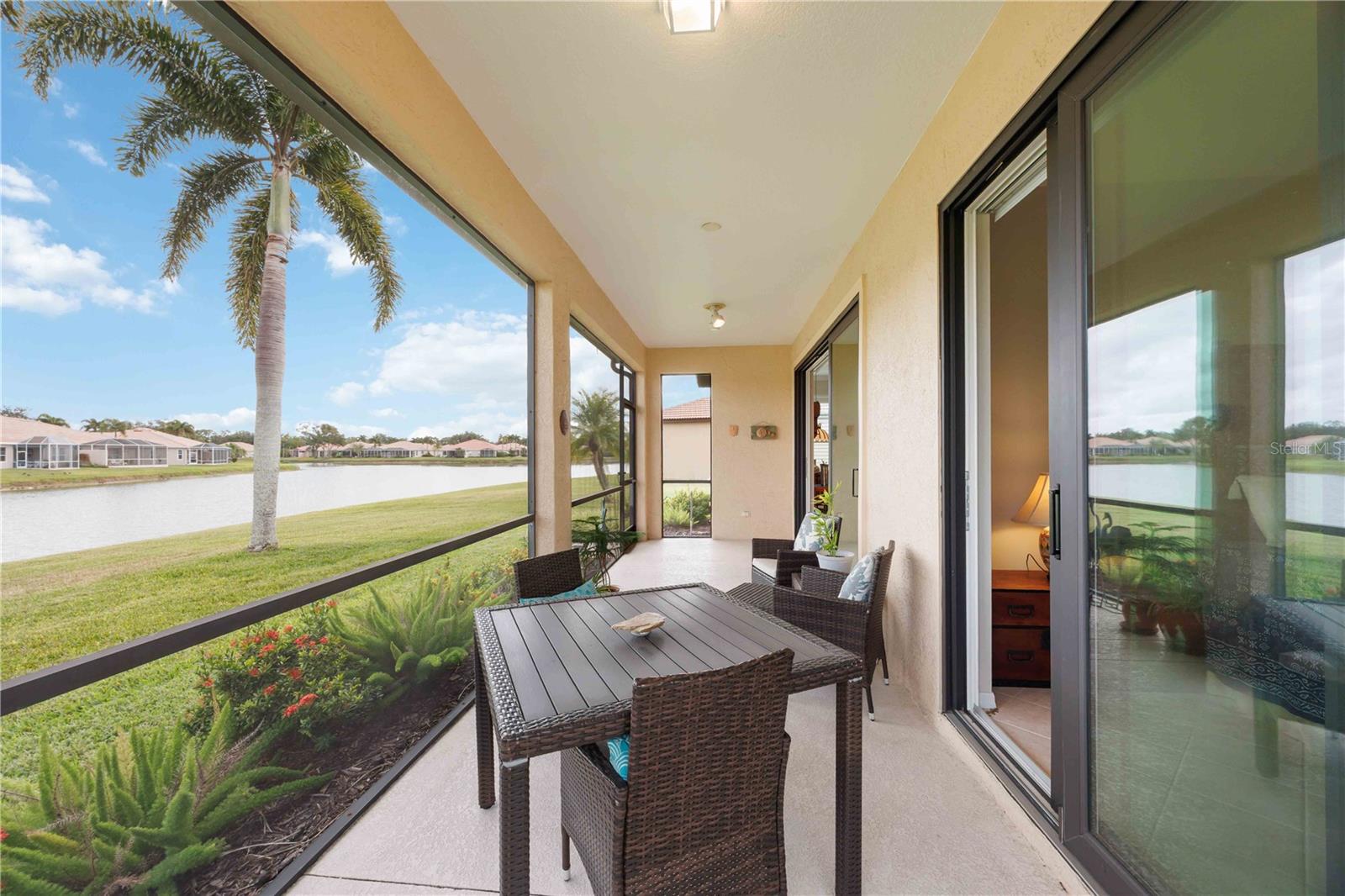 Enjoy the best of Florida living in this 2-bedroom plus den, 2-bath home with a 2-car garage, ideally positioned on a peaceful lake and preserve view in a desirable 24-hour guard-gated 55+ community.Major improvements include a NEW ROOF with transferable warranty and hurricane-impact windows and sliding glass doors, offering storm protection, reduced noise, UV protection, and energy efficiency that helps keep electric bills low. There is no cable charge, with the included TV antenna with cable connections throughout the home that adds convenience.A welcoming screened front entry leads into a light-filled interior featuring, crown molding, updated lighting, and ceiling fans throughout. There is tile flooring laid on the diagonal throughout the home The dining area opens to the living room creating an ideal space for entertaining. The living area has triple sliders giving you stunning views of the lake and preserve.The kitchen is both functional and inviting, offering oak cabinetry with pull-out drawers, Corian countertops, a breakfast bar, and a sunny breakfast nook with ceiling fan. Gas appliances include the stove, water heater, and dryer.The den/office is perfectly designed for flexibility, featuring a Murphy bed and ceiling fan--ideal for guests or a home office. The primary ensuite is a private retreat with two sliding doors to the lanai, ceiling fan, dual closets (walk-in and standard), and a spacious en-suite bath with dual sinks, soaking tub, Roman shower and water closet.The guest bedroom offers a standard closet plus a deep walk-in closet, and ensuite access to the guest bath. The guest bath, also accessible from the hall, offers a walk-in shower and single sink with vanity space.Step out to the extended screened lanai and relax while enjoying tranquil lake and preserve views, accented by foxtail and pygmy palms--a perfect setting for morning coffee or evening sunsets. No direct sunlight, so you can enjoy it all day long.Additional highlights include indoor laundry with sink (washer and dryer included), central vacuum system, automatic garage door opener, and recently replaced garage door springs.Lakeridge Falls is a 55+ guard gated community. It offers an updated clubhouse with grand salon for a full array of activities, state-of-art fitness center, card room, billiards room, resort style heated pool and spa, bocce ball courts and its own private sandy beach. Walking trails and beautiful lakes are another of its many attractive features. The community is located conveniently close to shopping at the UTC Mall, restaurants, world awarded beaches and the Sarasota airport. Come see for yourself why this home is your perfect place to relax, entertain, and enjoy the Florida lifestyle--schedule your showing today.