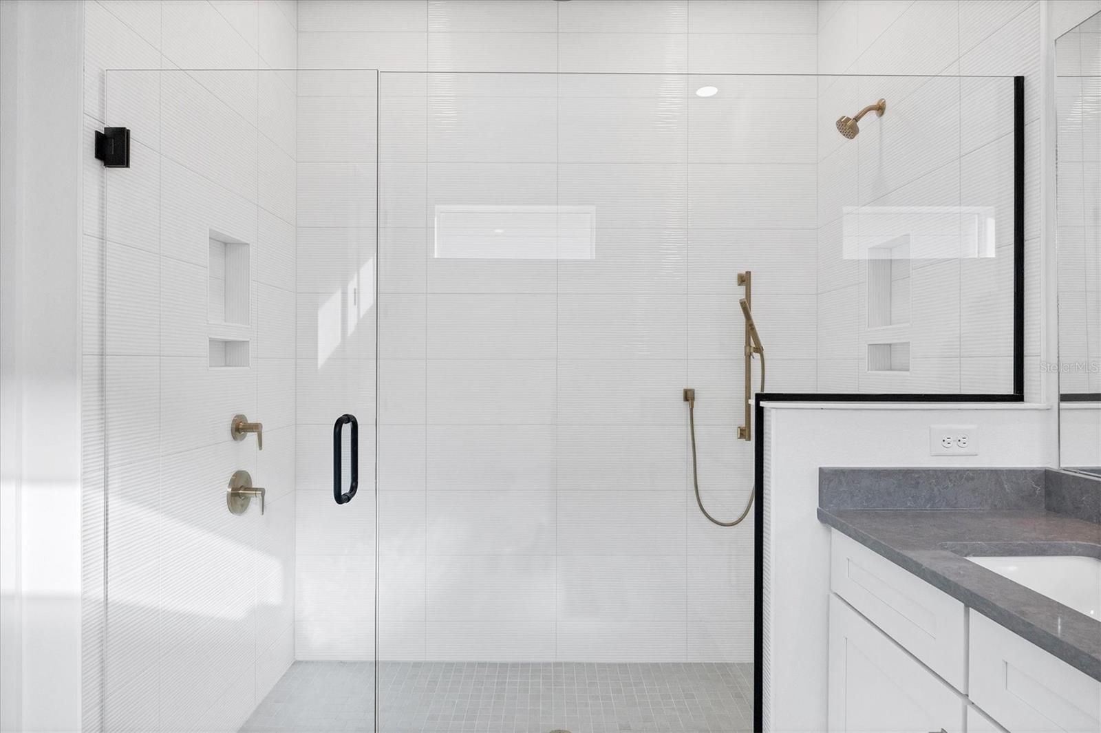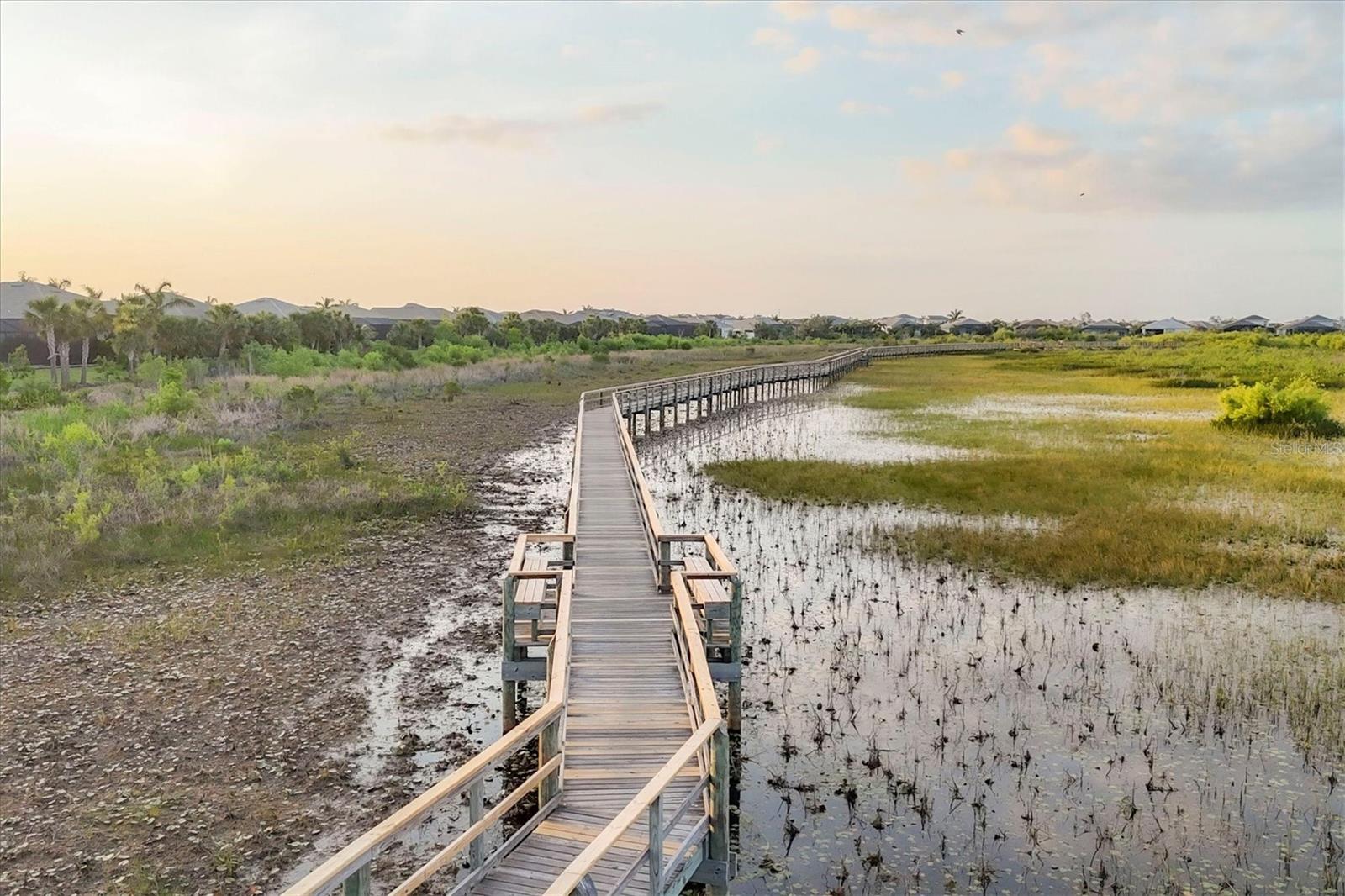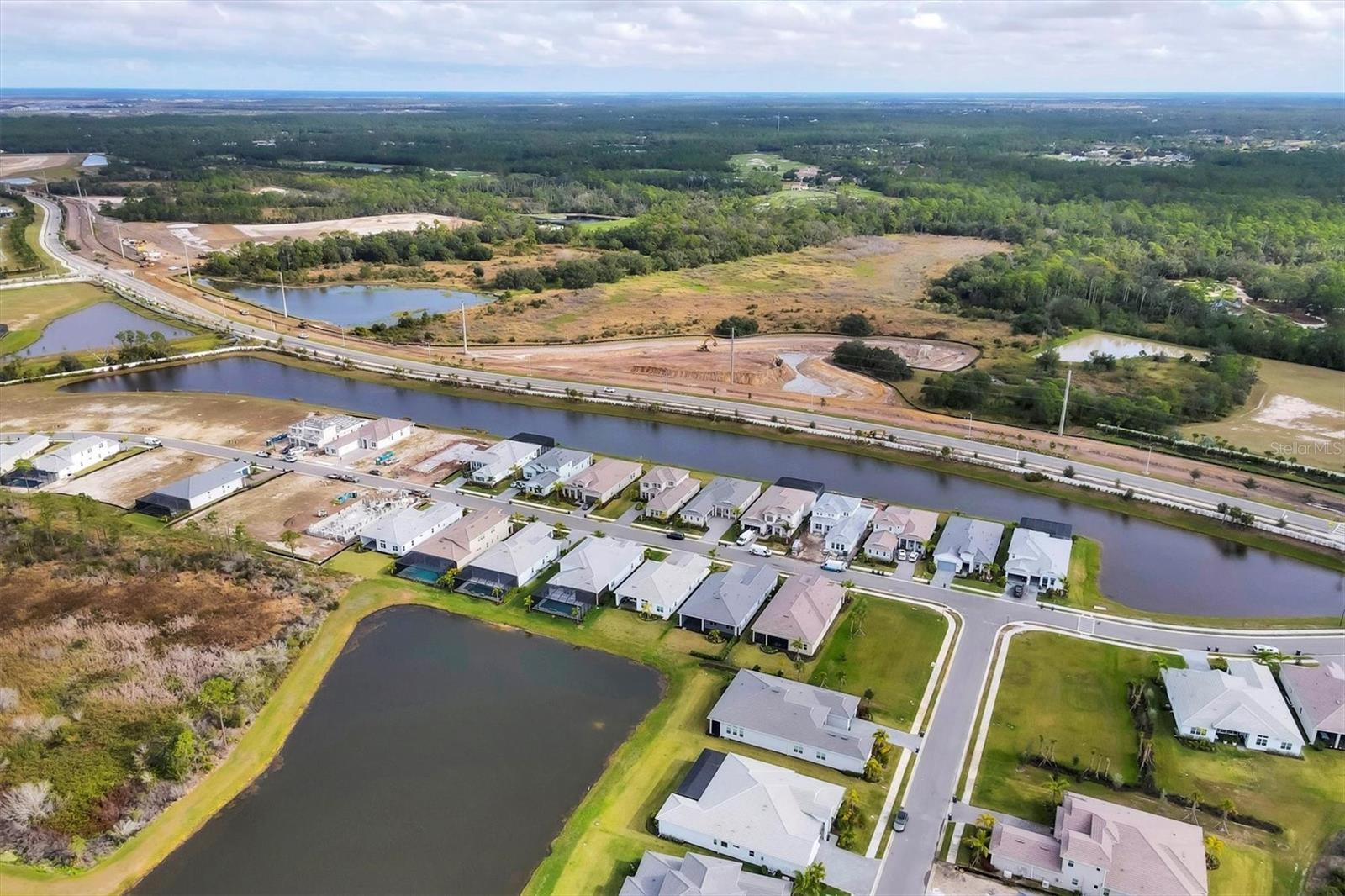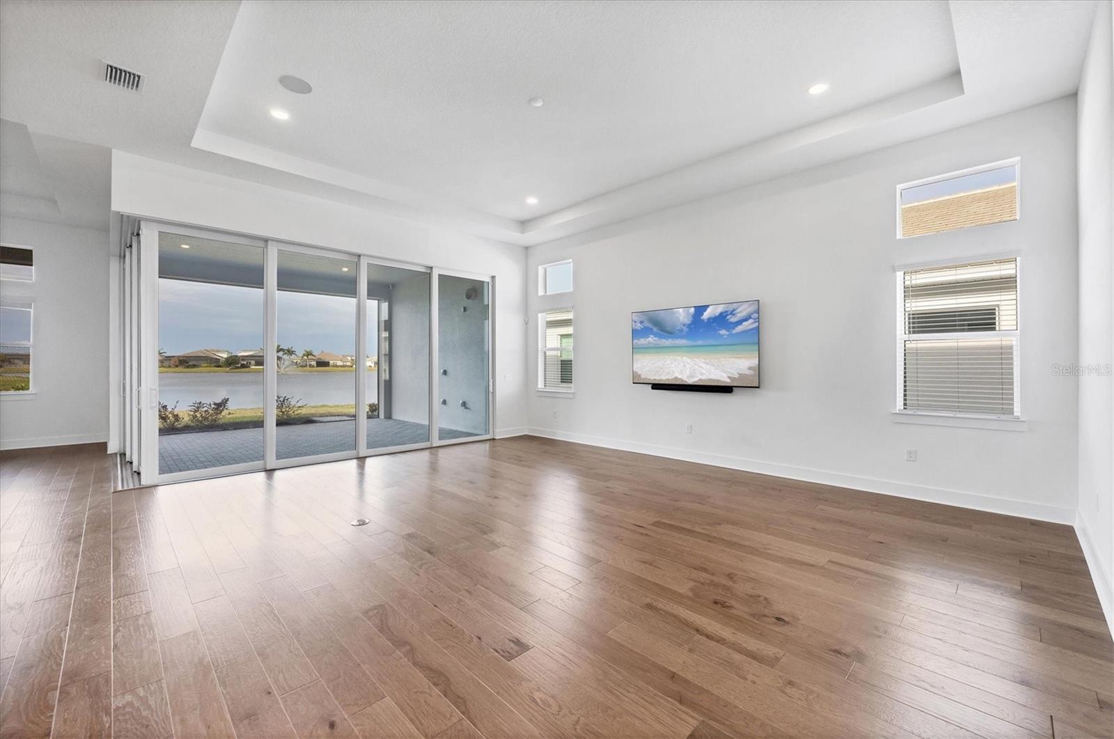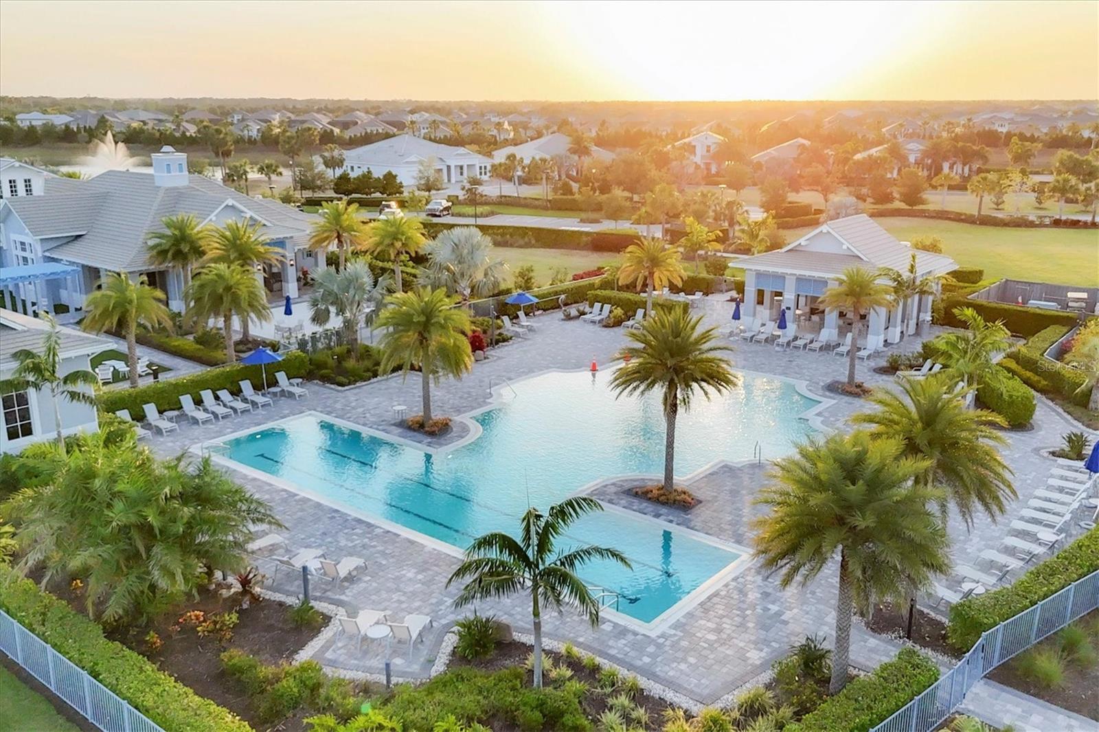 One or more photo(s) has been virtually staged. Coastal-inspired sanctuary, newly built and move-in ready, overlooking a peaceful pond and lush landscaping. This exceptional home features a refined architectural design, elegant finishes, and modern conveniences, creating a move-in-ready retreat. The owner's carefully curated enhancements, thoughtfully executed after purchase, elevate the home with functional upgrades and luxurious details throughout. The open-concept floor plan offers 3 bedrooms and 3.5 baths, each with its own ensuite. Soaring 12'8" ceilings throughout the home and tray ceilings in the great room, kitchen, and primary suite create an airy, light-filled atmosphere, while engineered hardwood flooring flows throughout, including the newly updated flooring in the bedrooms, for a cohesive and elevated finish. The luxurious primary suite includes a walk-in closet, a spa-inspired walk-in shower with a rain showerhead system, and abundant natural light. The gourmet kitchen showcases premium cabinetry, upscale finishes, and a high-end stainless steel appliance package, opening seamlessly to the expansive great room ideal for everyday living and entertaining. A striking wall of 10-foot multi-panel stacking sliding glass doors, including a dramatic 90-degree corner opening, creates a seamless indoor-outdoor connection to the fully screened lanai, professionally created as a luxurious outdoor living space overlooking serene water views. The outdoor area is complemented by professionally enhanced landscaping designed to accommodate a future pool, providing the perfect setting for relaxation or entertaining. Post-closing enhancements include: a professionally installed full gutter system, new custom window treatments, full exterior camera security system, high-end washer and dryer with pedestals. The three-car garage is upgraded with an air-conditioning system, ideal for climate-controlled storage, hobbies, or a home gym. Entertainment features include an 85-inch TV with surround sound in the great room and a 55-inch TV in a secondary bedroom. Residents of The Isles at Lakewood Ranch enjoy an active, resort-style lifestyle in this gated community, with access to a clubhouse, fitness center, pool, tennis and pickleball courts, a playground, dog park, and recreation spaces, providing endless opportunities for relaxation, play, and social connection. This newly built, never-occupied home has been thoughtfully enhanced by the owner with $40,000 in upgrades and custom touches designed to elevate both functionality and luxury.