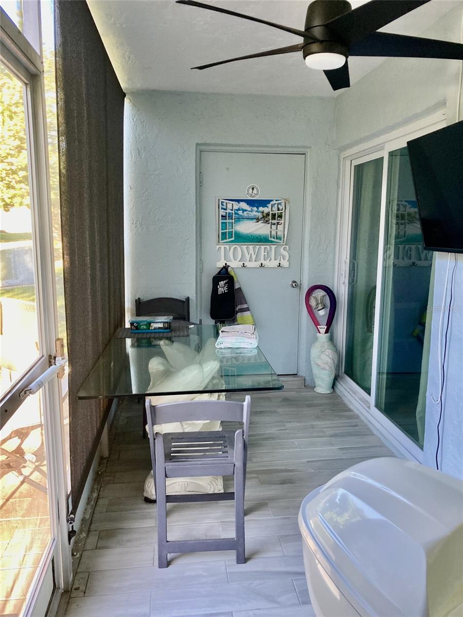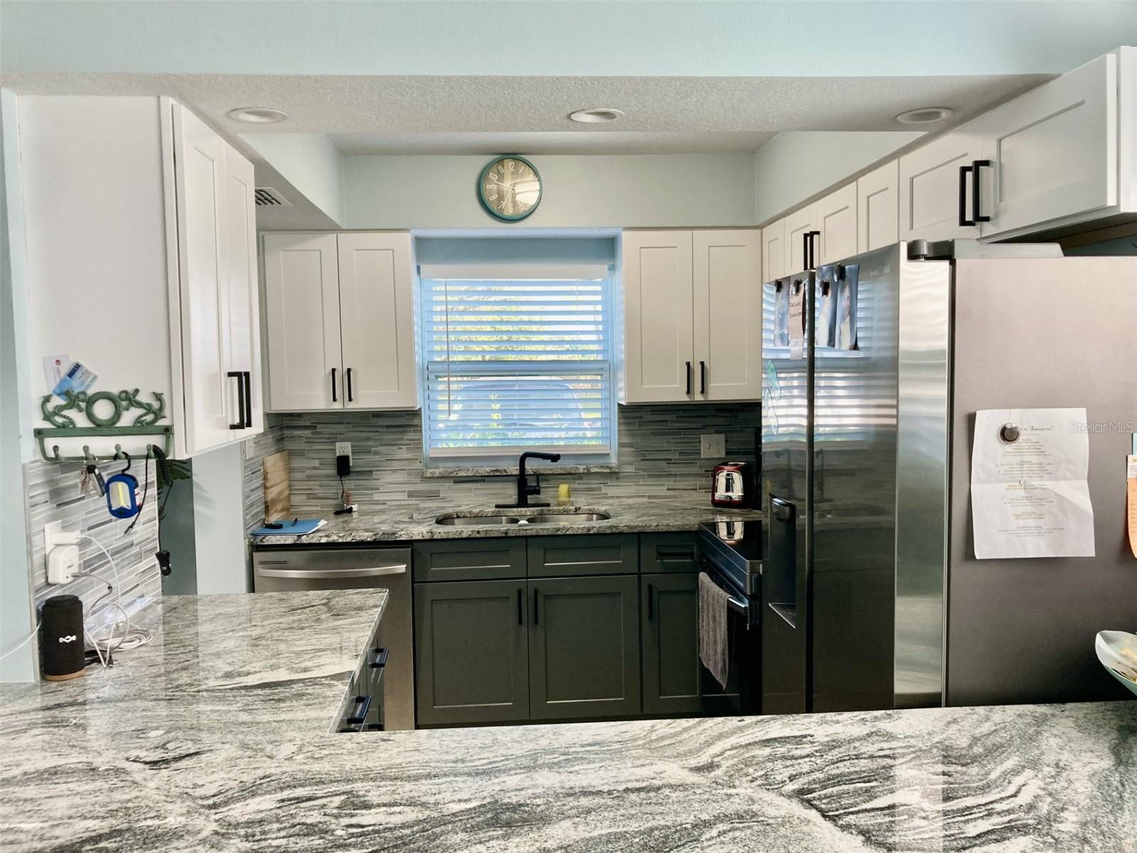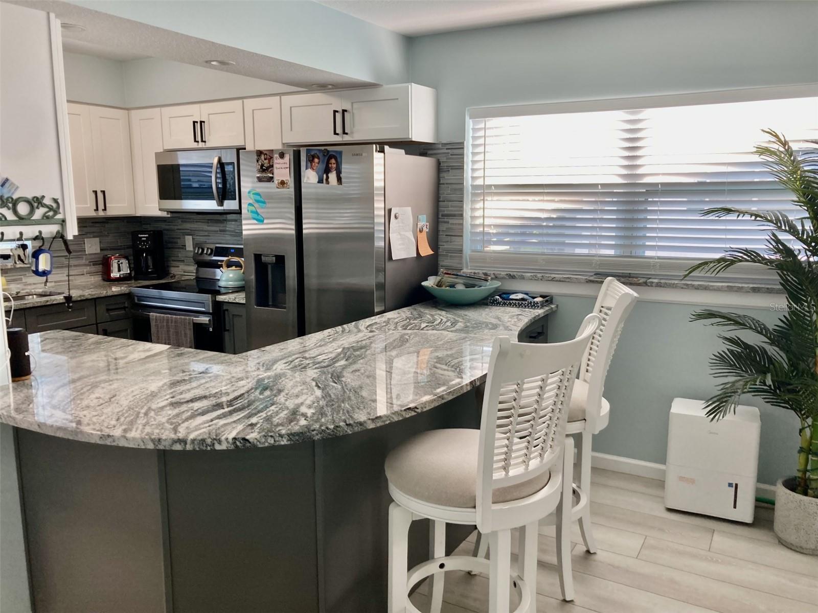 Totally remodeled from the studs in - everything new approximately 3-4 years ago. This first floor end unit is beautifully appointed! Laminate flooring throughout, granite countertops in kitchen, bathroom and window sills, A/C and electrical panel replaced in 2022, new windows and sliding doors, stainless steel appliances and is being offered turnkey furnished plus a washer/dryer which was added. The screened porch features a fold out Murphy bed plus has a walk-in storage closet. Off the porch is a patio and a short walk to the pool. The community offers a heated pool, tennis courts, pickleball court, shuffleboard and a clubhouse. Close to shopping and restaurants and about 10 miles to the beach. This is an all age community with low maintenance fees and no wait time to lease. All ages and all pet sizes allowed.