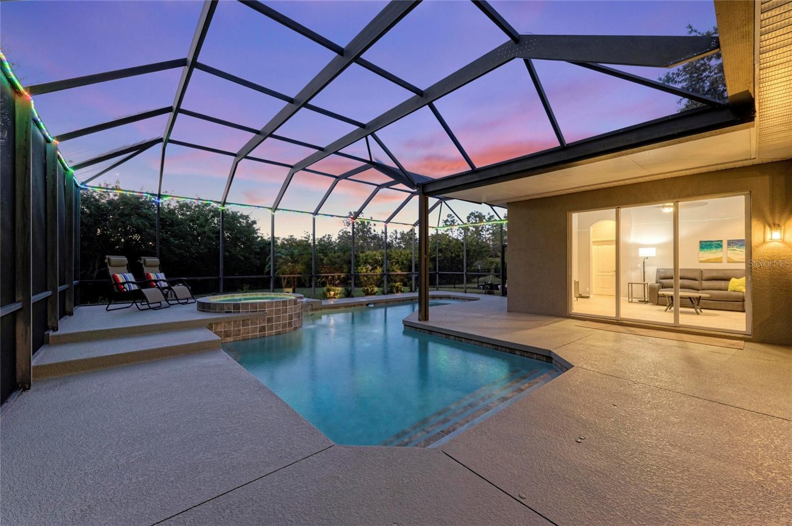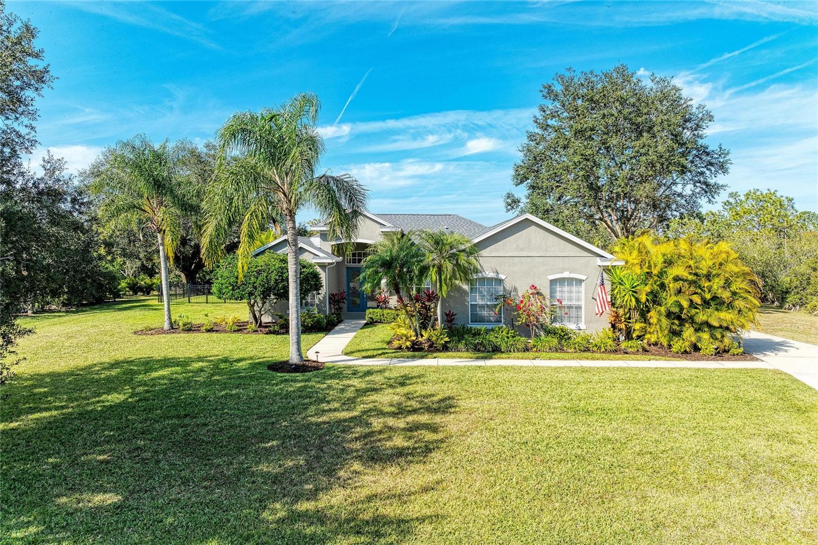 Tucked away at the end of a quiet cul-de-sac in the highly coveted Preserve at Panther Ridge, this exceptional home is set on a rare and private 1.45-acre premium lot bordered by a nature preserve--offering serenity, space, & true Florida living at its finest. This thoughtfully positioned east-facing home welcomes glowing sunrises, while the west-facing backyard delivers breathtaking sunset views the Florida Gulf Coast is famous for. Designed for year-round outdoor enjoyment, the expansive screened lanai features a heated pool with tranquil waterfall spa, creating the perfect setting for relaxing or entertaining. A large, fenced portion of the backyard provides a space for children or pets, while a cleared private field beyond the pool area offers endless possibilities & ultimate privacy. Inside, this spacious 4-bedroom, 3-bath home offers a desirable split floor plan with a seamless blend of elegance & comfort. The double-door entry opens to a light-filledfoyer, formal living room & dining area highlighted by rich wood floors & soaring ceilings. The renovated kitchen (2018) is both stunning & functional, featuring bright white wood cabinetry with easy-glide pullout storage, granite countertops, breakfast bar, deep sink with gooseneck faucet, stainless Samsung appliances, and a large closet pantry. The kitchen & adjoining family room feature durable tile flooring, ideal for Florida's indoor-outdoor lifestyle & easy everyday maintenance. A charming breakfast nook with an aquarium-style window overlooks the pool & backyard, while the adjoining family room--complete with triple stacking sliding glass doors--creates effortless indoor-outdoor living. The laundry room is located just off the kitchen, providing direct access to the spacious 3-car garage--perfect for daily functionality, storage, & smooth household flow. The primary suite is a peaceful retreat, overlooking the pool & offering private lanai access through French doors. Highlights include a tray ceiling, 2 spacious closets, and an en-suite bath with dual vanities, makeup area, garden tub, & a large walk-in shower. All 4 bedrooms feature plush carpet, offering comfort & warmth. On the opposite side of the home are 3 additional bedrooms & 2 full baths, including 1 guest room with a Murphy bed & another ideal for a home office with built-in desk & credenza. Notable Features & Recent Upgrades include: NEW Roof (2020) NEW A/C (2023) EMP Surge Protector & Generator Transfer Switch (2023) Water Softener & Well Pump (2021) Aluminum Fence (2021) Pool Pump & Spa Blower Motor (2021) Stainless Kitchen Appliances (2018) Updated ceiling fans with remote/dimmer controls, Crown molding, tray ceilings, high ceilings throughout, 128 sq ft ceiling-mounted garage storage, SimpliSafe home security system. LOW HOA fees include Spectrum cable & internet, community park with pavilion & restrooms, tennis & basketball courts, playground, & walking trails. No CDD fees. The Preserve at Panther Ridge is one of 13 neighborhoods within a breathtaking 4,500-acre community, known for estate-sized lots, moss-draped oaks, scenic creeks, & 15 miles of equestrian & nature trails. Enjoy the tranquility of country living while being just minutes from Lakewood Ranch, UTC Mall, dining, shopping, hospitals, A-rated schools, beautiful beaches, & area airports. This one-of-a-kind property seamlessly blends privacy, comfort, & location. Come experience the lifestyle--and fall in love with everything Panther Ridge has to offer.