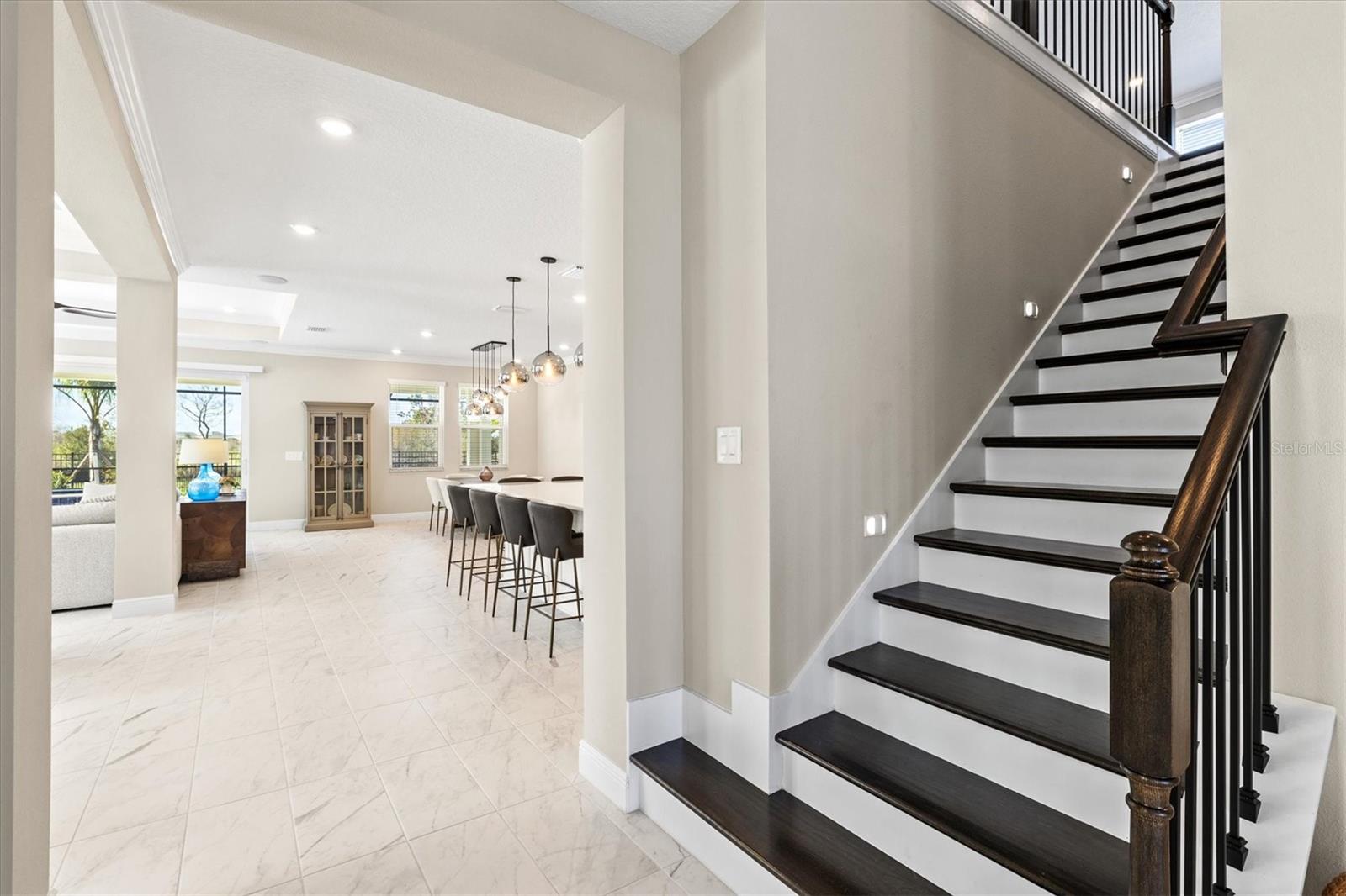 Welcome to this beautifully upgraded 2025-built, four-bedroom pool home, ideally situated on a premium lot within the gated Sweetwater community of Lakewood Ranch. Designed for modern living and effortless entertaining, this residence offers impact-rated windows and doors, a whole-home generator, crown molding, tray ceilings, 8-foot interior doors, upgraded baseboards, and refined lighting throughout.The interior features tile flooring across the main living areas, plush upgraded carpeting upstairs, and a thoughtfully designed floor plan with a first-floor primary suite complete with a spacious walk-in closet and spa-inspired bath. The kitchen was enhanced in July 2025 with an upgraded appliance package and soft-close cabinetry throughout the home, complemented by a whole-house water softener system with reverse osmosis filtration at the kitchen sink, professionally installed by H2O Heroes in February 2025.Additional features include a built-in drop zone with cabinetry and counter space, upstairs storage with a dedicated tech or homework station, theater-style staircase lighting, and whole-home speaker wiring with ceiling speakers already installed in the living room, loft, and lanai.Sliding doors open to an extended lanai pre-wired and plumbed for an outdoor kitchen, overlooking a fenced backyard with a private pool--ideal for relaxing or entertaining. Added peace of mind comes from a home security system with cameras, surge protection for exterior HVAC units, tankless water heaters, a 20-amp garage outlet, and premium finishes throughout.Residents of Sweetwater enjoy resort-style amenities including a clubhouse, fitness center, heated pool, pickleball courts, and playgrounds, all within one of Lakewood Ranch's most desirable communities. This home offers the perfect blend of style, comfort, and location.