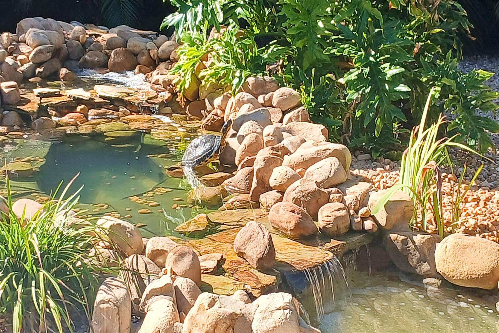 Three-bedroom Anna Maria Island beach home, just a short stroll to the island's world class beaches. This Holmes Beach retreat, located on Anna Maria Island, is ready and waiting for you! Discover this bright and airy split plan, three-bedroom home spanning over 1,100 square feet, thoughtfully designed with open living space combining the kitchen and living room areas. Located on a quiet cul-de-sac, this home sits right in the Island's sweet spot between the Cortez and Manatee Bridges, providing easy access on and off the island. You're just a short walk or golf cart ride away from white sandy beaches, restaurants, shops, and a convenient free trolley stop. Step into your own tropical, completely private backyard oasis complete with screened in lanai and highly sought after southern exposure. Enjoy a beautiful, heated saltwater pool equipped with sprayers, fountains, and a sun platform for ultimate relaxation. A multilevel waterfall pond adds to the tranquil atmosphere, featuring a charming bridge that leads you over the pond directly to the gorgeous pool area. The expansive 9,000-square-foot lot is enhanced by landscaping stones, providing ease of maintenance. The home features a metal roof and impact windows for peace of mind. It boasts 2025 appliances, including a washer and dryer, along with all-new cabinetry and quartz countertops in both the kitchen and master bath. Fresh paint and 5-inch base molding through-out complete the modern look and feel. This property is offered turnkey furnished and is rental ready for monthly stays. RV and boat parking allowed! There is nothing to do here but relax and enjoy your surroundings: take a dip in the pool, stroll to the beach, indulge in the varied dining options this island has to offer, from tiki bars to fine dining. Enjoy the manatees and dolphins playing in the canal across the street and parrots flying overhead! Immerse yourself in all the serenity and joys this beautiful island has to offer. Whether you're seeking relaxation or adventure, this home provides the perfect base for enjoying Anna Maria Island's unique charm and vibrant lifestyle.