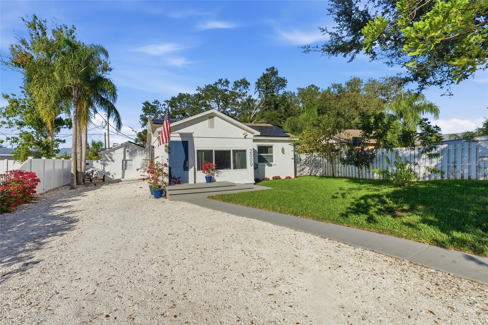 Modern, Smart & Exceptionally Upgraded | Main House + Guest House Welcome to 2009 1st Avenue East, a truly one-of-a-kind property where no detail was overlooked. Since purchasing the home, the owners invested approximately $280,000 in upgrades--creating an exceptionally efficient, secure, and beautifully designed residence that stands out as one of the finest homes in the area.The property features three separate structures: a fully remodeled main house, a private guest house, and a versatile 12x12 climate-controlled shed--all equipped with newer high-efficiency heat-pump air conditioning systems.At the heart of the home is a $130,000 Canadian Solar system with 47 panels and ~40 kWh of battery storage, reducing monthly electric bills from providing remarkable energy independence and consistently minimal power costs.. A new 200-amp solar-ready electrical panel, whole-home cellulose insulation, and premium hurricane-rated windows and doors further enhance efficiency and peace of mind.Designed with a refined European aesthetic, the interior offers smooth modern walls, large-format tile flooring, custom solid doors, brushed brass fixtures, LED strip lighting throughout (fully app-controlled), and a spa-inspired primary bathroom with dual shower heads and a realistic artificial skylight. The primary bedroom also features a custom-built, modern luxury closet valued at $12,000, beautifully finished and illuminated with integrated LED lighting for both style and functionality. The kitchen features Samsung Bespoke appliances, quartzite countertops, illuminated IKEA cabinetry, and thoughtful built-ins for everyday functionality.Outdoor living is equally impressive with app-controlled irrigation, specialty fruit trees, modern concrete steps, an engineered hot-tub deck with dedicated power, decorative backyard lighting, shell landscaping, and comprehensive flood-protection systems, including foundation sealing and removable Easy-Dam barriers.Additional highlights include:New Trane 20-SEER variable-speed HVAC (transferable warranty)Modern guest house with its own high-efficiency mini-splitClimate-controlled shed ideal for gym, office, or studioAdvanced camera and security systemSmart home integration across lighting, climate, solar, irrigation, appliances, and securityNew water heater, sewer backflow prevention, upgraded plumbing & electrical throughoutIncluded furniture: concrete dining table, office table, and casita table with two chairs.Optional purchases available: designer chandelier and premium Hot Springs hot tub (under warranty).This is not just a home--it's a fully modernized, energy-independent lifestyle property offering comfort, resilience, and sophistication rarely found at this level.