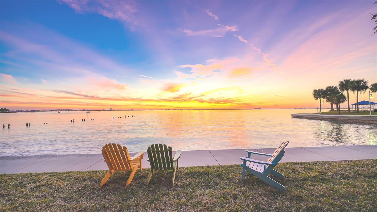 This exceptional penthouse end-unit offers elevated panoramic views of Sarasota Bay and the beautifully illuminated Ringling Bridge. As the largest floor plan available in Bay's Bluff, the residence spans the entire width of the building and, with its expansive windows, offers either sunrise or sunset views from every room - - - and wonderful cross breezes! * * * Completely updated and meticulously maintained, this unit is move-in ready with furniture included. Hurricane-impact windows and sliding glass doors provide added peace of mind. The screened lanai is situated so that it offers almost total privacy making it the perfect place to sit, relax and watch the seabirds, sailboats, and breathtaking sunsets. The electric hurricane shutter even keeps the rain off the balcony during storms and will block the intense sun for the few minutes in the afternoon when the beautiful live oak tree doesn't do that for you. * * * Bay's Bluff is a charming, pet-friendly mid-rise community. The bayfront heated pool and grill area are ideal for hosting a sunset cocktail party or cookout. Or relax at the water's edge in an Adirondack chair on the community's 267-foot private seawall, where the soothing sounds of the bay will calm your mind and spirit. * * * Location, location, location! Publix grocery is conveniently located just across the street; The Bay Park, Sarasota's 53-acre cultural and waterfront destination, is only two blocks away; downtown Main Street is just one mile away, offering easy access to world-class dining, theaters, galleries and shopping; the Sarasota-Bradenton Airport is 4 miles away; and one of Sarasota's many wonderful beaches lies just on the other side of the Ringling Bridge that you can see from the lanai. * * * Don't miss this rare opportunity to own a premier bayfront residence in downtown Sarasota, with its sweeping water views, prime location, and exceptional value.