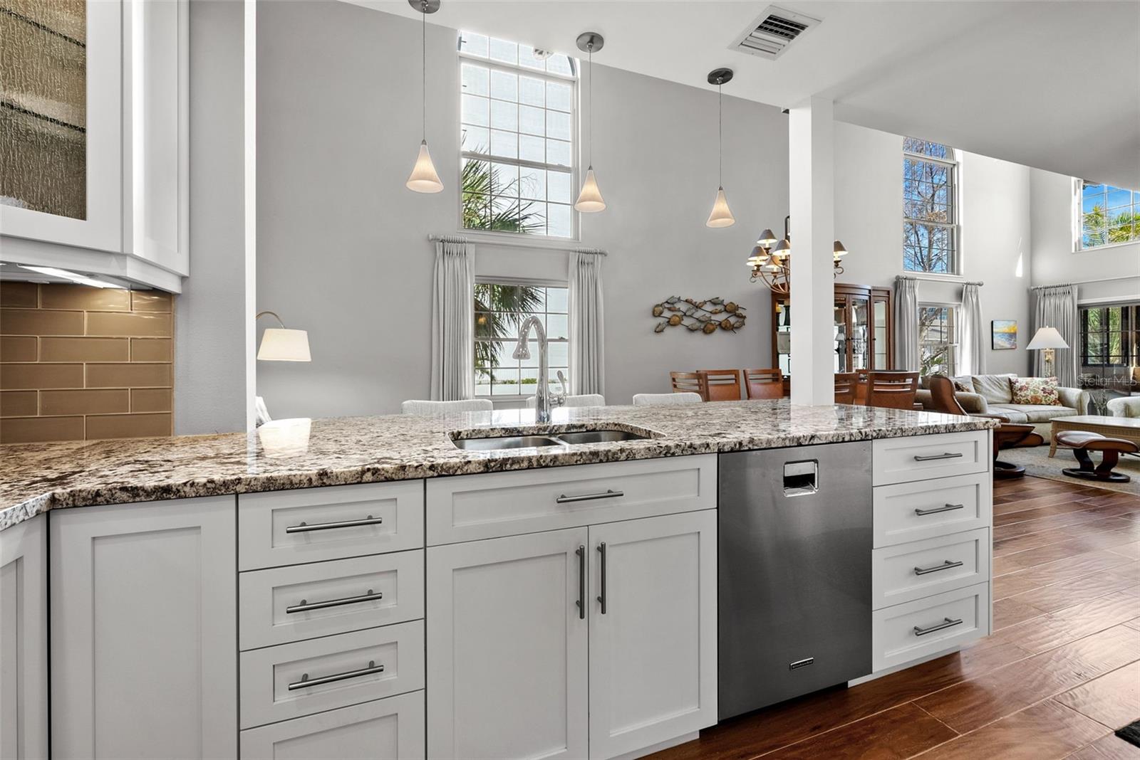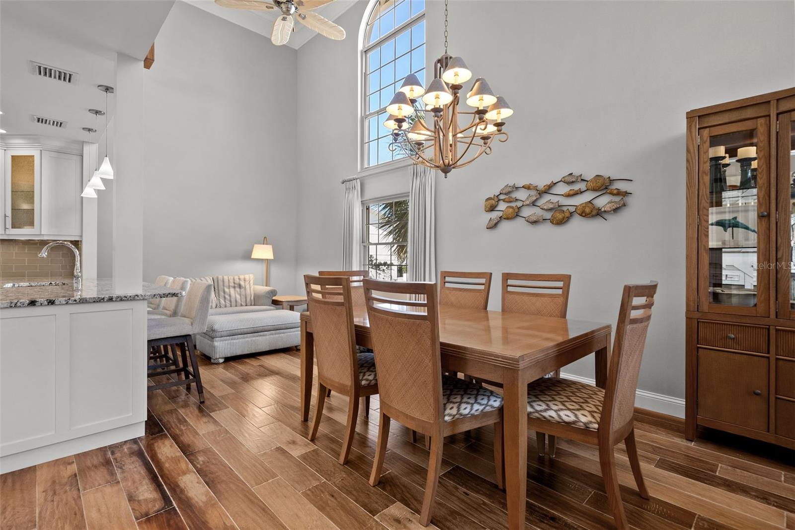 Tucked within a charming Gulf-side community of just 27 residences, this unique and rarely available townhouse on Siesta Key is in model condition and offers private access to one of the most celebrated beaches in the country. With 1,760 square feet of living space, the home features soaring two-story ceilings and abundant natural light throughout the main living areas. Head upstairs on the grand staircase to an additional bedroom plus a versatile loft space--currently used as a TV room and office--which could easily function as a third bedroom. The primary suite is conveniently located on the first floor and opens to a private enclosed sitting area. An updated kitchen with wood and glass cabinetry, natural stone countertops, stainless steel appliances, a spacious island flows into a casual dining area and living space, all finished with engineered hardwood floors, crown molding, and a neutral color palette. Two updated full bathrooms serve both levels, and laundry is located inside on the main floor. Additional features include built-in beverage refrigeration, hurricane shutters, and dedicated closets. Enjoy the private entry and an unheard of oversized garage with space for three vehicles adding loads of additional storage and convenience. The amount of storage is like living in a single family home. The community is primarily owner-occupied, with limited rentals, and welcomes large pets. Recent association improvements include new garage doors, exterior paint, landscaping, privacy fencing and more making this community feel like new. Steps from the white sands of Siesta Key, community pool, and close to shopping and dining. This move-in ready home invites you to settle into the ease of coastal living.
