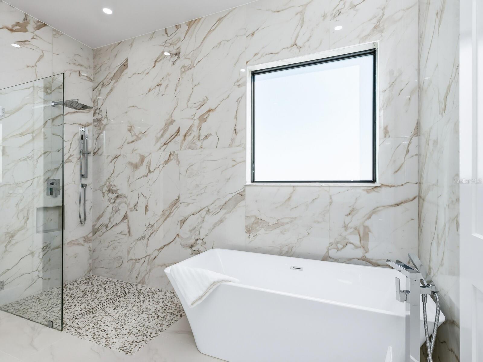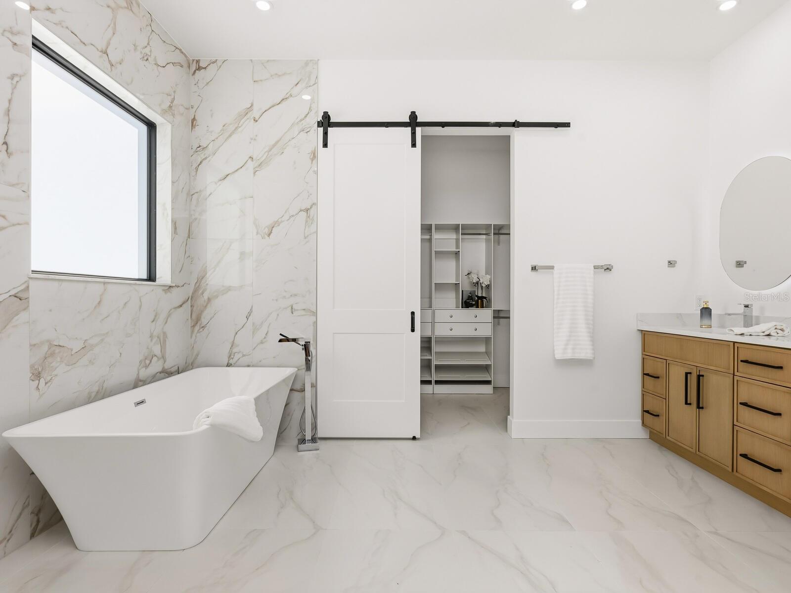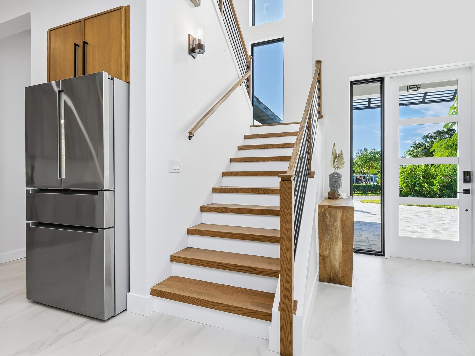 In the well-established Loma Linda Park neighborhood in Sarasota, this new construction, Divald Homes custom-built two-story home offers a blend of modern design and traditional elements. The home is ideally near downtown Sarasota, Siesta Key and Sarasota Memorial Hospital, with no deed restrictions or HOA fees. The home features four bedrooms and three baths, including a spacious primary suite on the main floor. The open-concept floor plan featuring a 24-by-48-inch modern floor tile throughout, hurricane impact sliding doors and windows offers a light-filled welcoming space ideal for entertaining. The main floor includes a gourmet kitchen, dining area, living room, private den/bedroom 4, primary suite with an ensuite bath and a dedicated laundry room. The chef's kitchen is a centerpiece, showcasing Bosch appliances, an oversized island with waterfall quartz countertop, and custom floor-to-ceiling full-overlay cabinetry in a beautiful honey-stained wood tone. The living room is highlighted by a striking tile accent wall with custom wood shelving and modern designed 42-inch linear electric fireplace. The living room opens seamlessly to the lanai, complete with an outdoor kitchen, including a gas grill, refrigerator and sink. You will also enjoy the pool with sundeck, oversized outdoor patio and a beautiful backyard with lush native plantings. A convenient pool bath offers direct access from the lanai and the private den. The dining area is elegant and inviting, featuring a statement iron chandelier and a wall of windows overlooking the backyard. Just off the kitchen, the main-floor primary suite serves as a private retreat with a luxurious en-suite bath featuring a marble stone accent wall, a large walk-in shower with seamless glass enclosure, a sculptural slipper tub, double vanity with quartz countertops, natural wood cabinetry, LED mirrors and a spacious walk-in closet with custom built-ins. The laundry room is conveniently near the oversized two-car garage with 12-foot ceilings, large windows for natural light and direct access to the side yard. Upstairs, an ornate wrought-iron and hardwood staircase leads to two additional bedrooms, a beautifully finished guest bath and a versatile flex room ideal for a game room, study or guest accommodations. This thoughtfully designed home offers refined finishes, flexible living spaces and an exceptional location, ideal for enjoying the Sarasota lifestyle.