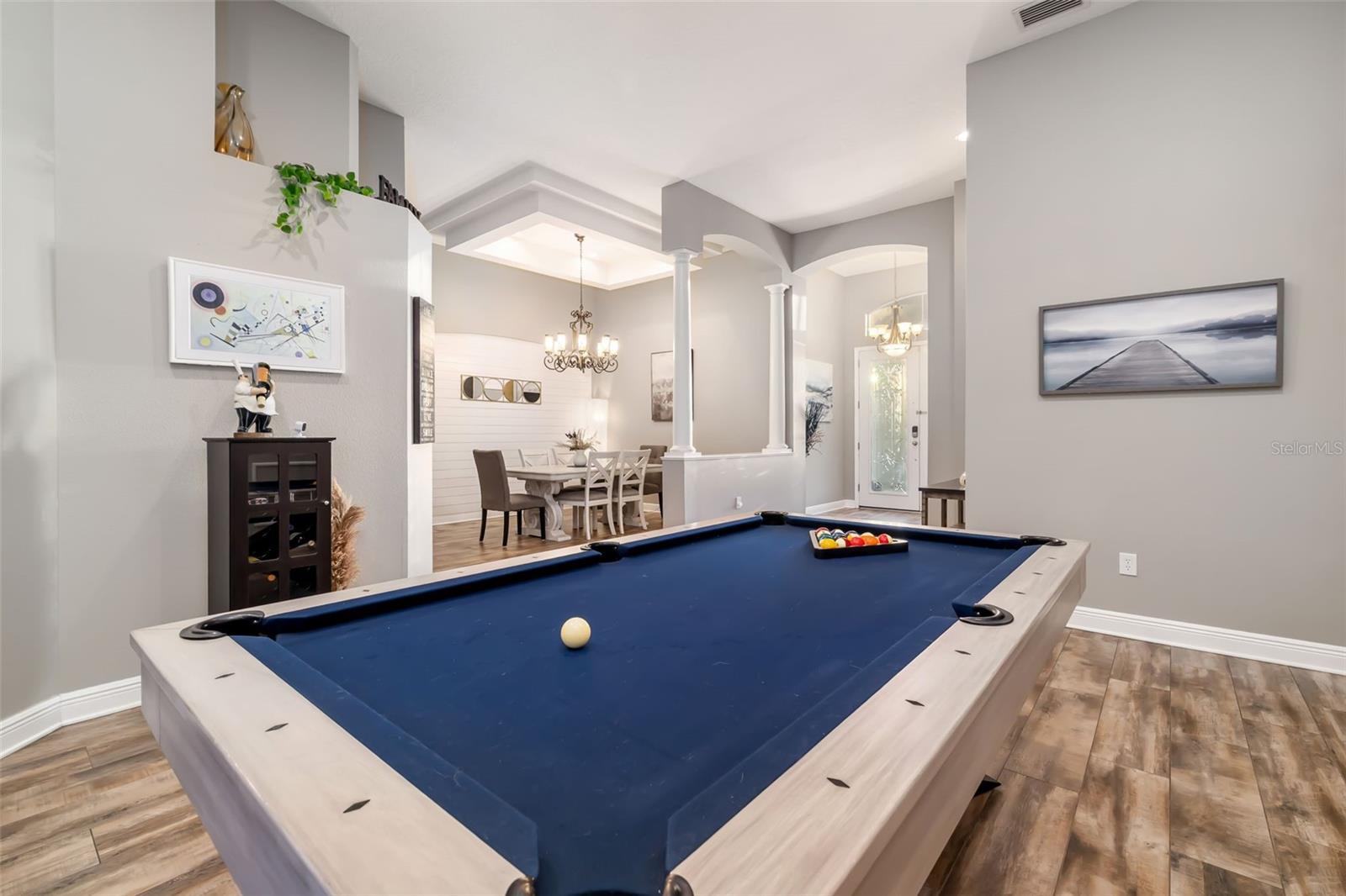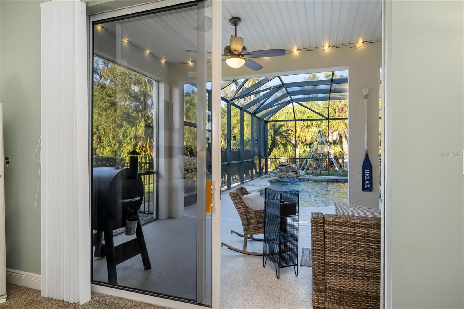 Set on more than one-third of an acre in sought-after Ancient Oaks, this spacious 4-bedroom plus den and bonus room (with closet), 3-bath pool home offers over 3,200 square feet of thoughtfully designed living space, and a 3-car garage.Timeless architectural details--including decorative moldings, columns, custom niches, and arched - transom windows--create a move-in-ready home filled with natural light. The kitchen opens seamlessly to the family room and features a center island, breakfast bar, pantry, and newly installed double oven and dishwasher, ideal for everyday living and entertaining. The primary suite serves as a relaxing retreat with dual walk-in closets, dual vanities, a garden tub, and separate shower. Multiple sliding doors throughout the home create a seamless connection between indoor and outdoor living spaces--perfect for entertaining or relaxing poolside. The screened lanai showcases a tranquil waterfall feature overlooking a natural preserve, and the fully fenced yard enhances privacy and outdoor enjoyment.Additional features/updates include a built-in sound system in the living room, dining room, and back patio - whole-house reverse osmosis system and water softener - solar panels - newly resurfaced pool deck and pool equipment - new carpet and beautiful plank tile throughout the home. Conveniently located near I-75, top-rated schools, golf courses, shopping, dining, medical facilities, and the expanding Parrish community with exciting new parks and retail.