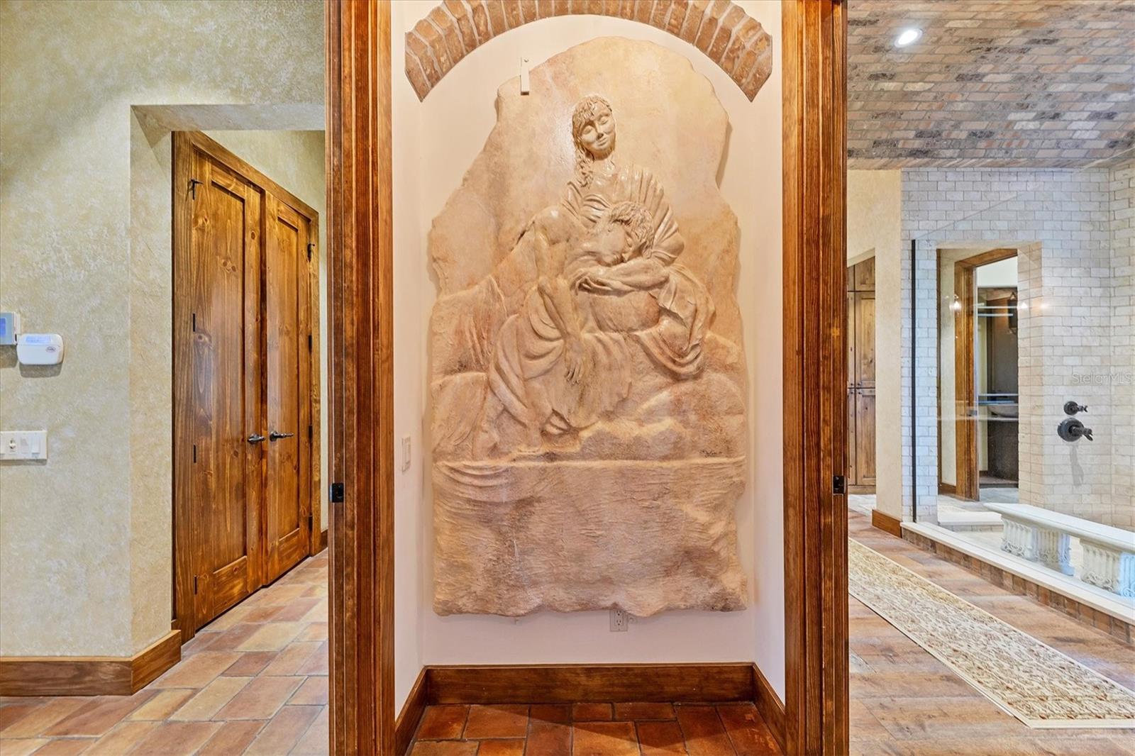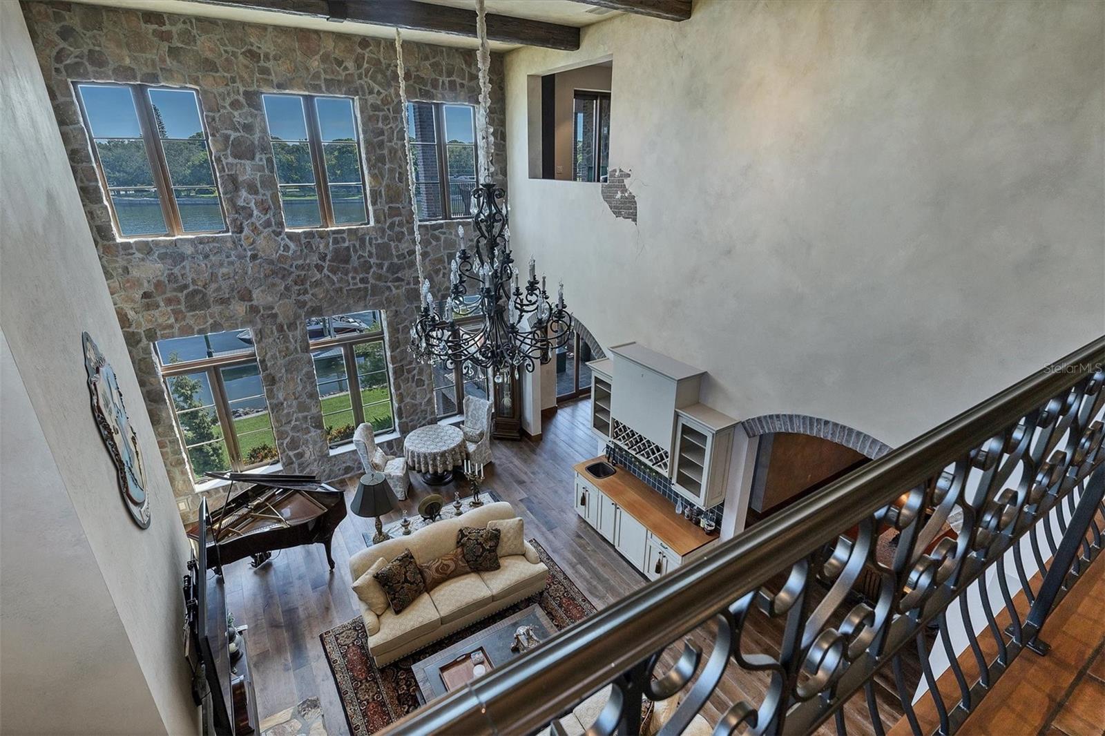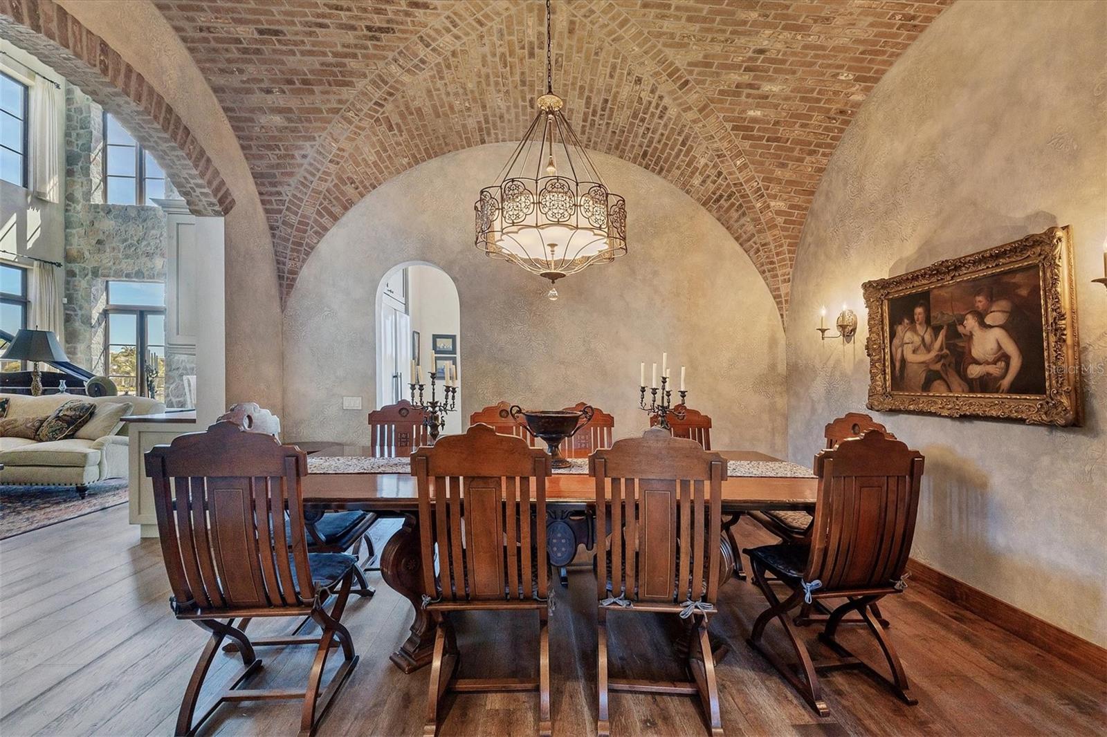House never flooded, including during Hurricanes Milton and Helene, and protected by a full house generator! Lavishly embellished with Old World authenticity, this exceptional waterfront estate evokes the grandeur of a 17th century Tuscan farmhouse. Custom built by John Cannon, the home is set on what was once Ringling's personal yacht basin, offering protected sailboat water, 180 feet of seawall, a private dock, two boat lifts, and a dedicated kayak lift platform, all framed by sweeping panoramic water views.From the moment of arrival, the level of craftsmanship is unmistakable. Walls are finished in aged plaster, hand made terra cotta floors have been acid washed and stained to reflect centuries of wear, and authentic frescoes and ceiling beams inspired by the Renaissance period add depth and character throughout. The great room provides a dramatic setting for entertaining with soaring 22 foot ceilings, a gas fireplace, and a wet bar accented by a hammered copper sink.The chef's kitchen is equipped with an Italian eight burner gas range and Brazilian soapstone countertops, while the dining room features a rare brick vaulted ceiling that reinforces the home's Mediterranean soul and creates a truly immersive dining experience. The primary suite is a romantic retreat with his and hers walk in closets and a spa like bath wrapped in rich wood and stone finishes.Additional spaces include two to three guest bedrooms, dual offices, a bonus room, and a wine room. A true 2,500 square foot ground level garage offers tandem parking for two to four plus vehicles, making it a dream for car collectors.Outdoor living is exceptional, with stone and wrought iron terraces, an outdoor kitchen and bar on the main level, all designed to capture natural breezes and expansive water views. The newly completed infinity edge pool and spa create a striking visual effect, with the water appearing to seamlessly spill into the bay, while two strategically placed fire pits add warmth and dramatic ambiance after sunset.This storybook residence is ideally located near Sarasota's beaches, dining, and cultural attractions, offering a rare blend of architectural artistry, privacy, and timeless elegance.