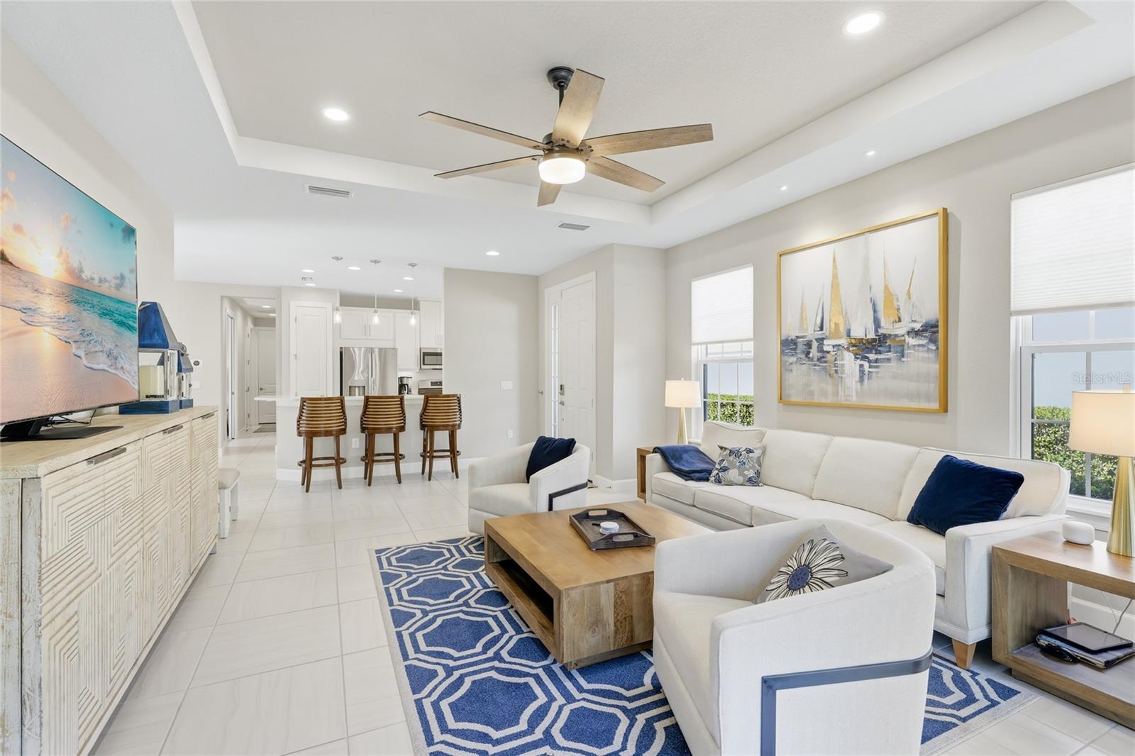 Located in the highly sought-after Bellacina by Casey Key, this beautifully maintained 2 bedroom plus den, 2 bathroom home offers just under 1,700 square feet of thoughtfully designed living space and a serene natural setting backing to the Legacy Trail. A paver driveway and extended screened lanai enhance both curb appeal and outdoor living, with the driveway and lanai pavers recently sealed for added peace of mind. Lawn care is included in the HOA, allowing for low-maintenance living. Inside, the open-concept floor plan is filled with natural light and features tile flooring throughout the main living areas, tray ceilings, recessed lighting, and ceiling fans that add both style and comfort. The spacious kitchen is designed for everyday living and entertaining, offering white cabinetry, quartz countertops, stainless steel appliances, a gas range, and a large center island with bar seating that overlooks the living and dining areas. Sliding glass doors lead seamlessly to the extended screened lanai, creating an ideal indoor-outdoor connection and showcasing peaceful wooded views. The primary suite serves as a relaxing retreat with a tray ceiling and views of the greenery beyond. The en-suite bathroom features dual vanities, ample storage, and a walk-in shower. A guest bedroom and full bath provide privacy for visitors, while the den offers flexible space ideal for a home office, media room, or hobby area. The extended screened lanai is perfect for dining, relaxing, or entertaining while enjoying the tranquil natural backdrop and direct access to the Legacy Trail just beyond the backyard. Bellacina by Casey Key offers resort-style living with amenities including a heated lagoon-style pool and spa, clubhouse with gathering rooms, fitness center, tennis, pickleball, bocce, dog park, and scenic walking trails. All of this is ideally located just minutes from Nokomis Beach, the Legacy Trail, golf courses, shopping, dining, cultural venues, and the vibrant downtowns of Sarasota and Venice. This extraordinary home offers not just a residence, but a lifestyle. **THIS PROPERTY QUALIFIES FOR A 1% LENDER INCENTIVE IF USING PREFERRED LENDER. INQUIRE FOR MORE DETAILS.**