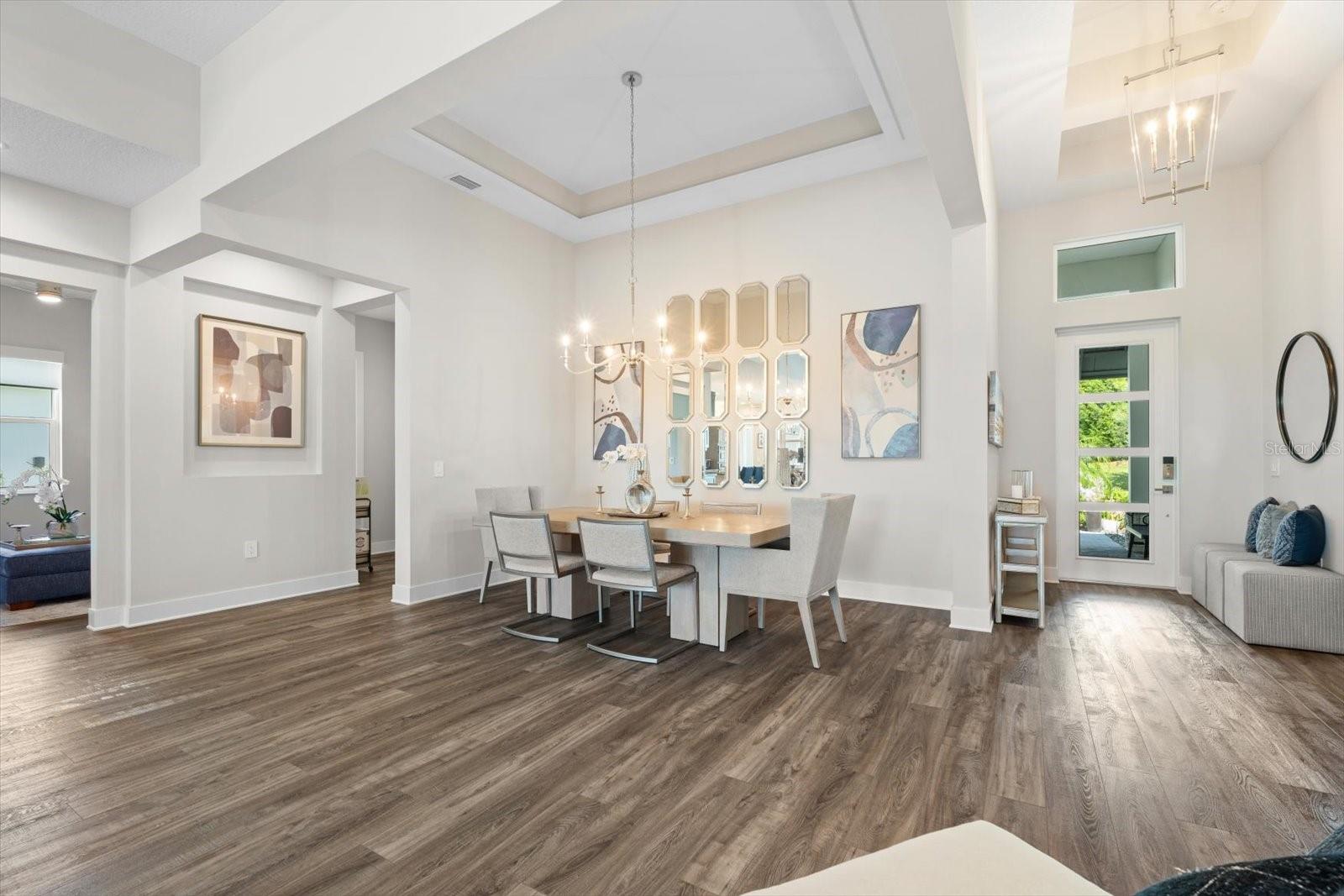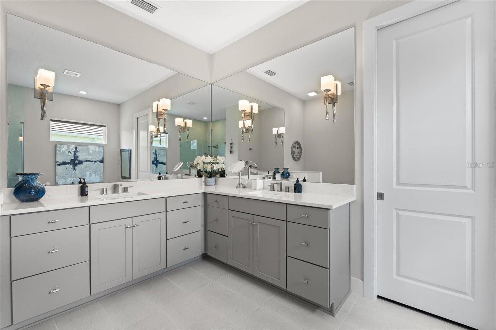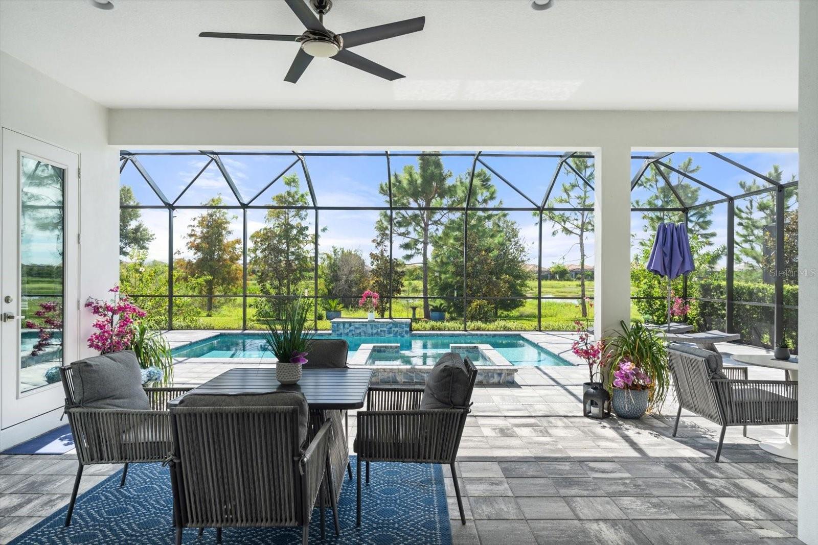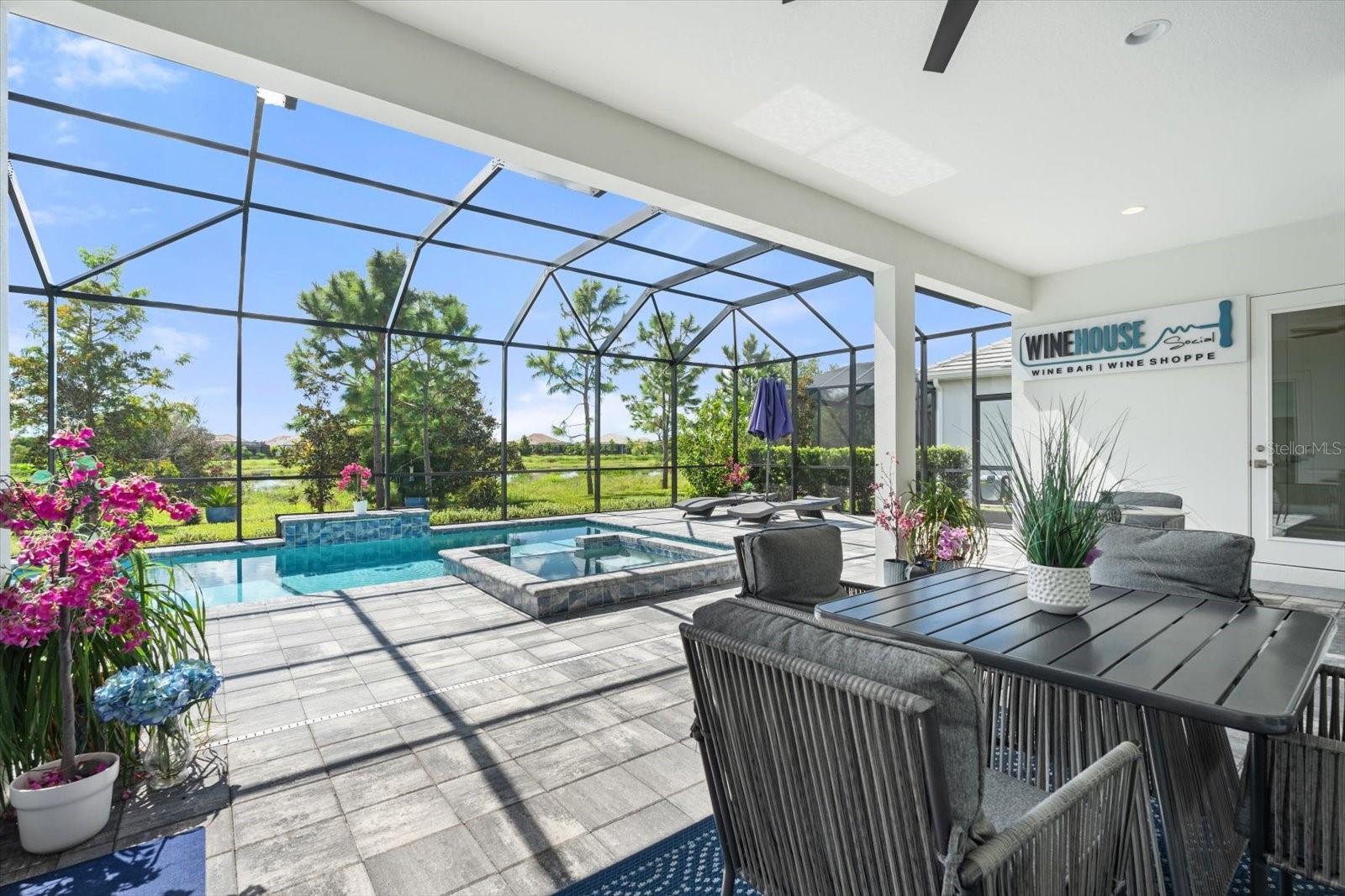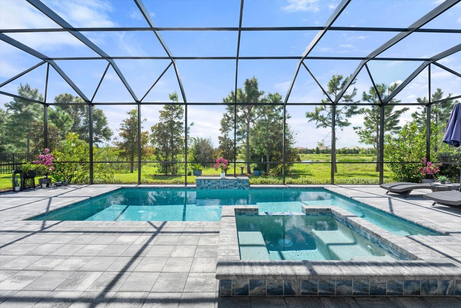 This home has many upgrades to consider. Lowest price for the size of the lot on a 65' lot collection & Larger than most lots on preserve. 3 Bedrooms, Plus Den/Office. 2 full baths, and 1 pool bath. Comes With FULL impact glass windows and doors throughout, Heated Pool with Spa, water feature and lights. Full security and cameras, Customized kitchen with extended solo island, added kitchen window over sink, added pool bath, two added exterior doors to lanai and pool area from kitchen and master, extended drive way, and no houses across the street in the front. 3 Bedrooms, Plus Den/Office.2 full baths, and 1 half pool bath. FULL impact glass windows and doors throughout, Heated Pool with Spa, water feature and lights. Larger than most lots on preserve. Full security and cameras, Customized kitchen with extended solo island, added kitchen window over sink, added pool bath, two added exterior doors to lanai and pool area from kitchen and master, extended drive way, and no houses across the street in the front. Custom designed main bath with dual vanities, half privacy for WC, oversized soaking tub, tile in both showers to the wall, upgraded tiles, counters, and full house luxury vinyl. (With exception of baths and laundry). custom laundry cabinets with farm house sink (great for dog baths). Kitchen with Zline appliances, and dual wine fridge. Custom main closet with drawers and shoe shelves, upgraded kitchen pantry shelves. Built ins in living room, added LED hookups, Smart house...and more. Note: No outside kitchen but there is room to add. Water filter whole house, electrical plug for EV Please note viewing this home there are active cameras inside the home. The Community has many social activities and great pool, fitness center club house and more. Come tour for yourself. All information to be verified with tax records, HOA and own buyer's due diligence. Required CDD verify amount, and HOA contributions at closing $750 CC and $2500 amenity fee. (lanai drapes in photos removed as not allowed by HOA)