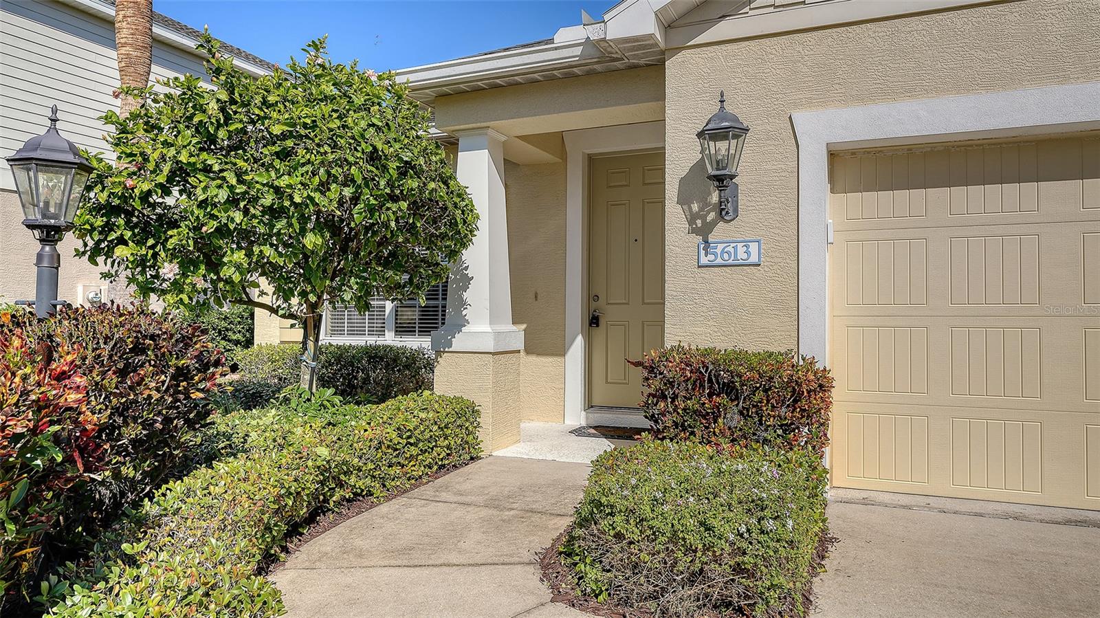Exterior: Hurricane Shutters, Lighting, Sidewalk, Sliding Doors