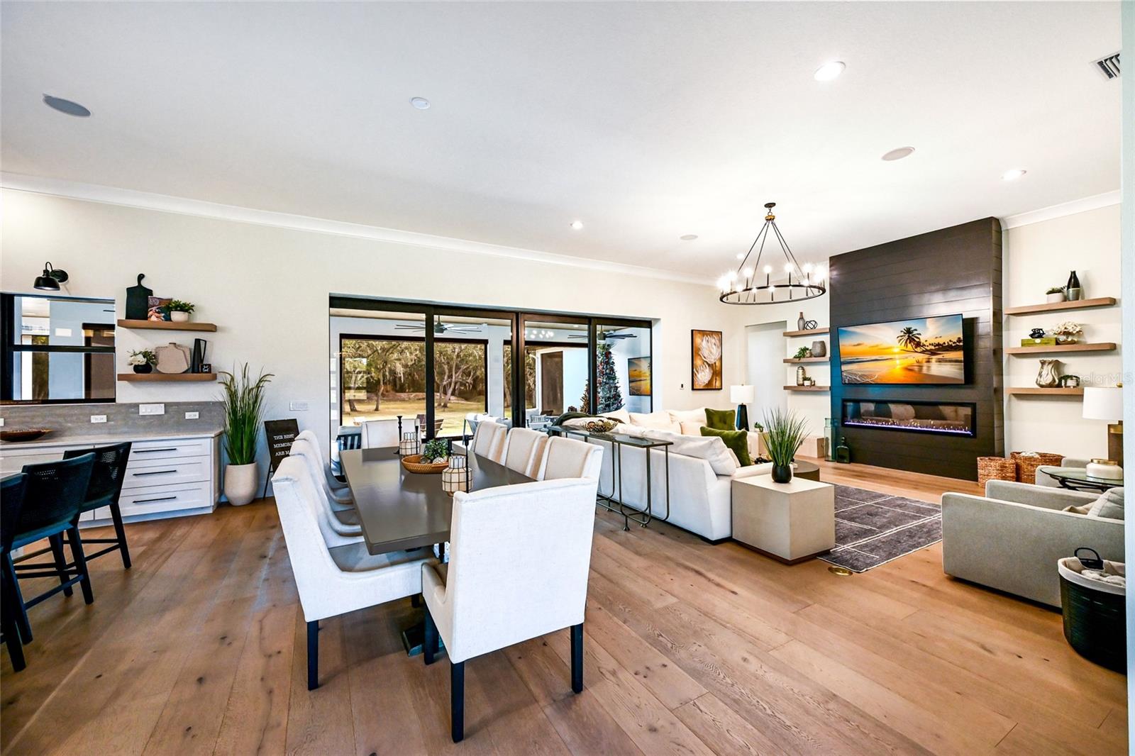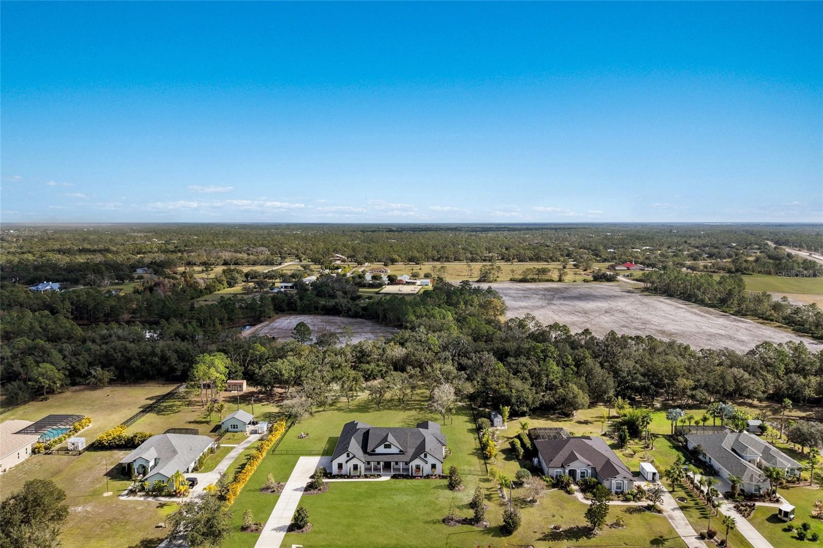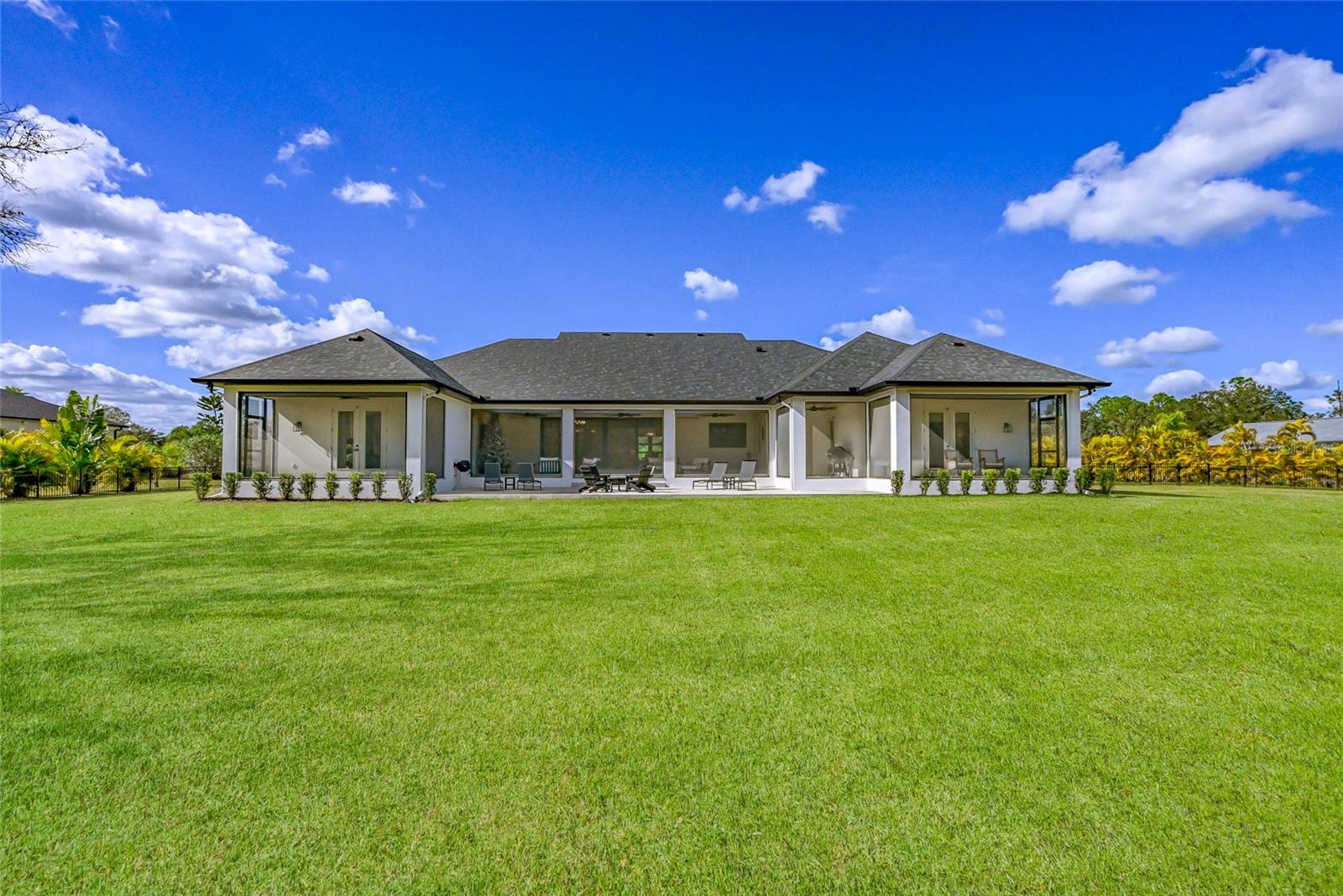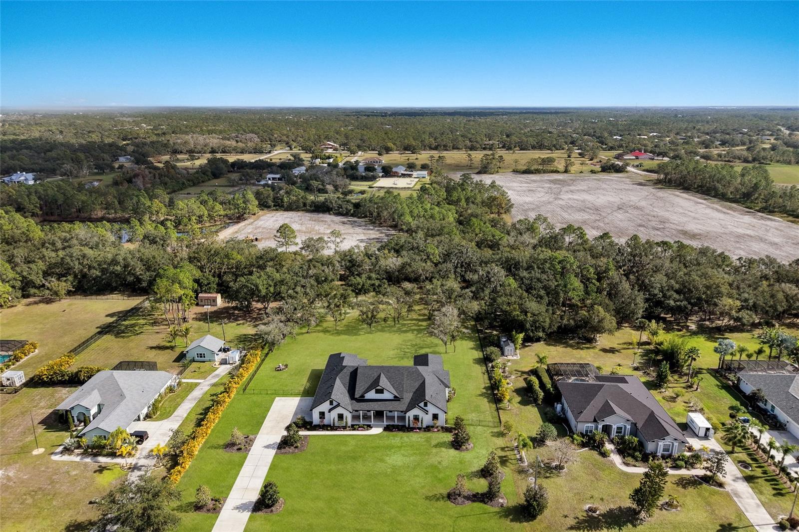 Welcome to Magnolia Oaks, a newly built modern farmhouse estate set on more than 1.7 acres of fully fenced, picturesque grounds in the heart of Lakewood Ranch. Framed by majestic oak trees and expansive open skies, this exceptional property offers a rare blend of space, privacy, and refined craftsmanship--an inspired blank canvas for elevated living. Spanning over 3,900 square feet, the thoughtfully designed residence features four bedrooms, four full baths, a private office, and a versatile bonus room, all wrapped in timeless farmhouse elegance. Soaring 12-foot ceilings grace the main living areas, enhancing the expansive open-concept floor plan with an abundance of natural light and an inviting atmosphere ideal for both everyday living and entertaining. At the heart of the home, the chef's kitchen is a true showpiece--equipped with a professional-grade cooktop, dual ovens, oversized refrigerator, elegant walk-in pantry, and a stunning oversized island with sink, perfectly designed for gatherings, conversation, and culinary creativity. Designed for both beauty and peace of mind, the home is outfitted with impact-rated windows and sliding glass doors throughout, and is further enhanced by a whole-house generator, providing year-round security, comfort, and uninterrupted living. Indoor-outdoor living takes center stage with four inviting porches, including an extraordinary 1,000+ square-foot covered back lanai featuring a custom roll-up screening system for year-round enjoyment. Additional private porches extend from the primary suite and in-law suite, while the oversized front porch offers the perfect setting for sunset views and peaceful moments beneath the oaks. Each bedroom is designed as a private retreat, with three en-suite bedrooms providing exceptional comfort and privacy for family and guests. The flexible bonus room--currently utilized as a gym--can easily transition into an additional bedroom, nursery, office, or dream closet. A private in-law suite with its own porch offers independence and comfort, ideal for extended family or visitors. Completing the residence is an oversized 939-square-foot three-car garage, providing ample space for vehicles, storage, and hobbies. Outdoors, Magnolia Oaks truly comes alive. The beautifully landscaped grounds provide endless opportunities to roam, entertain, or simply relax in the shade of mature oak trees. The property also allows for the addition of a casita or guest house, creating exciting possibilities for future expansion. More than just a home, Magnolia Oaks is a lifestyle--a serene, private oasis where you can stretch out, breathe deeply, and create something truly special. This is modern farmhouse living at its finest.