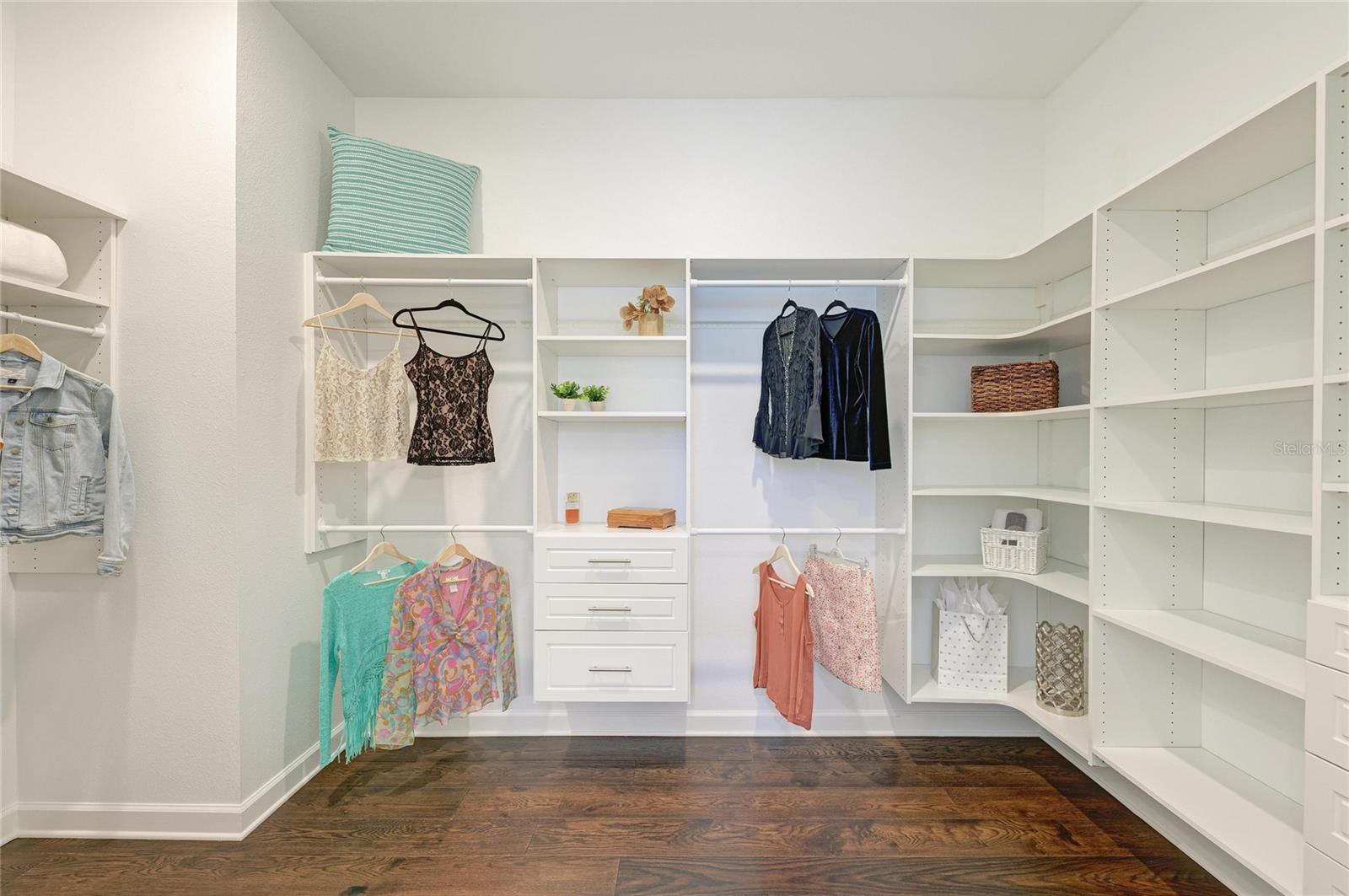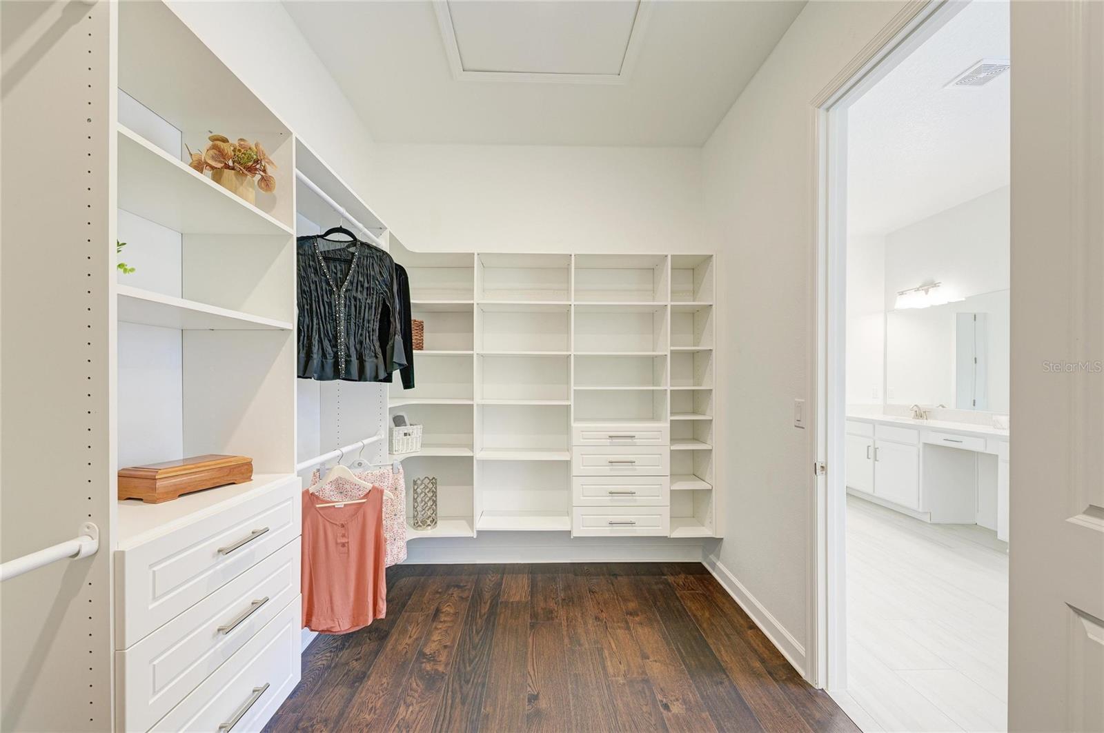 Opportunity to bypass the build process and start living a life well deserved life! Welcome to Prosperity Lakes, where this better-than-new Eventide floor plan delivers single-story living with exceptional upgrades throughout. Featuring 3 bedrooms, 3 full baths, and a rare three-car garage, this home is thoughtfully designed for modern comfort and flexibility.The open-concept layout seamlessly connects the kitchen, dining, and family room, creating a bright, inviting space that opens to a private screened-in lanai--perfect for relaxing or entertaining. A versatile flex room adds functionality, while all bedrooms are privately situated, including a lavish owner's suite with a beautifully customized walk-in closet and spa-like bath.This home truly shines with its extensive upgrades, including high-end appliances--a Samsung Bespoke refrigerator, LG dishwasher, and Empava gas range--along with crown molding, a porcelain kitchen backsplash, luxury vinyl plank flooring in bedrooms two and three, and luxury wood plank flooring in the primary suite. The laundry room is fully outfitted with cabinetry above the Samsung top-load washer and dryer, additional base cabinetry, and a granite countertop. Extended shelving in every closet adds smart storage, and the custom primary closet elevates everyday living.Car enthusiasts and hobbyists will appreciate the insulated garage doors, mini-split AC system in the garage, and abundant overhead storage, making the three-car garage both functional and comfortable. The home has also been recently painted inside and out, offering a fresh, move-in-ready feel.Prosperity Lakes offers resort-style amenities including a clubhouse, fitness center, resort pool with waterslides, pickleball, tennis, bocce ball, playground, and walking trails. Additional 55+ perks include a full-service kitchen and bar, yoga studio, and curated event programming designed for an active, social lifestyle.Luxury, upgrades, and lifestyle--this one truly checks every box.