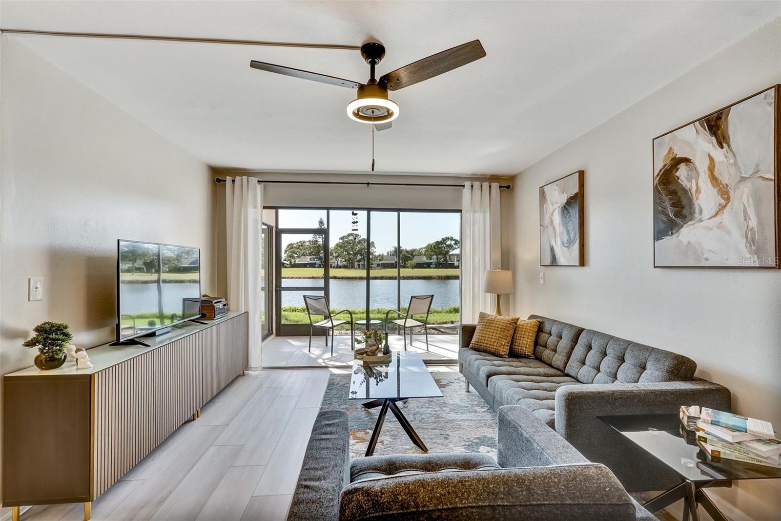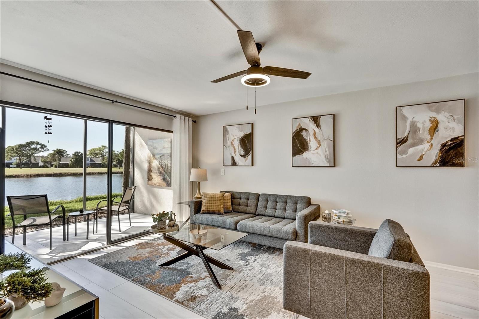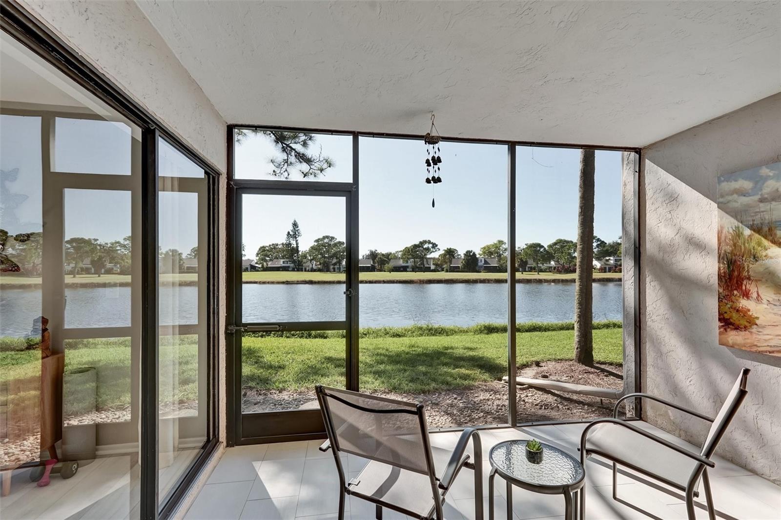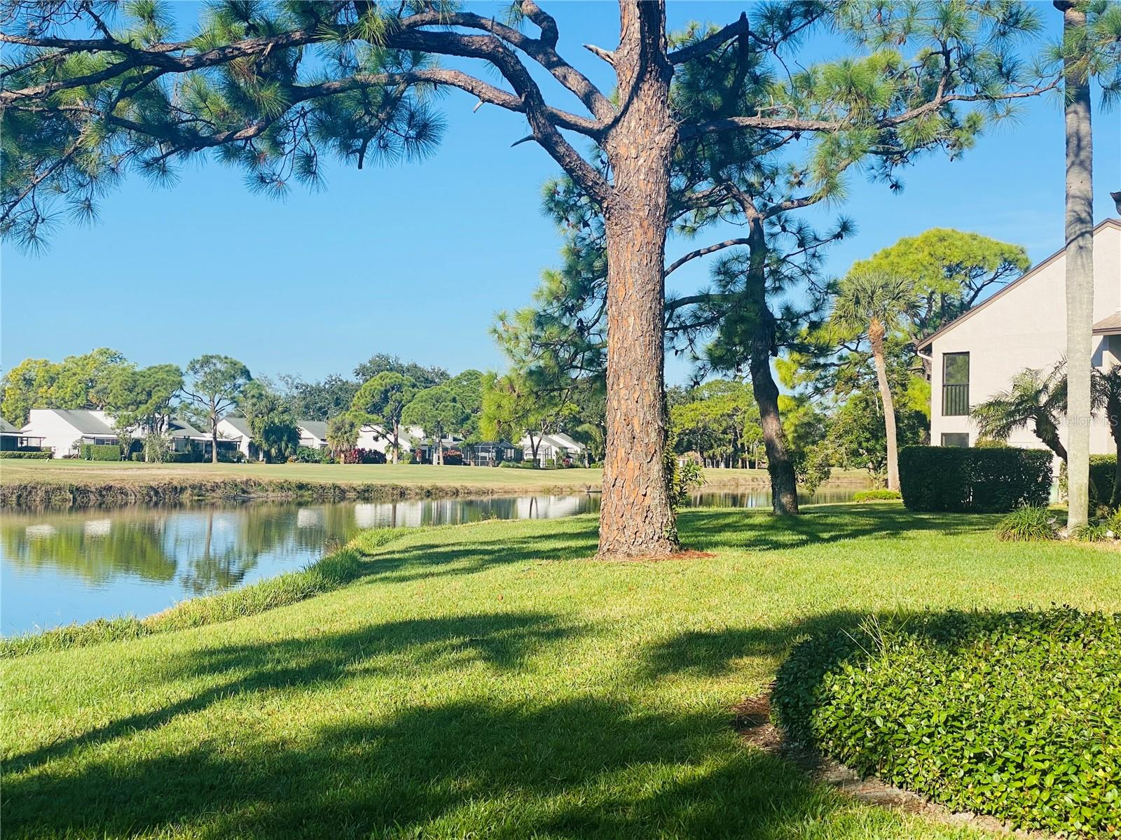 Welcome to the Meadows. This 1 bedroom, ground floor unit sits among mature oaks with beautiful lake and golf course views. This spacious, light-filled condo features an open floor plan and a nice size kitchen with granite countertops, a breakfast bar, stainless steel appliances, sparkling glass mosaic tile backsplash and a large bedroom with a walk-in closet. Watch the sunset over the lake from your covered patio. Your own Laundry closet prevents you from having to go to the laundromat. Plus, if you ever feel the need to get out and "go do something" you won't have to go far, as you'll be surrounded by golfing, near shopping, dining and more at The Meadows Village, The Mall at University Town Center and University Parkway and just a short drive to I-75, restaurants, parks, entertainment, recreation, museums, downtown Sarasota and beautiful gulf beaches. Opportunity to own in beautiful community with low HOA Fees. THIS is the Sarasota lifestyle.