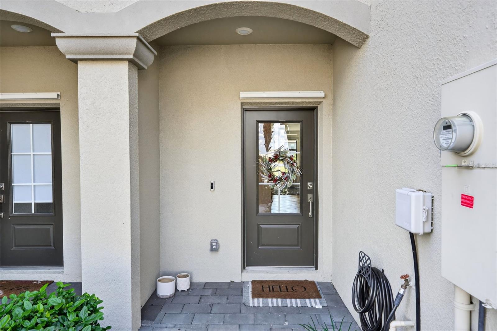Exterior: Private Entrance, Sidewalk, Sliding Doors, Sprinkler Metered