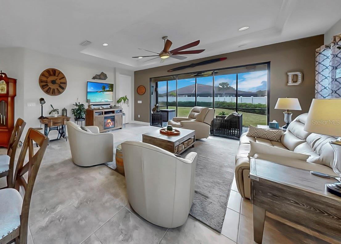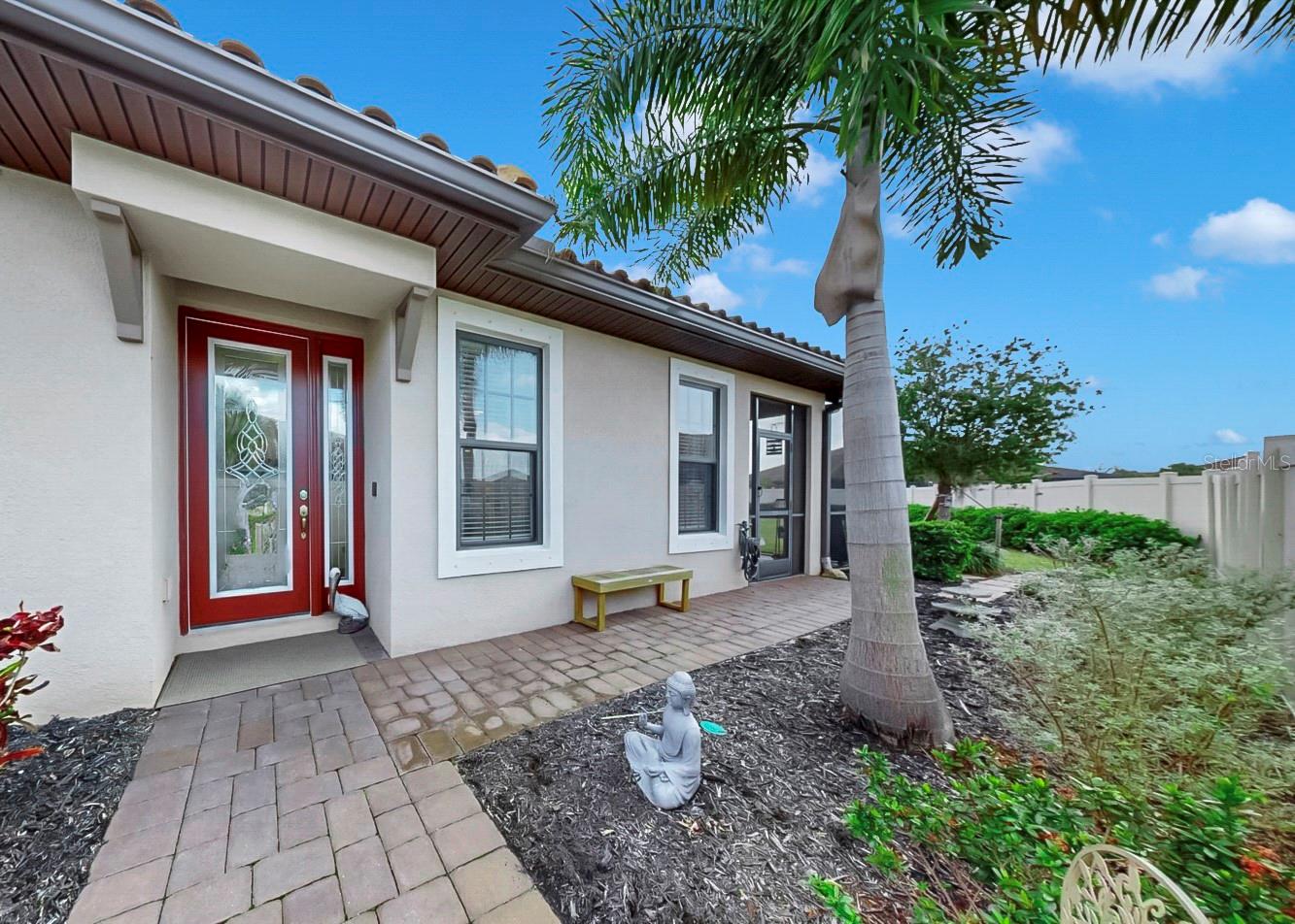 You won't want to miss this beautifully upgraded Sandpiper Villa in Esplanade at Artisan Lakes, where thoughtful design, elegant finishes, and effortless Florida living come together seamlessly. Priced to sell, this 2-bedroom plus flex room villa offers a desirable split floor plan that provides both privacy and functionality. The versatile flex room is ideal for a home office, den, or a comfortable third sleeping space for visiting guests--making the home perfect for a seasonal getaway or a full-time residence. Custom built-ins in both bedrooms add style and smart storage, while tray ceilings with crown molding and 8' doors throughout enhance the open, airy feel. A leaded-glass front door creates a warm and welcoming first impression. At the heart of the home, the open kitchen flows naturally into the living area--perfect for everyday living and entertaining alike. A separate dining space offers a more formal setting, while the expansive quartz countertop invites casual meals, conversation, and gatherings. The kitchen is beautifully appointed with stainless steel appliances, a gas cooktop, an upgraded large sink, and thoughtful finishes throughout. Smart lighting and dimmer switches allow you to easily set the mood, whether hosting guests or enjoying a quiet evening at home. Both bedrooms feature private en-suite bathrooms, offering comfort and convenience for owners and guests. The primary suite is a relaxing retreat with a walk-in shower featuring upgraded tile and a frameless glass enclosure. The second bedroom, tucked privately at the back of the home, includes its own en-suite with a large soaking tub--ideal for unwinding. A conveniently located half bath is perfect for visitors, and the adjacent laundry room offers built-in cabinetry and a sink for added functionality. Seamless indoor-outdoor living awaits as triple sliding glass doors open from the living area to the lanai, where you can relax or entertain while enjoying a larger-than-average villa lot with a private, landscaped backyard. A paver walkway with hard-wired lighting extends along the side of the home to the lanai, adding both elegance and easy access--perfect for embracing the Florida lifestyle. Additional highlights include a garage with epoxy flooring and built-in shelving, a tankless water heater, and gutters for added peace of mind. This maintenance-free villa allows you to truly enjoy resort-style living, with the HOA covering cable, internet, roof, and exterior painting--so you can spend more time enjoying your home and less time on upkeep. Esplanade at Artisan Lakes offers resort-style amenities, including two clubhouses with beautifully designed social and activity spaces. Residents enjoy two resort-style pools, a resistance pool, two spas, a state-of-the-art fitness center, movement studio, and outdoor recreation such as tennis, pickleball, bocce ball, and cornhole. Additional highlights include a fire pit, multiple lounging areas, both small and large dog parks, and a playground. A full-time lifestyle manager curates events, clubs, and activities, creating a vibrant community atmosphere. Conveniently located near I-75 and I-275, this home provides easy access to Tampa, St. Petersburg, Bradenton, Sarasota, airports, dining, shopping, golf, and the award-winning Gulf Coast beaches. Beautifully maintained, thoughtfully upgraded, and located in one of the area's most desirable maintenance-free communities--this home is truly a must-see! *Attached video and 3D tour*