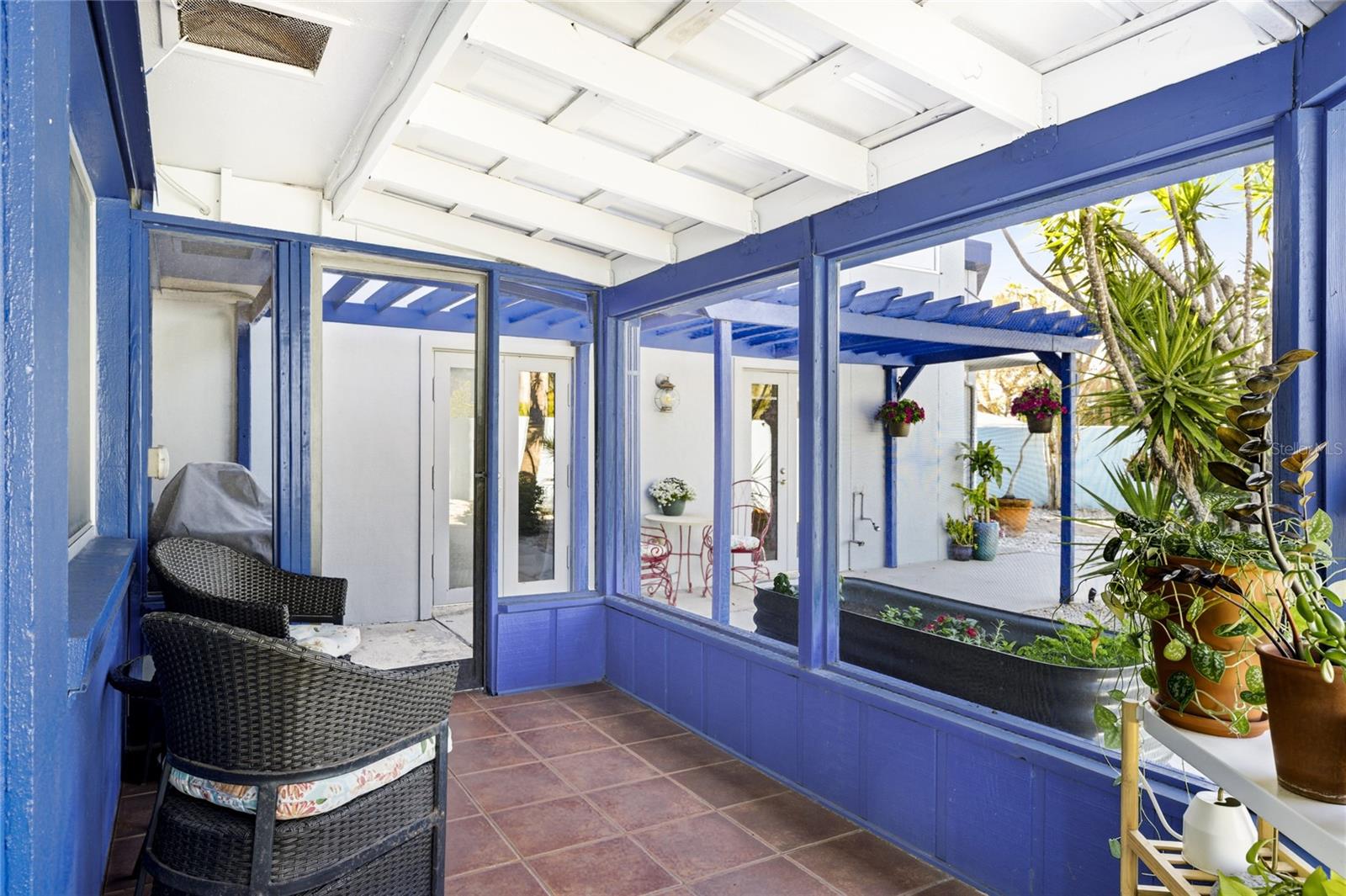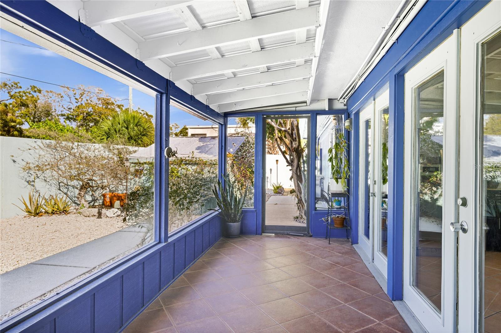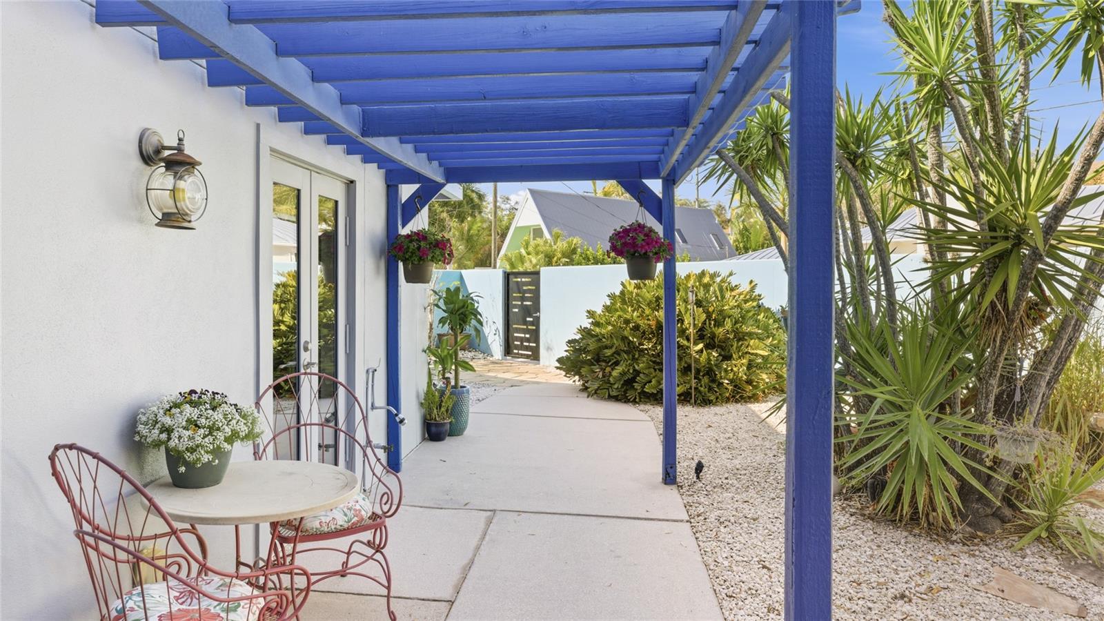 Tucked just moments from Hudson Bayou and Sarasota Bay, this gated mid-century modern compound offers a rare opportunity to own a meaningful piece of Sarasota's architectural and artistic history while embracing a lifestyle that feels both inspired and entirely livable. Originally built in 1954 as a Ruth Richmond design and later reimagined by nationally recognized abstract artist Steve McCallum, the property blends authentic mid-century lines with bold creative character. Set behind walls and framed by lush tropical landscaping, the home unfolds as a private retreat within one of Sarasota's most desirable cultural corridors. A paver drive leads to the striking architectural faade, clerestory windows, and modern courtyard entry. Inside, natural light pours through high transom windows and expansive sliding glass doors, highlighting the openness and warmth that define true mid-century design. The main residence offers three bedrooms and two full baths, with an open living and dining layout that flows effortlessly to the courtyard pool. Clean lines, tile flooring throughout, and thoughtful updates create a space that feels timeless yet comfortable. The private courtyard pool anchors the compound, surrounded by palms, bamboo, and multiple seating areas designed for relaxed evenings or intimate gatherings. The setting offers privacy without sacrificing proximity to downtown and the bayfront. The studio structure truly elevates the estate. Measuring approximately 56 by 32 feet with soaring 16-foot ceilings, it was purpose-built for large-scale creative work and now offers remarkable flexibility. With its own private entrance and a dedicated bathroom, the studio can function independently as a guest retreat, executive workspace, gallery-style studio, or wellness space. The space also includes a walk-in closet area that currently functions as both a walk-in closet and laundry room, adding additional convenience and functionality. An interior hallway also connects it to the main home, allowing seamless use for multigenerational living or extended guests while maintaining the option for complete privacy. For several years, the studio operated as a curated, owner-hosted guest experience, earning more than 200 five-star reviews and establishing itself among Sarasota's earliest luxury short-term stays. That history speaks to its design appeal, comfort, and versatility. In addition to the main living spaces, the property also features an approximately 200 square foot storage room connected to the studio. This flexible area can easily function as an extension of the studio when the roll-up door is opened, creating additional usable space for creative work, storage, or studio expansion. Offering 2,478 square feet under air across both structures, this property delivers architectural authenticity, creative scale, and compound-style living just minutes from downtown dining, galleries, and Sarasota's renowned arts scene. This is a mid-century modern lifestyle property for those who value design, flexibility, and the freedom to shape a home around how they truly want to live. **THIS PROPERTY QUALIFIES FOR A 1% LENDER INCENTIVE IF USING PREFERRED LENDER. INQUIRE FOR MORE DETAILS.**
