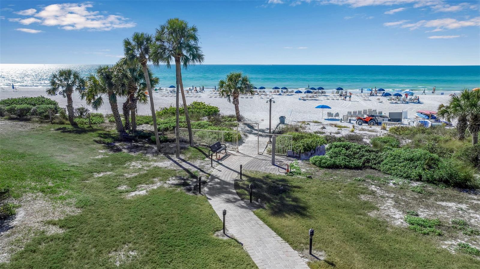 Experience effortless beachfront living from this turnkey-furnished, second-floor condominium with elevator access and sweeping views of the turquoise waters of the Gulf of Mexico and the newly updated pool area. Enjoy morning coffee to the sound of the surf and spectacular sunsets with uninterrupted shoreline views. BEST OF ALL - THIS UNIT SUSTAINED NO HURRICANE DAMAGE!Located at Midnight Cove, a highly sought-after gulf-to-bay community on Crescent Beach, this spacious 2-bedroom, 2-bath residence offers a welcoming coastal-style foyer and an open, updated kitchen with white cabinetry, solid surface counters, closet pantry and a breakfast bar with seating for four. The living and dining areas open to a screened lanai featuring chaise lounges, a dining table, and bar counter--perfect for relaxed indoor-outdoor living.The primary suite includes a large walk-in closet and an updated ensuite bath with new cabinetry, countertops, fixtures, and a glass-enclosed shower. A separate in-unit laundry room provides added storage, while the guest bedroom and second bath comfortably accommodate family and friends.Designed for low-maintenance living, Midnight Cove offers resort-style amenities including two pools, private beach access, tennis courts, boat dockage, fitness room, barbecue areas, and gated entry. An onsite, professionally managed rental office makes ownership effortless, with many repeat guests and strong rental demand.Ideally located just minutes from Siesta Key Village's shops and dining, and within easy reach of Sarasota-Bradenton International Airport and Tampa International Airport, this property is perfect as a primary residence, vacation home, or income-producing investment. Extensive rental history available. Ideal for a 1031 exchange.