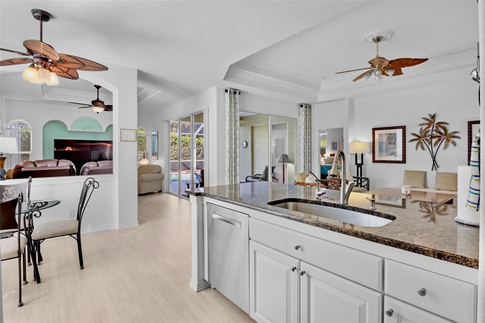Welcome to this impeccably maintained residence, located behind the gates of the highly sought-after Turtle Rock community in Palmer Ranch, where exceptional amenities meet natural beauty. Residents enjoy access to a community pool, tennis, pickleball, and basketball courts, along with miles of scenic walking and biking trails offering picturesque vistas throughout this secure, gated neighborhood. This thoughtfully UPDATED HOME offers 3 bedrooms and 2 bathrooms and is currently configured as a 2-bedroom plus den, providing flexibility for a home office or guest accommodations, in addition to a separate TV/flex space room. Pride of ownership is evident throughout, with approximately $180,000 in improvements completed over the years to enhance comfort, efficiency, and peace of mind. Significant upgrades include a NEW ROOF ($39,323.00 )(2023), HURRICANE -IMPACT double-pane windows ($9,709.00) (2017) for improved energy efficiency, a Storm Smart hurricane curtain protecting the lanai sliders ( $2,290.00) , complete home repiping, a new hurricane-rated garage door, an epoxy-finished garage floor ($3,910.00) , and a WHOLE HOUSE GENERATOR SYSTEM ($26,596.00). Additional features include enhanced attic insulation for energy savings ( $3,790.00) and a natural gas connection, as Turtle Rock is a natural gas community, a 2 ZONE AC SYSTEM for additional energy savings, new water heater (2020) .The open floor plan is highlighted by luxury vinyl flooring throughout, creating a clean, modern aesthetic. The kitchen is equipped with stainless steel appliances and granite countertops, making it ideal for both everyday living and entertaining,including a reverse osmosis system under kitchen sink ( $1895.00), and the list goes and on... (Complete list available upon request) . Step outside to your own private and tranquil retreat, featuring a pool and spa ( with a brand new pool pump ($2197.00)(2025) surrounded by mature, updated landscaping that provides exceptional privacy. The location is truly the icing on the cake--just minutes from excellent dining, shopping, and world-class entertainment. The highly sought-after Legacy Trail is just around the corner, and the sugar-sand beaches of Siesta Key are only a short drive away. Schedule your private showing today--this exceptional home and lifestyle opportunity will not last.