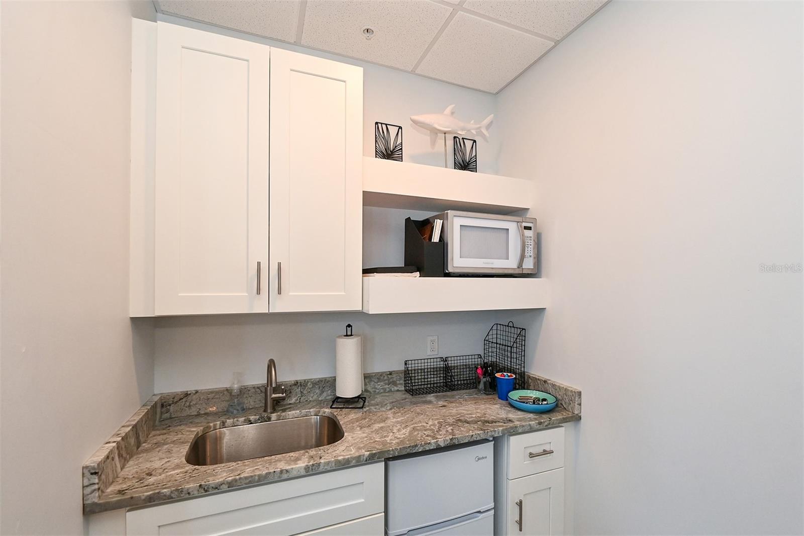 LIVE-WORK-PLAY! This unique condo is ready to go. Penthouse style 1-2BR/1.5BA is beautifully finished. Wood cabinets with pull outs in the kitchen with Granite counters. Very open floor plan with luxury vinyl throughout. Tankless water heater, main bath offers a huge walk-in shower, undercabinet lighting, dual sinks, toilet with bidet. Presently the office area (2nd Bedroom) has a separate door with kitchenette and its own bathroom. This is zoned residential/commercial, so no more driving to work. Views of Shakett Creek, 2 pets allowed any size. The complex is located on the water and offers elevators, a heated pool/spa, exercise room, conference room, 2 assigned parking but use of 9 parking spaces. This can be combined with the unit downstairs (same zoning) for a Total of 4,990 square feet. Seeing is believing.