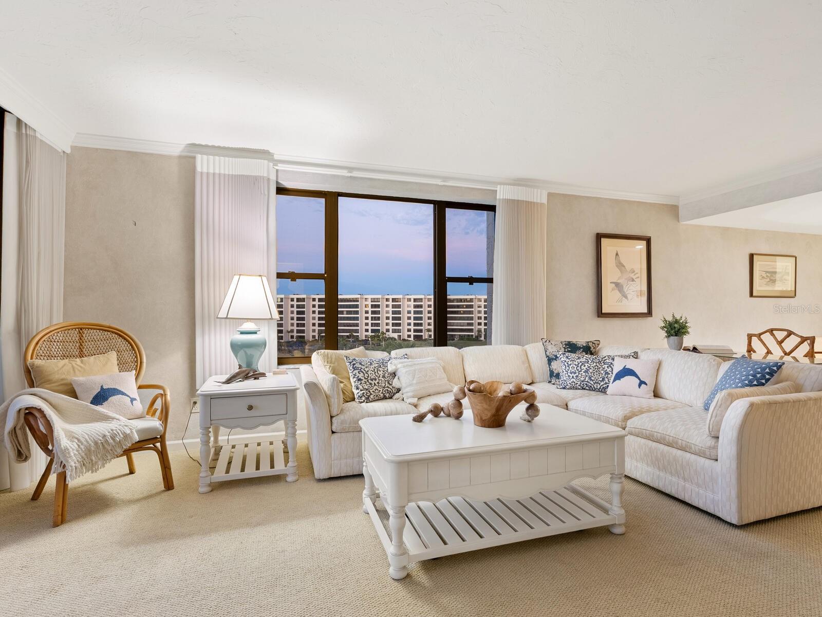 In sought-after Gulf & Bay Club on Siesta Key, this condominium offers the ideal blend of resort-style living and coastal elegance, near the world-renowned quartz sands of Siesta Key Beach. This fifth-floor end unit features two generously sized bedrooms and two full baths. The layout includes a private en-suite bath off the primary bedroom, providing added privacy and convenience for owners. The expansive living and dining area creates an inviting space for relaxing or entertaining, while large sliding glass doors open to an enclosed lanai showcasing breathtaking beach and sunset views. This seamless indoor-outdoor connection allows you to enjoy sights and sounds of the shoreline year-round. The kitchen offers a blank canvas for new owners to customize finishes, design and functionality to suit their personal style. This condominium presents an exceptional opportunity to create a personalized beachfront escape in a spectacular setting. Set within one of the island's prestigious gated communities, residents enjoy an unmatched lifestyle surrounded by lush tropical grounds and exceptional amenities. Gulf & Bay Club features three swimming pools, including a beachfront pool with sweeping Gulf views, a well-appointed clubhouse and a welcoming social atmosphere. The main clubhouse offers a library, bar, pool table, and multiple TVs, while the state-of-the-art fitness center includes strength training equipment, cardio machines, and space for yoga and stretching. Outdoor recreation is abundant with eight tennis courts, including a Har-Tru court, as well as basketball, racquetball, pickleball and shuffleboard courts. Additional highlights include scenic walking paths, a barbecue and picnic area, and a charming picnic island, ideal for gathering with friends and family. Whether as a full-time residence, seasonal retreat or investment opportunity, this Gulf & Bay Club condominium delivers the ultimate Siesta Key lifestyle, combining premier amenities, an unbeatable beachfront setting and relaxed sophistication of island living.