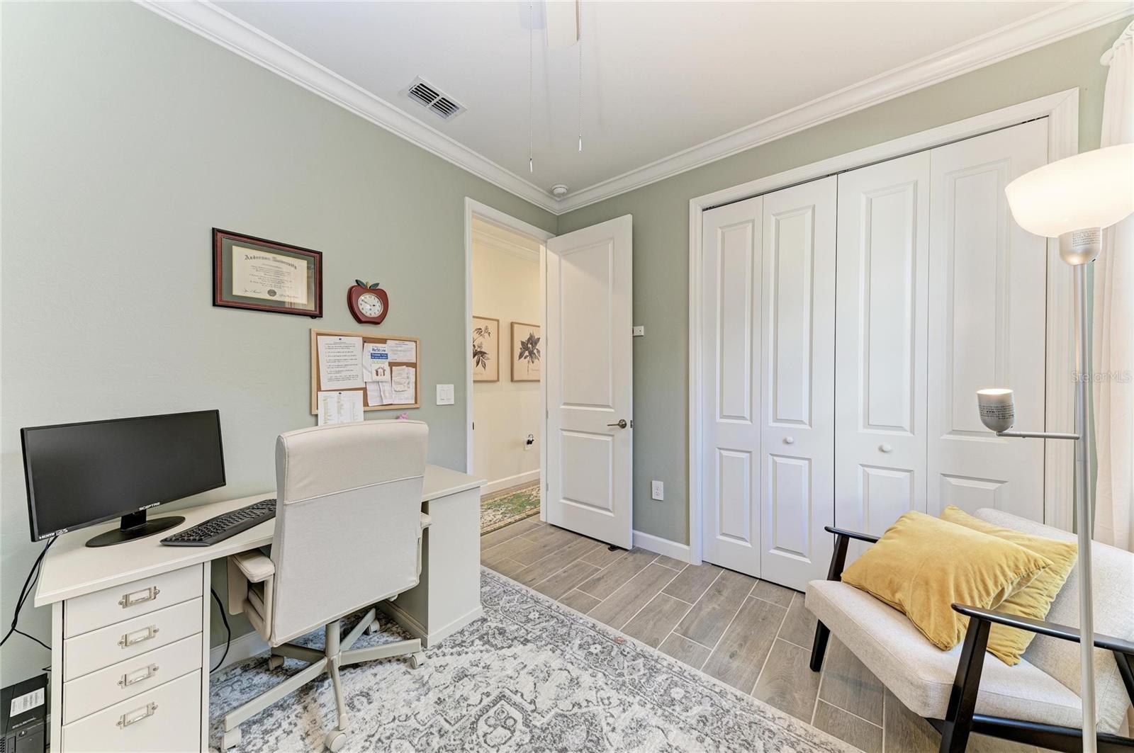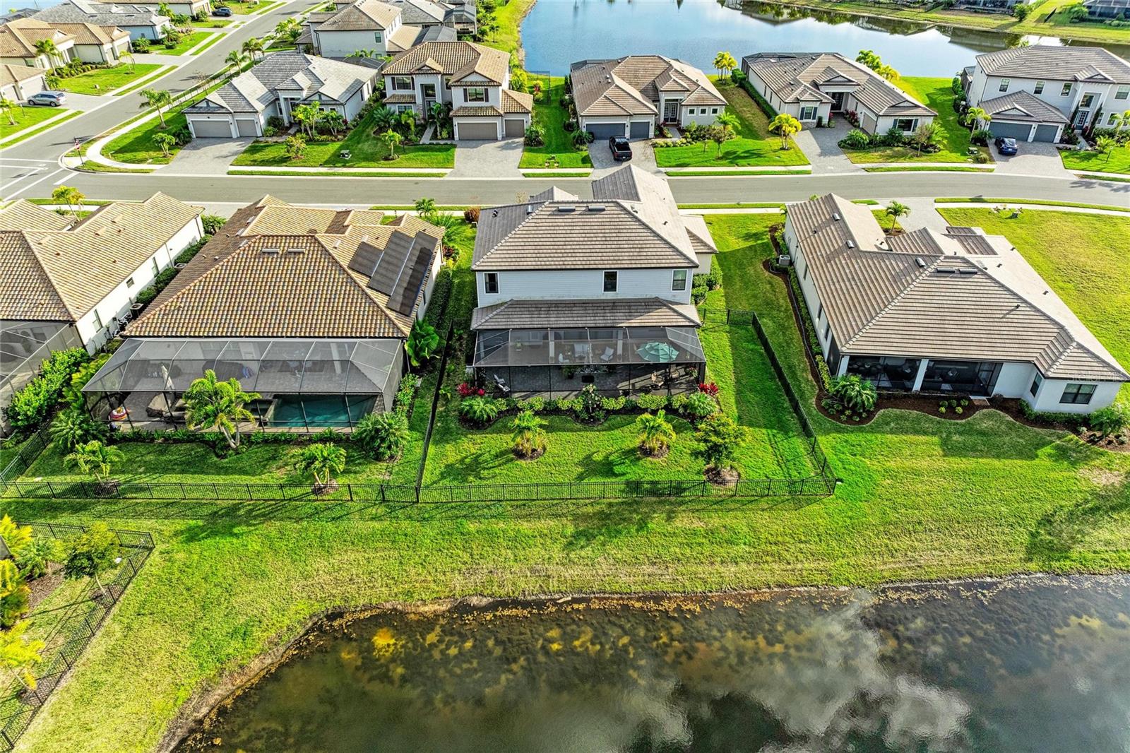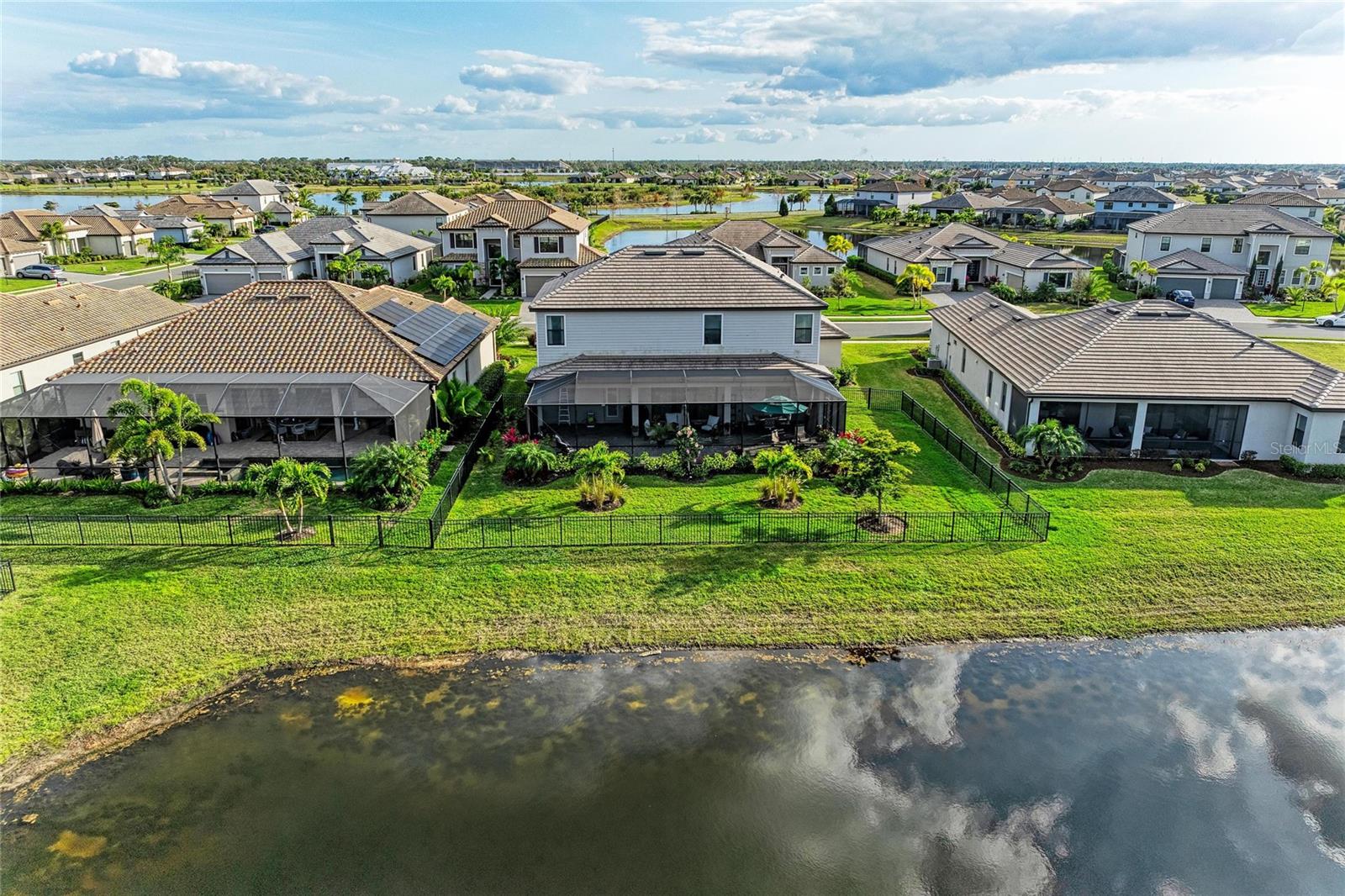 Here is your opportunity to own a rarely available National Model, nestled in the high sought-after neighborhood of Lorraine Lakes at Lakewood Ranch! Welcome to your Florida dream home in one of the nation's top multi-generational communities! This stately coastal contemporary residence offers 6 bedrooms, 3 baths, and over 3,500 sq ft of luxurious living space, all perfectly positioned on a premium waterfront lot. From the moment you arrive, you'll be captivated by the impressive curb appeal, featuring a paver driveway and walkway, ceramic tile roof, and elegant stone-accented pillars. Step inside through the dramatic two-story foyer and you'll find stylish plank tile flooring flowing through the main living areas. Designed for both comfort and entertaining, this home features a spacious great room that opens seamlessly to the oversized extended lanai, offering tranquil lake views and plenty of room to add a custom pool. The chef's gourmet kitchen boasts quartz countertops, white cabinetry, a center island, and high-end stainless-steel appliances. A formal dining room provides the perfect setting for gatherings or could be reimagined as an additional living space. Working from home? Enjoy a custom office/flex/library space, plus a first-floor guest bedroom for visitors. Upstairs, the large loft area connects to three additional bedrooms and a massive bonus/6th bedroom. The luxurious master suite is a true retreat with French doors, dual walk-in closets, and a spa-inspired en-suite bath featuring a soaking tub, walk-in shower, and dual vanities. Additional features include crown molding throughout, epoxy-coated garage floor, overhead garage storage racks, and fenced spacious backyard. Resort-style living awaits with Lorraine Lakes offering a 25,000 sq ft state-of-the-art clubhouse featuring a full-service restaurant, tiki bar, resort and lap pools, splash pad, fitness center with TRX, indoor basketball court, arcade, social hall, playground, and more! Outdoor activities include tennis, pickleball, volleyball, bocce, putting green, and scenic walking trails. Don't miss this rare opportunity to elevate your lifestyle in a beautifully designed home where resort-style amenities, tranquil water views, and everyday comfort come together in one of Lakewood Ranch's most vibrant and sought-after communities.