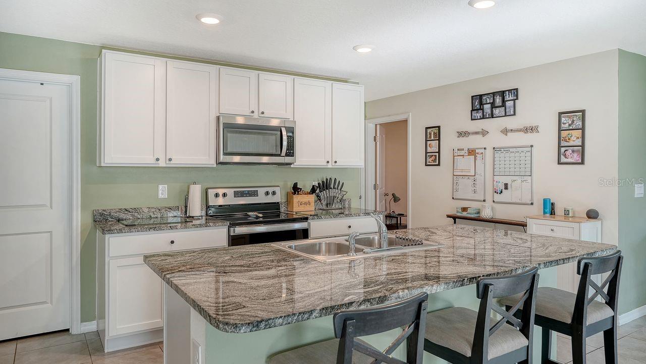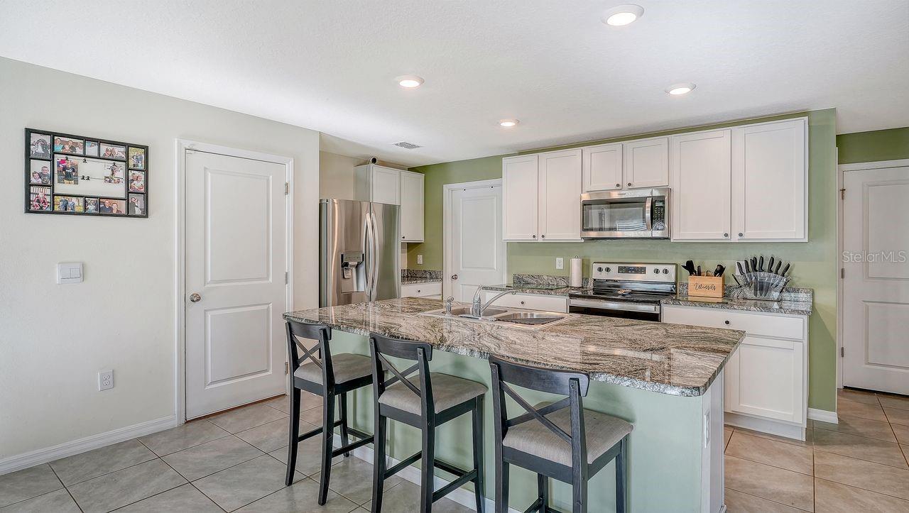 Located in the desirable Bella Lago community, this beautifully updated 5-bedroom, 3-bath home offers the perfect blend of comfort, space, and scenic living. Residents enjoy resort-style amenities including two pools, a fitness center, and a playground, all in a family-friendly setting.Inside, the home features a bright, open floor plan ideal for both everyday living and entertaining. The spacious kitchen boasts granite countertops, a large center island, and generous pantry storage. The flexible layout includes a bonus loft/flex space, perfect for homeschooling, a playroom, home office, or cozy reading nook.The primary suite is a relaxing retreat with a walk-in closet and a private en-suite bath with dual vanities and a walk-in shower. A second-floor laundry room adds everyday convenience for a busy household.Step outside to an extended screened lanai overlooking a peaceful water view with fountain, creating the perfect backdrop for morning coffee or evening relaxation. The fenced backyard offers privacy while preserving the view.This move-in-ready Bella Lago home delivers space, style, and scenic water views right now.